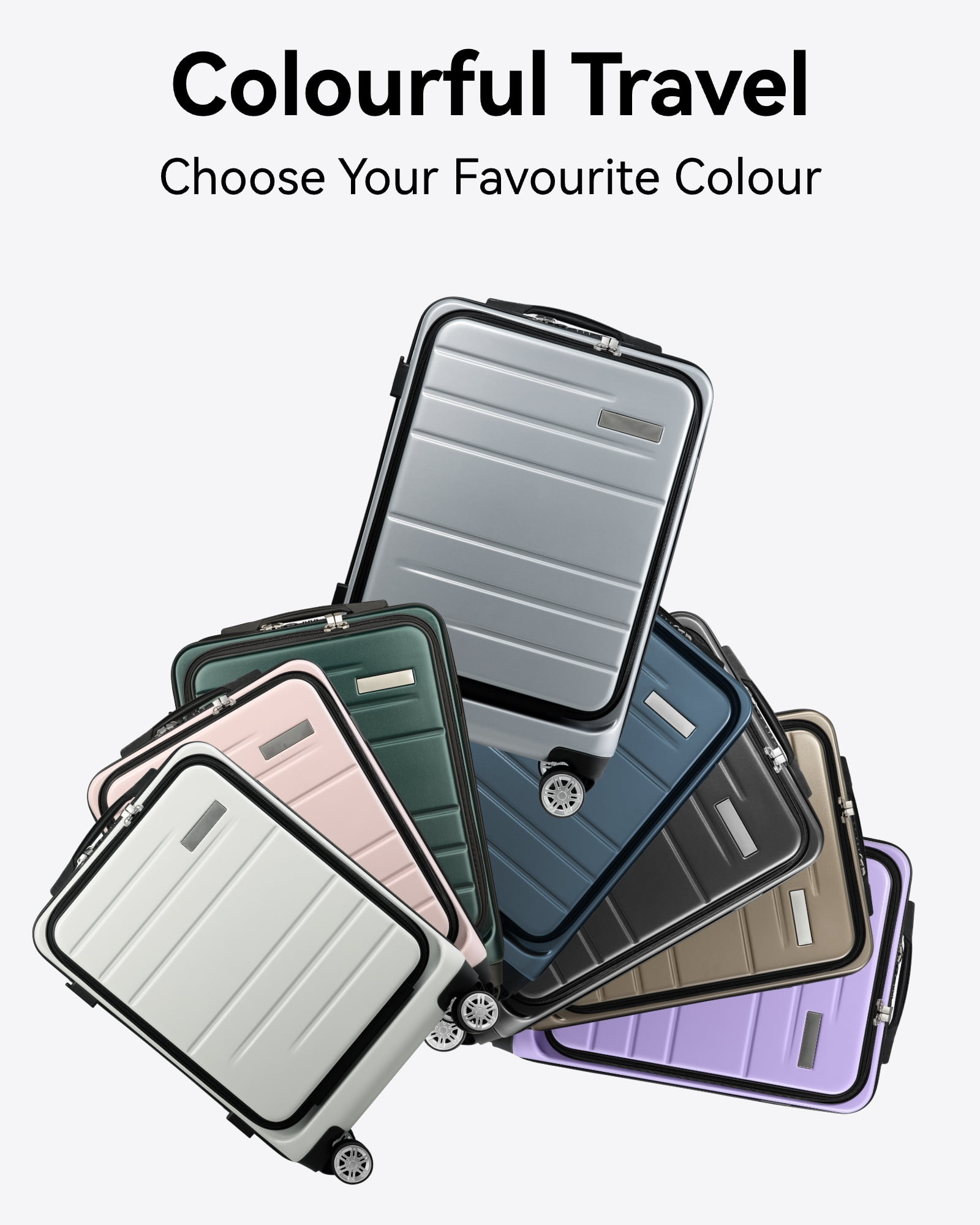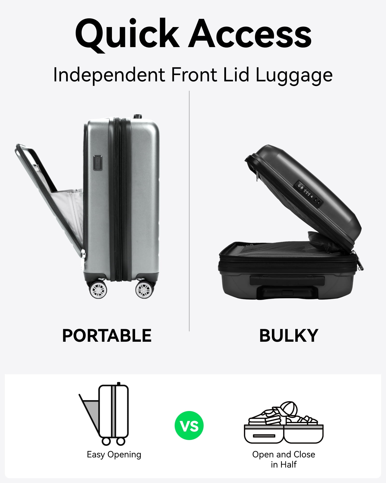 YOETEY —— The Choice of Fashionable Travel Goes Further, Lasts Longer Tested with a 15KG load over 20KM at 4KM/H, YOETEY suitcase remains undistorted, maintaining maximum flexibility and smooth rotation. Sturdy Falls, Endures All Under chilling temperatures of -12°C, YOETEY suitcase endures drop and impact tests unscathed, with all its components remaining completely functional. 5000 Times, Prime Climbs After 5000 cycle tests of retracting and extending the pull handle, YOETEY suitcase retains its integrity, with no breakage or resistance, showcasing its exceptional durability. YOETEY Carry on Luggage 20 Inch / Large Checked Luggage 28 Inch with Front Pocket, Expandable Polycarbonate Hard Shell Suitcase with USB Port – Suitable for Back to School and College Color:Gun Black / Blue / Silver / Champagne / Green / Purple / Pink / Ivory White / Hazelnut Edge Black / Hazelnut Edge Ivory White 20-INCH SIZE:22.0×14.2×9.5 IN, Weight:7.9 LB, Capacity:36.1 L 28-INCH SIZE:29.1×19.3×11.6 IN, Weight: 11.3 LB, Capacity: 73 L Product Features 1.Front Pocket Full Open for Quick Access 2.USB-A/USB-C Charge 3.15% Expandable Design to Storage 4.100% Polycarbonate Material More Durable than ABS 5.Thickened Shockproof Cotton 6.Three-Step Telescoping Handle 7.Comfort Rebound Side Handle 8.Spacious Interior with U-shaped Net 9.360° Silent Spinner Wheels 10.TSA Lock for Safety 11.Smoothness Zips 12.Airline Approved ⭐How do I set the code when I first get it? 1. Turn the dials to the correct combination.(0-0-0) 2. Press down the button by a tool, set the new combination (e.g.:8-8-8), then pull the square part. 3. Lock the case again, and now you can open the lock with the new combination. ⭐How to use the charging port? 1. Unzip the front pocket and find the cable inside. 2. Charge it with a power bank. (The USB input only works for USB output) 3. Open the outside charge port and connect it with a cable, then connect it to your phone. ⭐Can both the front side and main compartment lock? Yes. The TSA Lock works for both sides zippers! ⭐If the luggage I received was damaged, who can I look for? We promise that every luggage will go through strict quality inspection before shipping. Please feel free to let us know and the related team will respond within 12H.