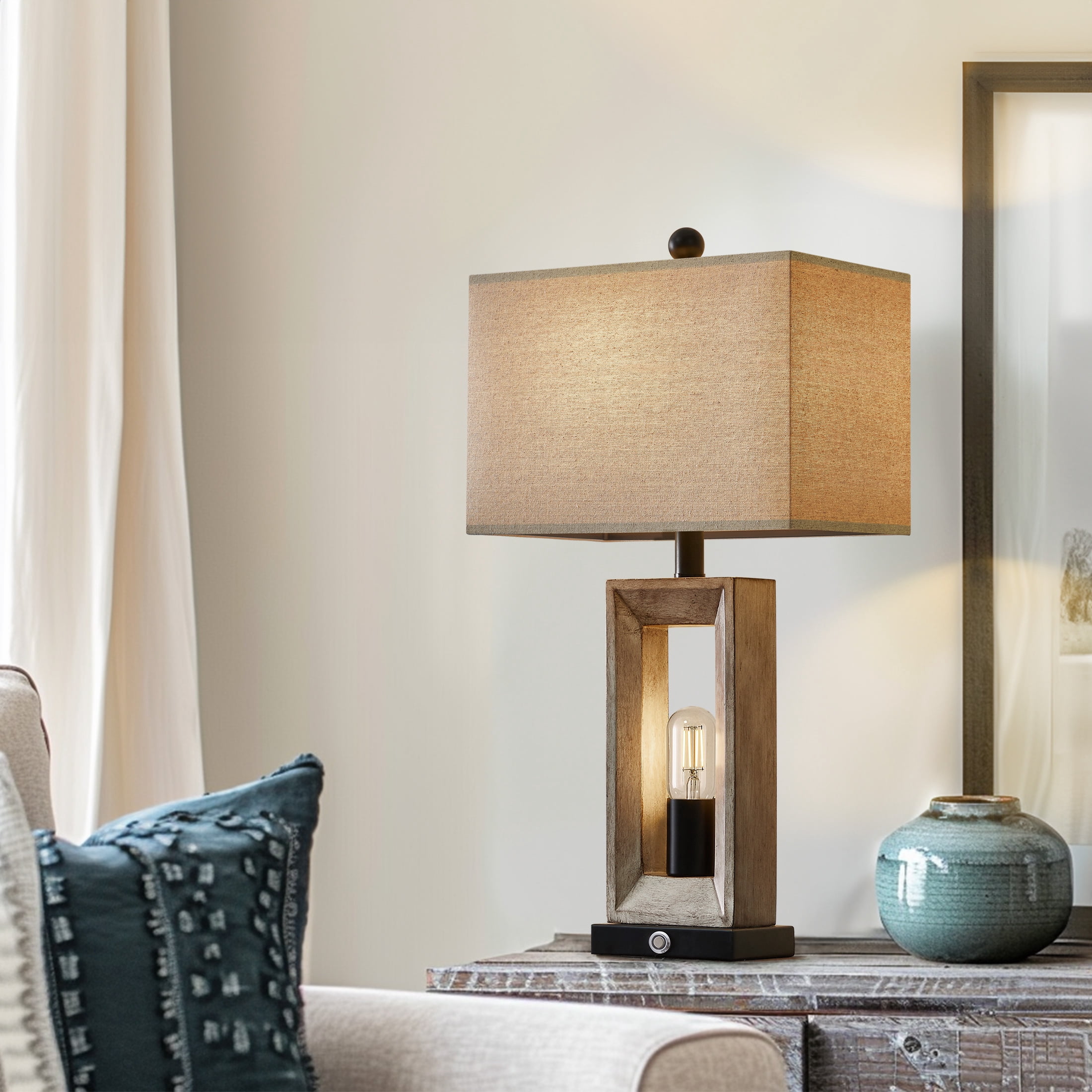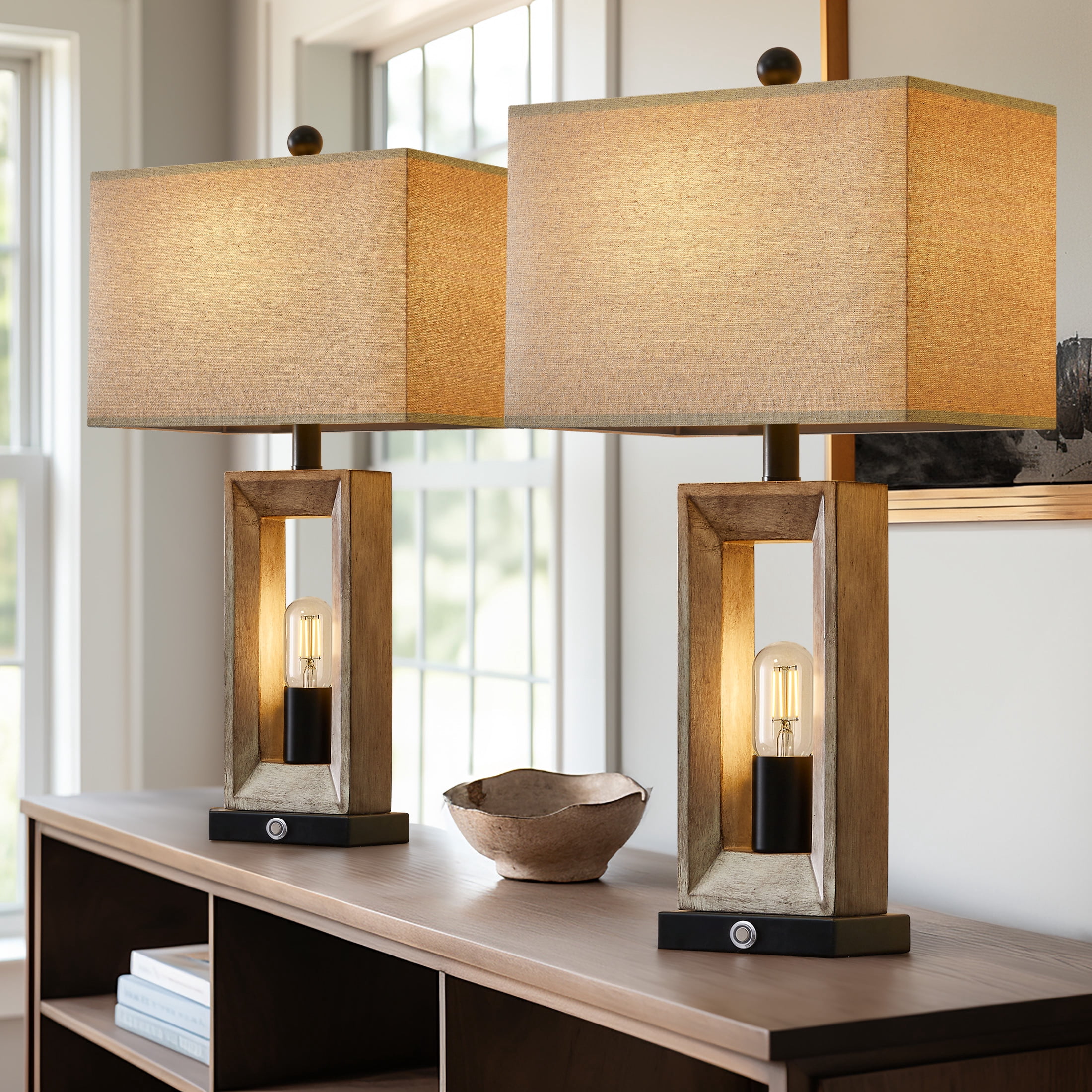 Farmhouse Table Lamps Set of 2 : These bedside lamps are designed with high quality resin material lamp body and square linen shade, highlighting the rustic and retro style. It’s unique design makes it perfect decoration in your home, add light and stylish to your room, perfect for living room, bedroom, foyer, dorm room, dining room, office, study and any room you like. Retro Table Lamps Size(After Assembly): Table lamp is 25 inches high overall. Round lamp base is 5.5 inches wide at the bottom. Drum lamp shade is 12.75 inch across the top, 12.75 inch across the bottom, 9 inch high overall. It’s perfect size and will look dazzling in any room. Suitable to set end table, side corner table, office desk, nightstands, coffee table, dining table. 3 Way Dimmable Touch Table Lamps: Rotary switch can turn on/off the bulb. Use the touch control design, gently press the base touch switch, can turn on/off the integrated LED pole in the lamp body and adjust the brightness of 3 levels (low, medium, high). It can make you get rid of the trouble of fumbling the switch in the dark, especially when you wake up in the middle of the night, perfect for the bedroom and living room nightstands. Living Room Table Lamps with USB Port: This set of 2 nightstand lamps are equipped with USB A+C charging ports, you can use the table lamp as a nightstand / desk charging station, charge your phone, watch, iPad, Kindle, laptop, game controller, alarm clock or other electronic devices no matter the lamp is on or off. In addition, whether you are sleeping or working, you can easily charge your electronic devices, super convenient for you and your family. Customer Satisfaction & Warranty: All table lamps come with 2 years warranty. No matter what kind of problem you might meet, you are free to contact us and get our support. We will try our best to solve your problem and satisfy you. Product Parameters Style: Farmhouse Color: Brown Product Dimensions: 12.75 x 12.75 x 25.00 Inches Material: Resin and Metal Lamp Type: Table Lamps Room Type: Bedroom,Living Room,Office Shade Color: Beige Shade Materia: Fabric Power Source: Corded Electric Switch Type: Rotary Switch and Touch Switch