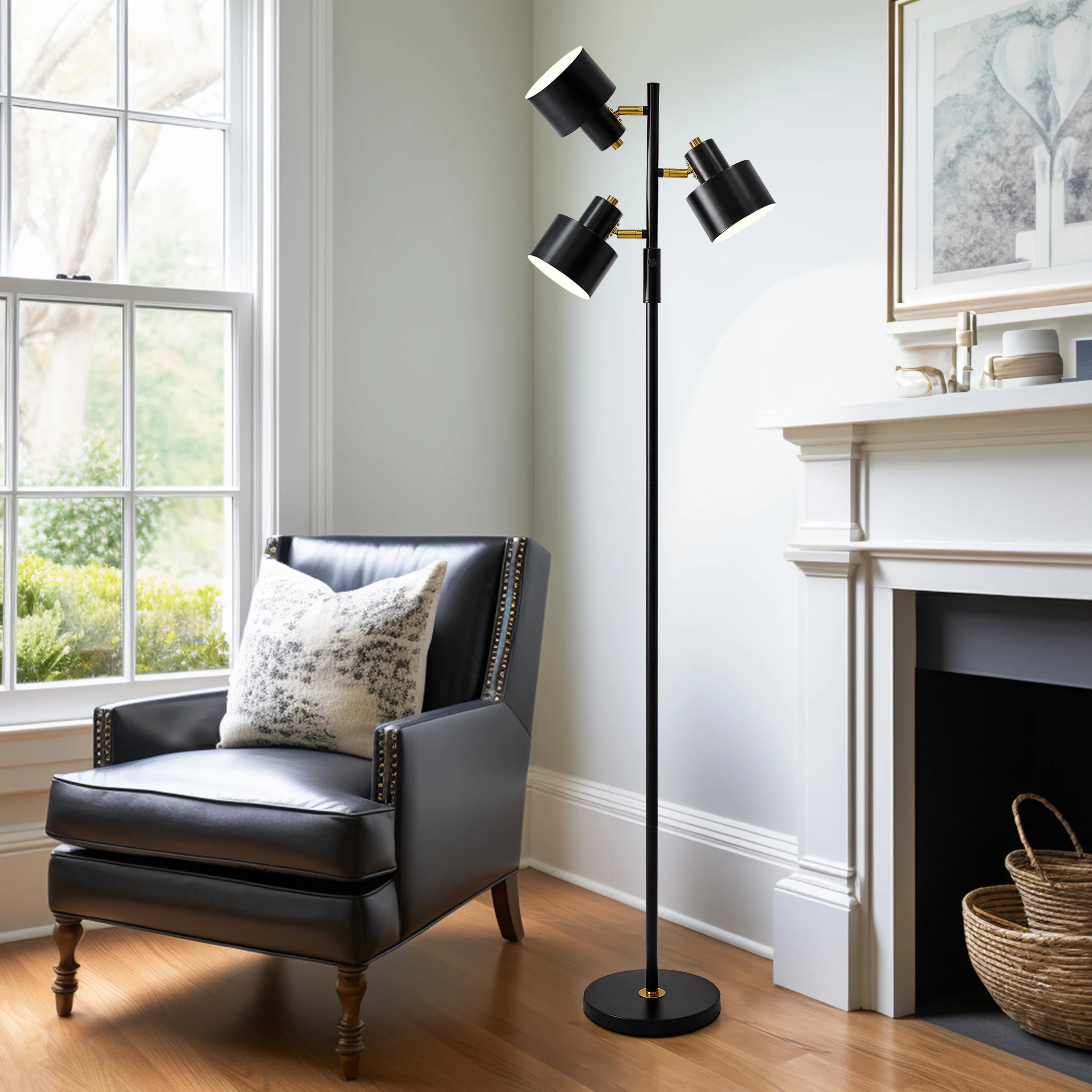 Yokila 66.25″ 3 Light Modern Black Metal Floor Lamp for Living Room Bedroom Tall Standing Lamp with Rotary Switch for Home Office
