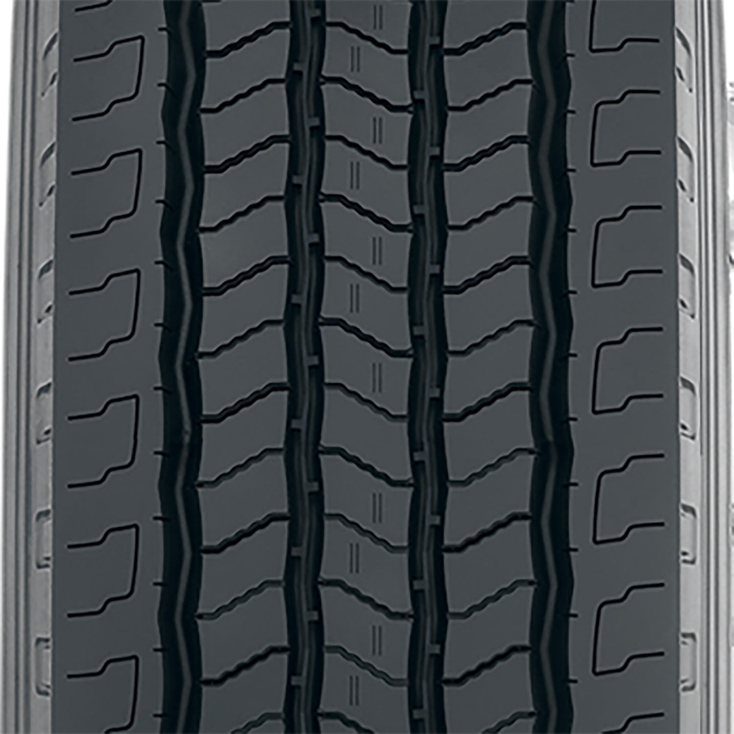 Deeply-siped ribs provide outstanding wet and snow braking creating powerful traction Three Peak Mountain Snowflake certified for use in moderate to severe winter weather conditions Four wavy circumferential grooves promote even wear and provide optimized traction in the wet and snow Extra wide tread promotes better dispersal of contact pressure with the road to deliver longer tread life Rigid shoulder ribs reduce shoulder step-down wear and enhance driving stability Rock shield platforms reduce stone and debris penetration for improved casing life, durability, and retreadability Size: 265/70R19.5 Load Range: G Product May Vary From Picture Wheel/Rim Not Included
