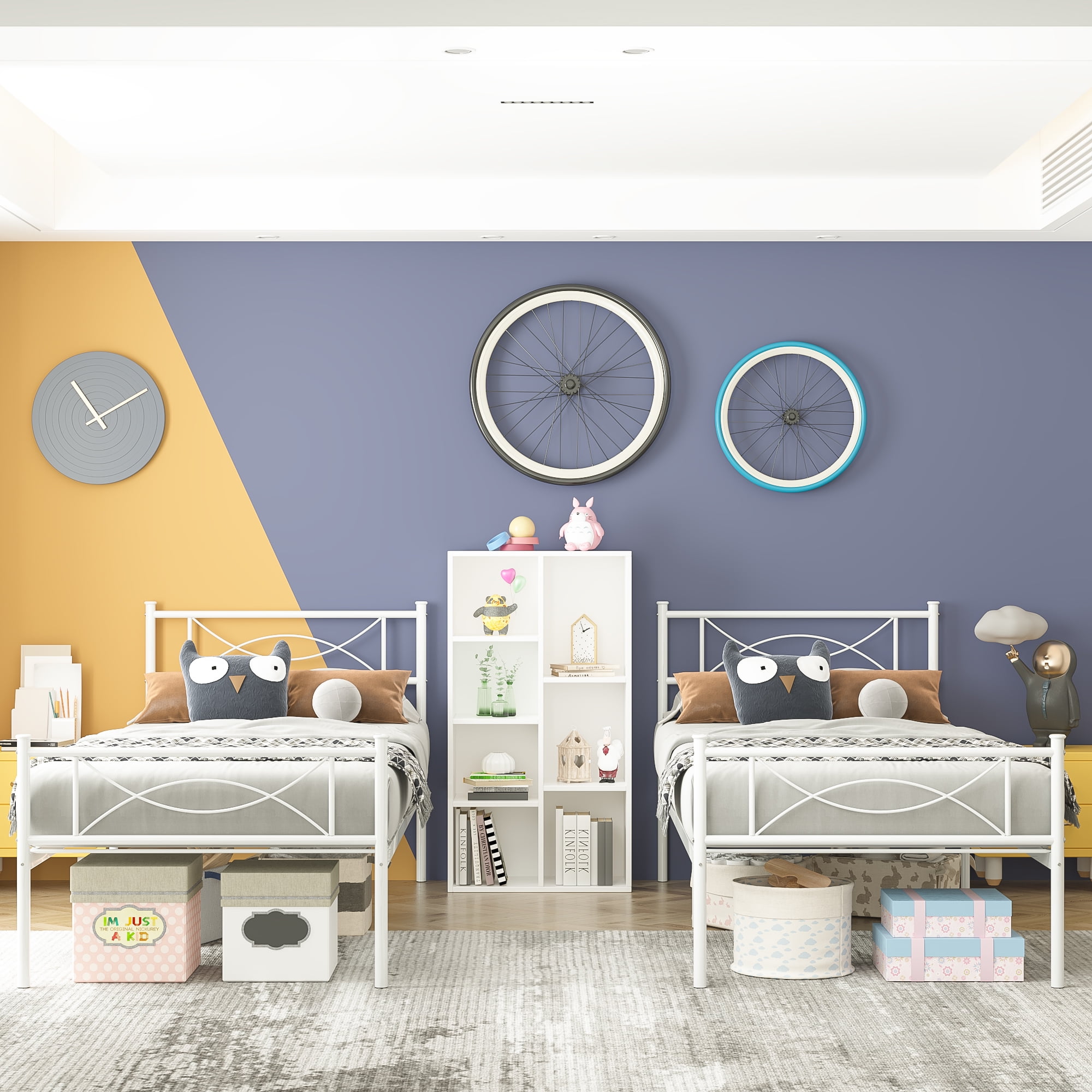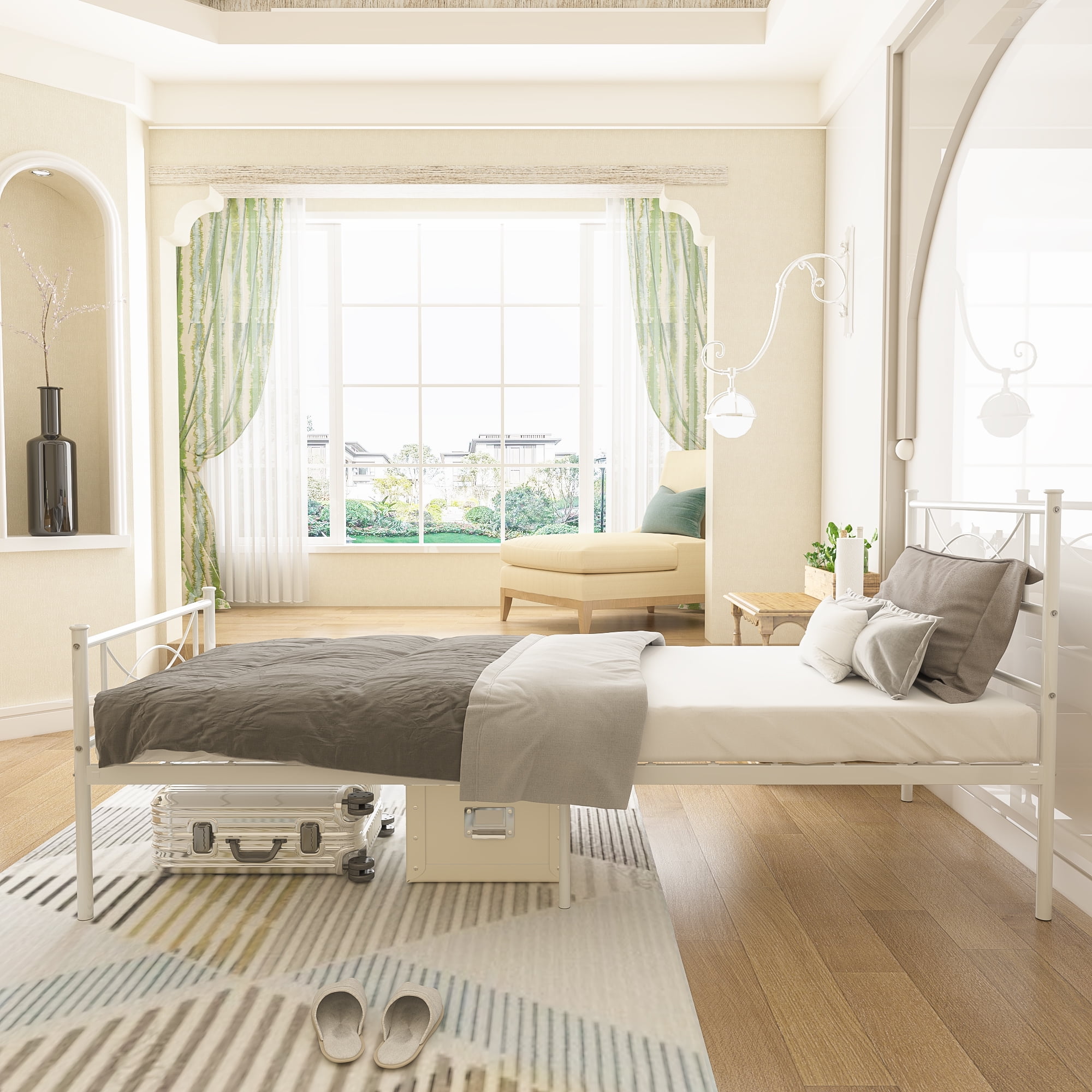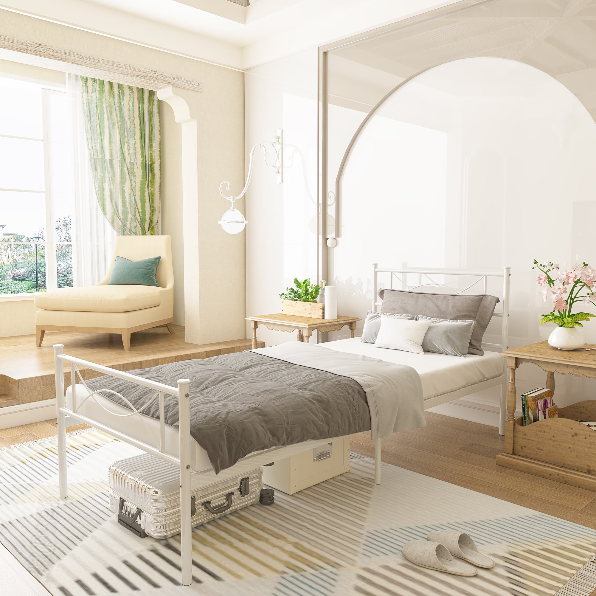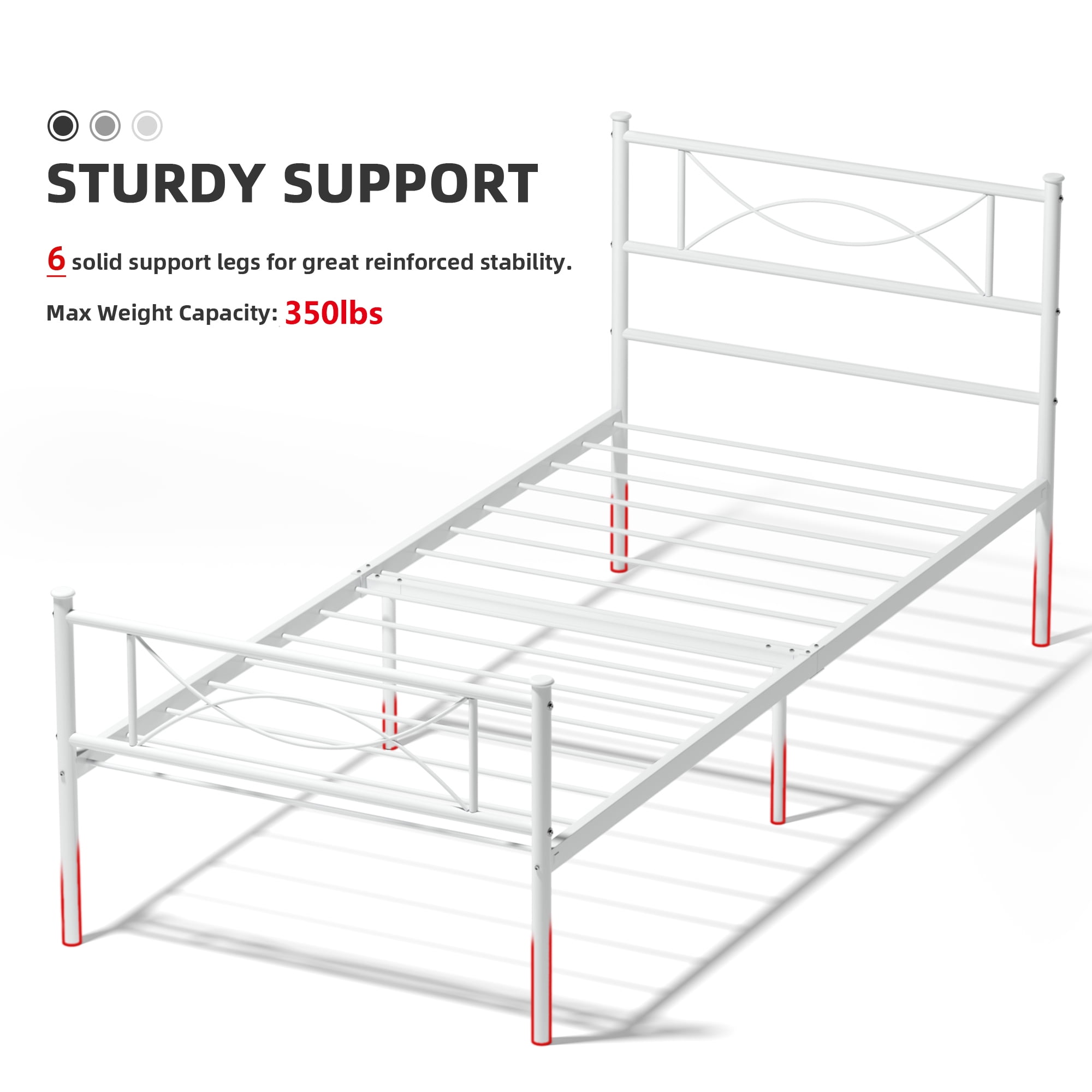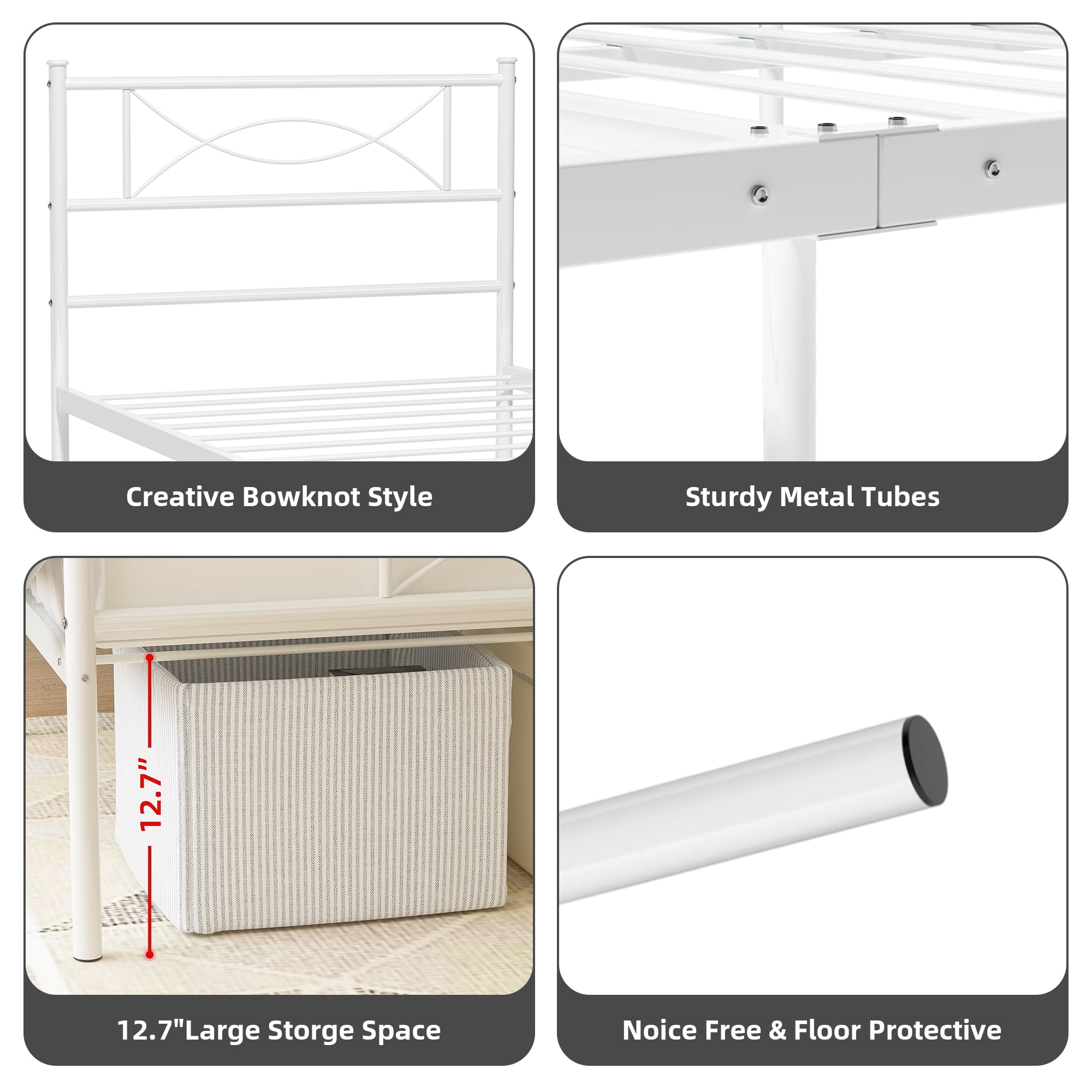 Yoneston 12.7” High Metal Platform Bed Frame with Two Bowknot Headboards Easy Assembly Twin Size, White