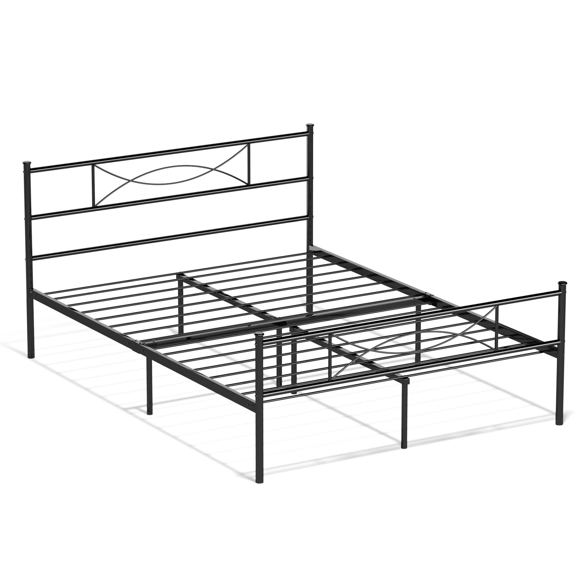 Features: High-Quality Frame – The bed frame is made of steel with ultimate strength, no quaking & scratching, no noise. Strong steel tubing construction provides a safe and comfortable sleep environment. The bed frame is designed with a headboard & footboard to meet your sufficient needs, bringing a warm and elegant feel to your sweet home. Sturdily constructed, the bed includes metal slats and supporting legs for added support and comfort. Easy Assembly – The bed frame comes flat-packed in one box for easy home assembly. Add a touch of elegance to your bedroom with this Metal bed and make the most out of your bedroom space with this multi-functional metal bed.Specifications: Name: Metal Bed Material: Metal THYME-QU-Full Size: 77.9 x 55.9 x 34.8 in Max support (dynamic condition): 160 kg / 352 lbs Max support (static state): 390 lbsPackage Include: 1 x Carton 1 x Instruction for installation 1 x Polybag 1 x Screw Set 1 x Components