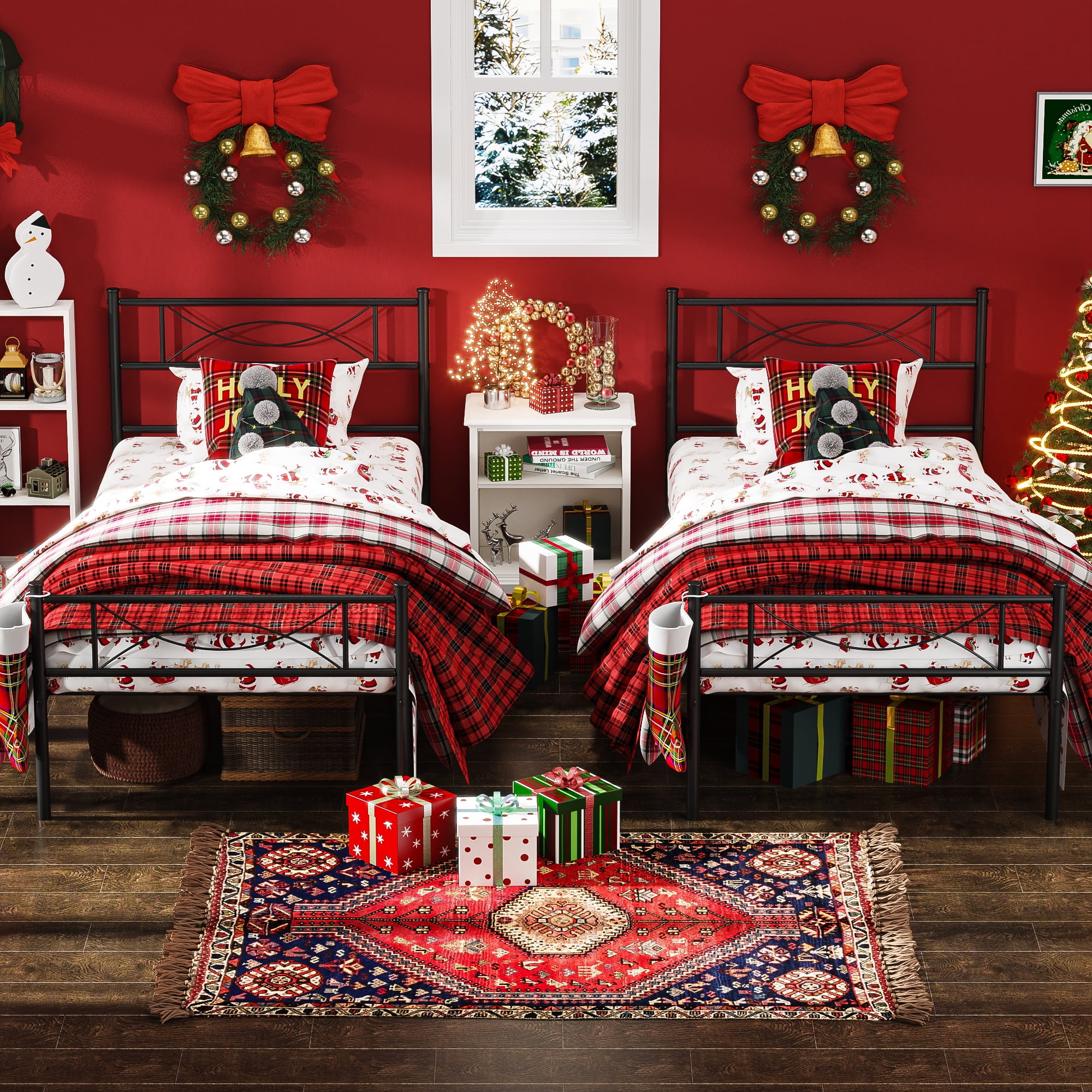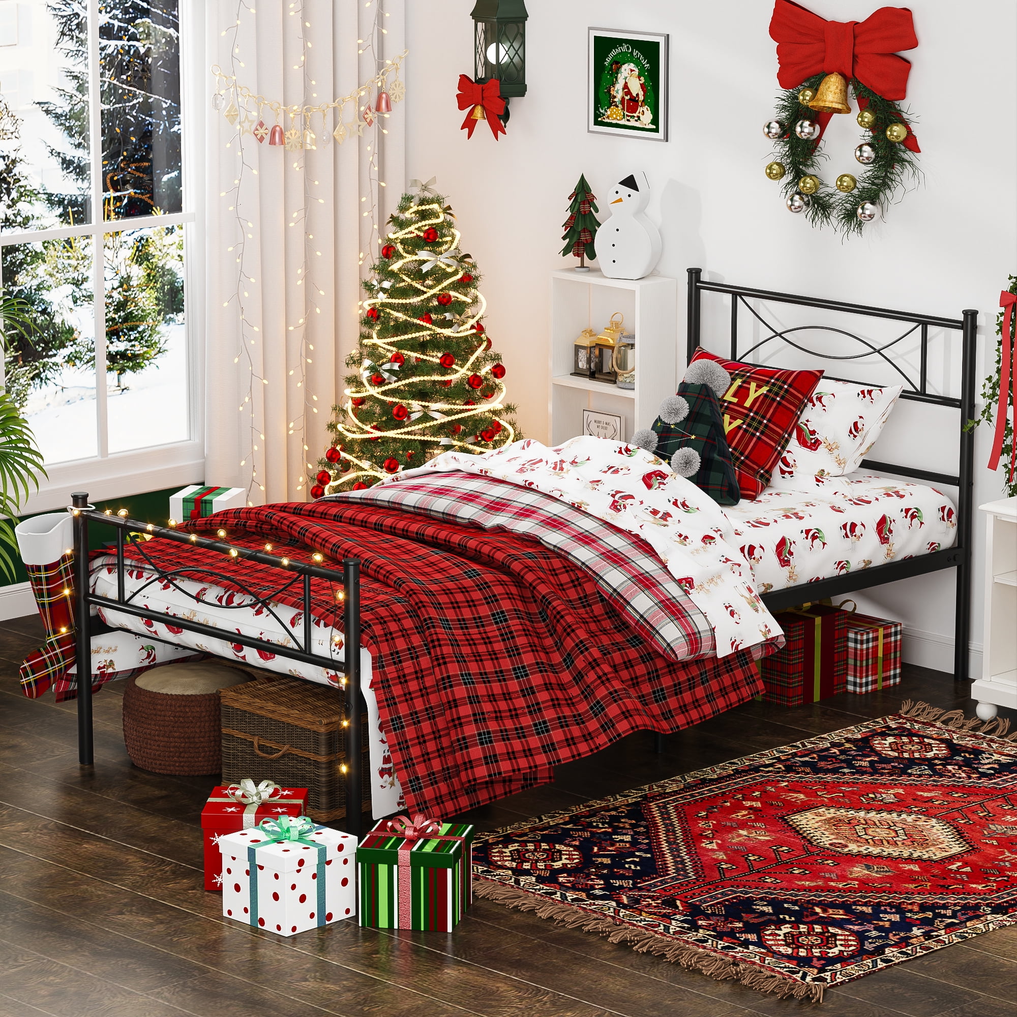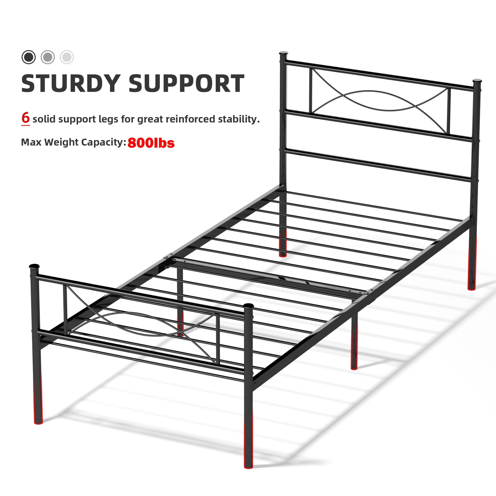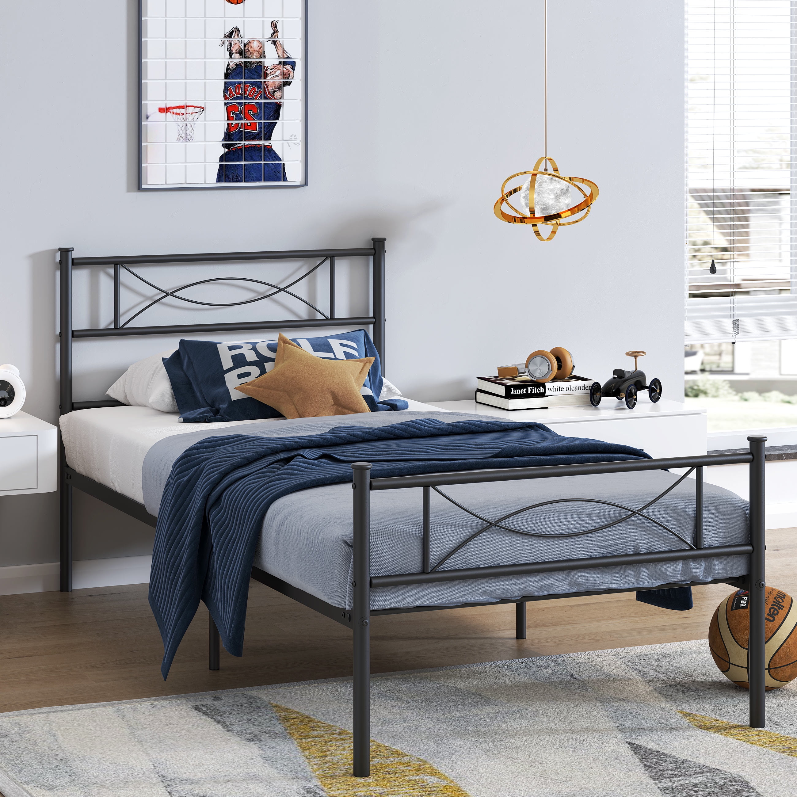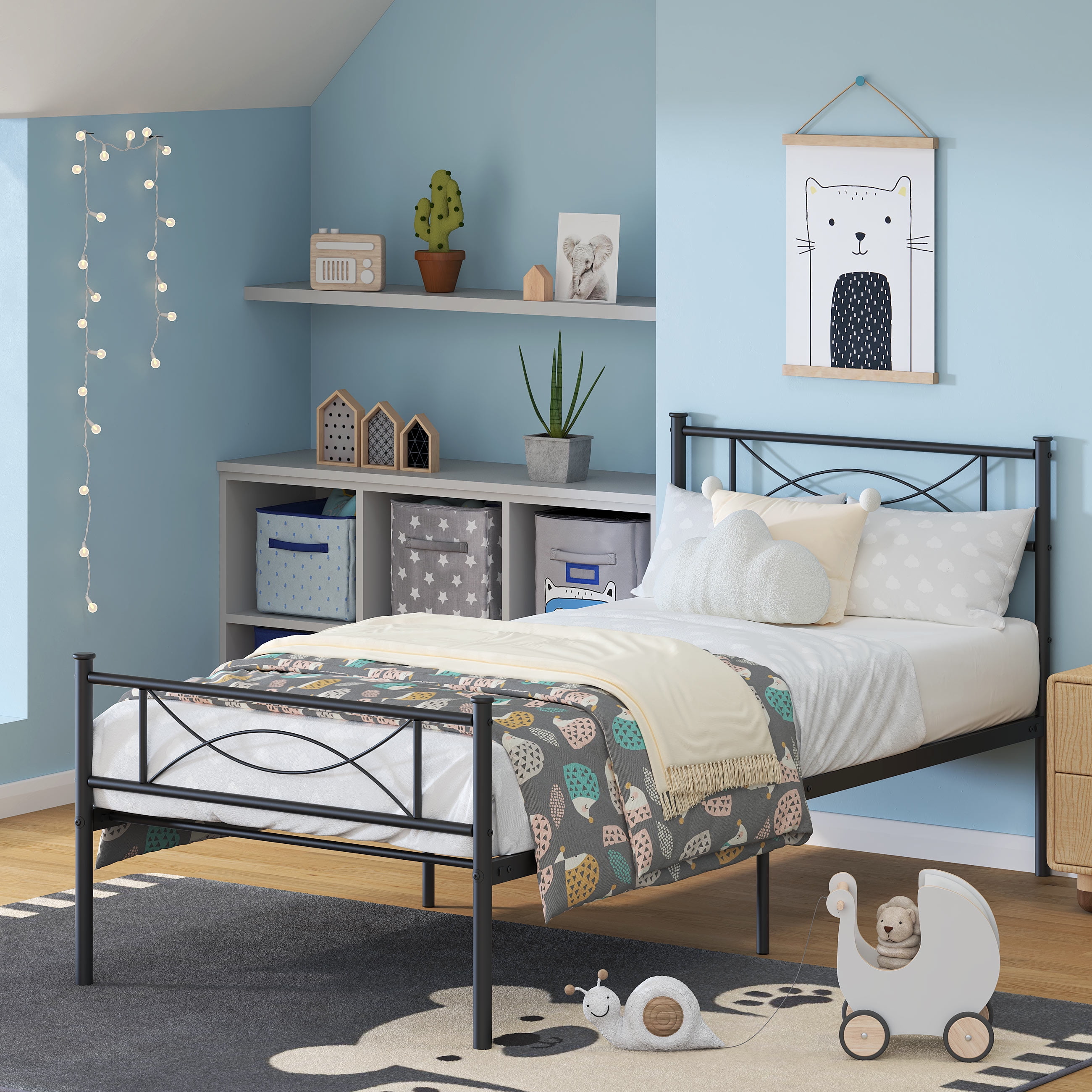 Yoneston Kids Twin Size Metal Platform Bed with Bowknot Headboards Easy Assembly (Mattress Not Included), Black