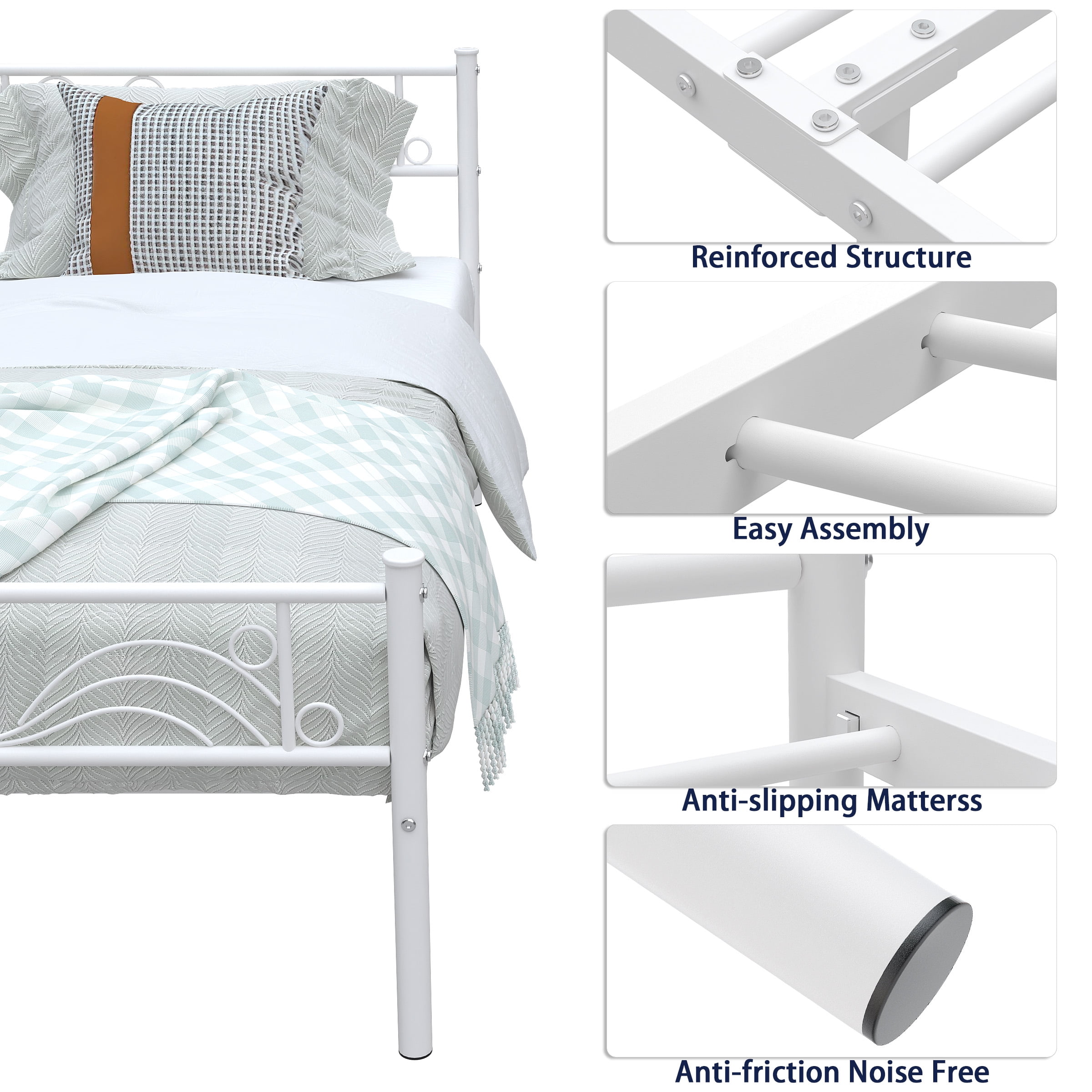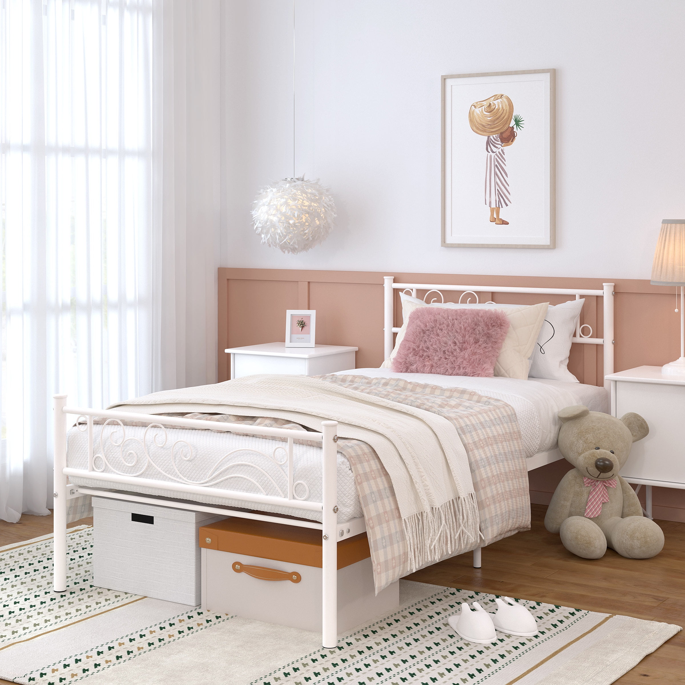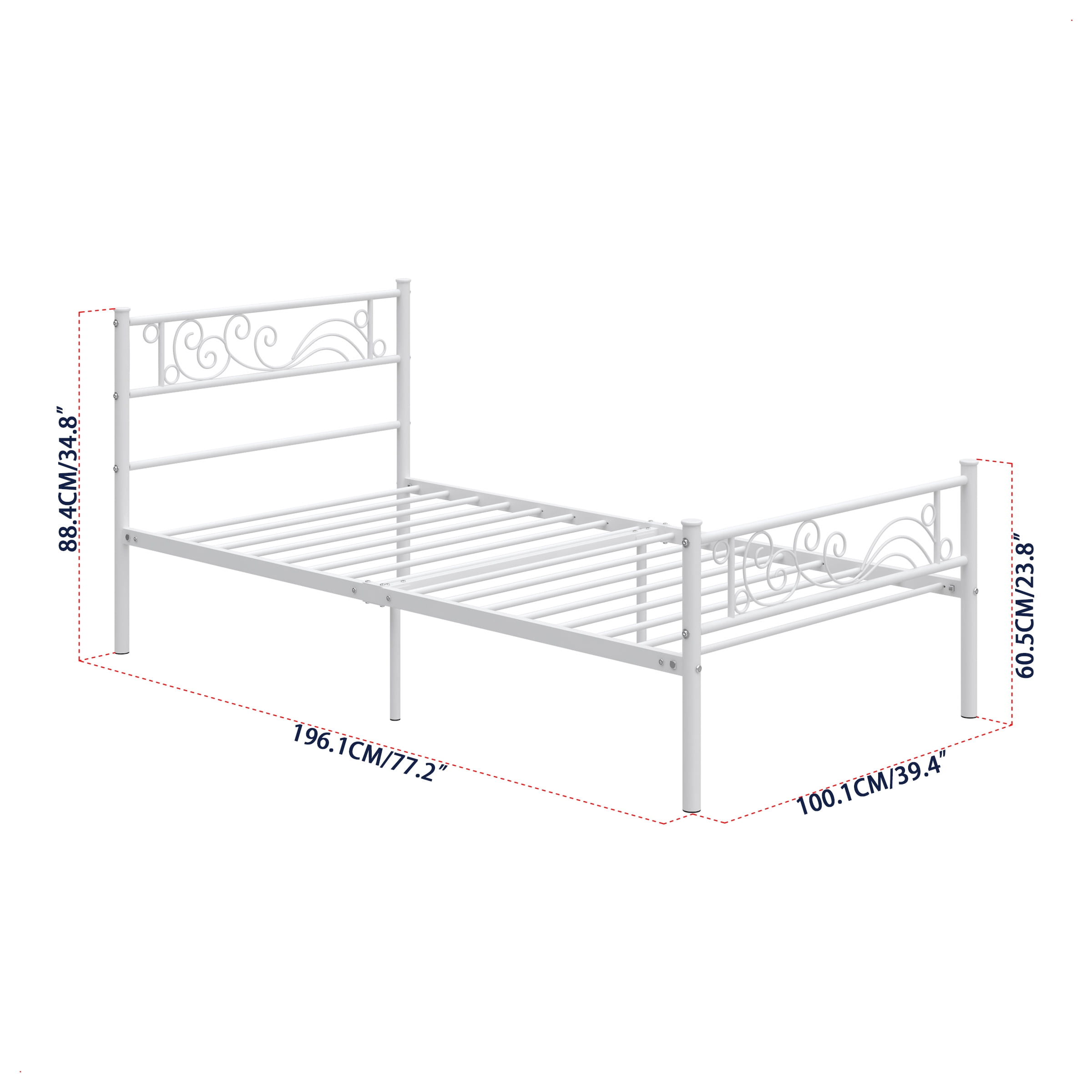 Yoneston Metal Platform Bed Frame Twin Size Single Bed frame with Wave Headboard & Footboard for Adult Bedroom Furniture, White