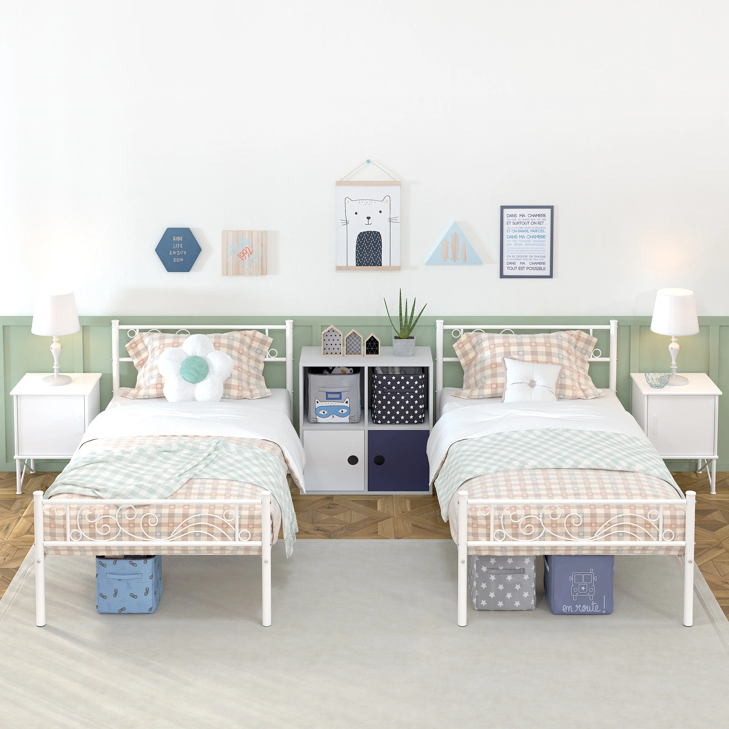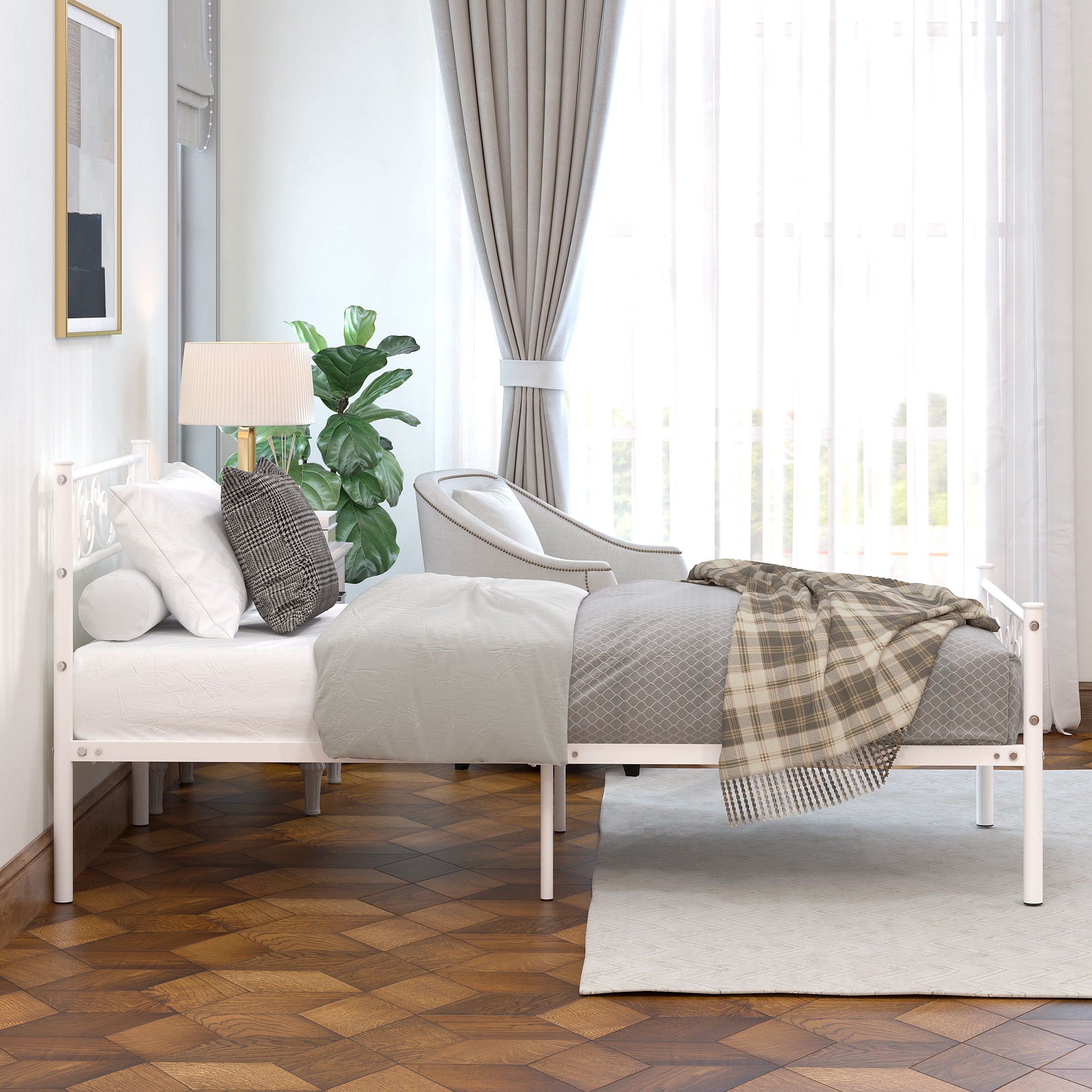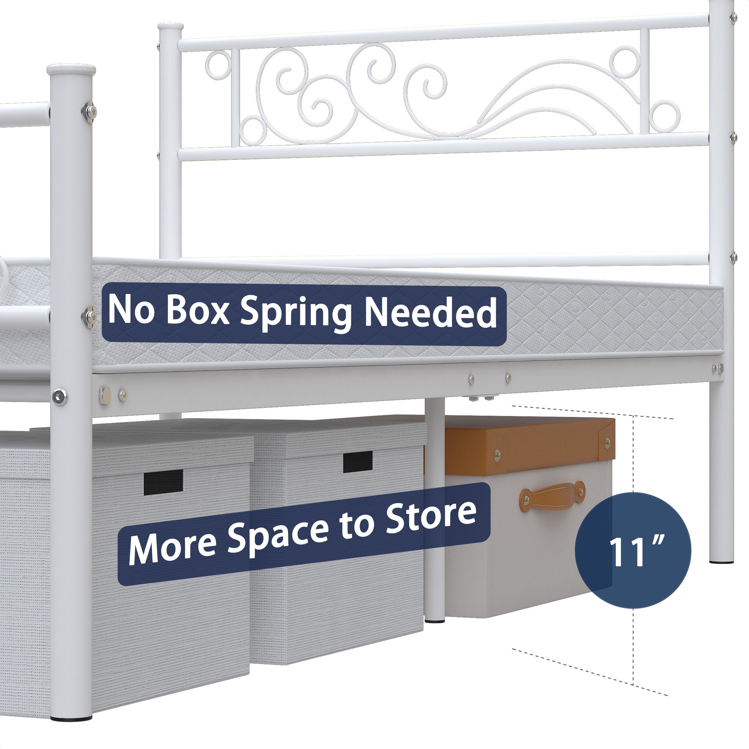Yoneston Metal Platform Bed Frame Twin Size Single Bed frame with Wave Headboard & Footboard for Adult Bedroom Furniture, White