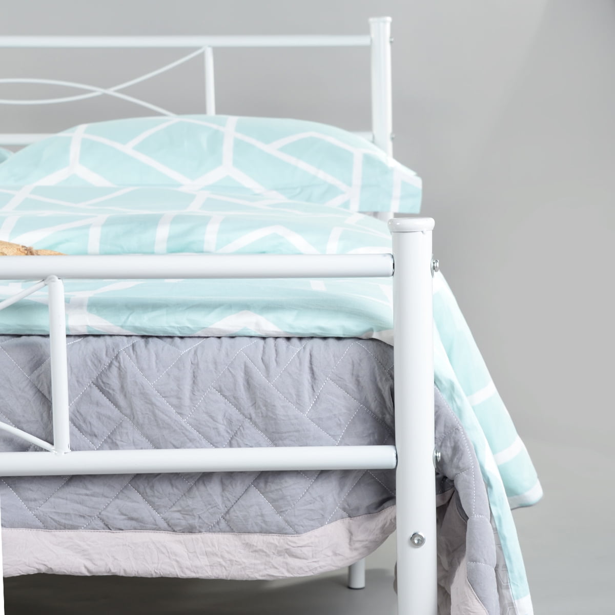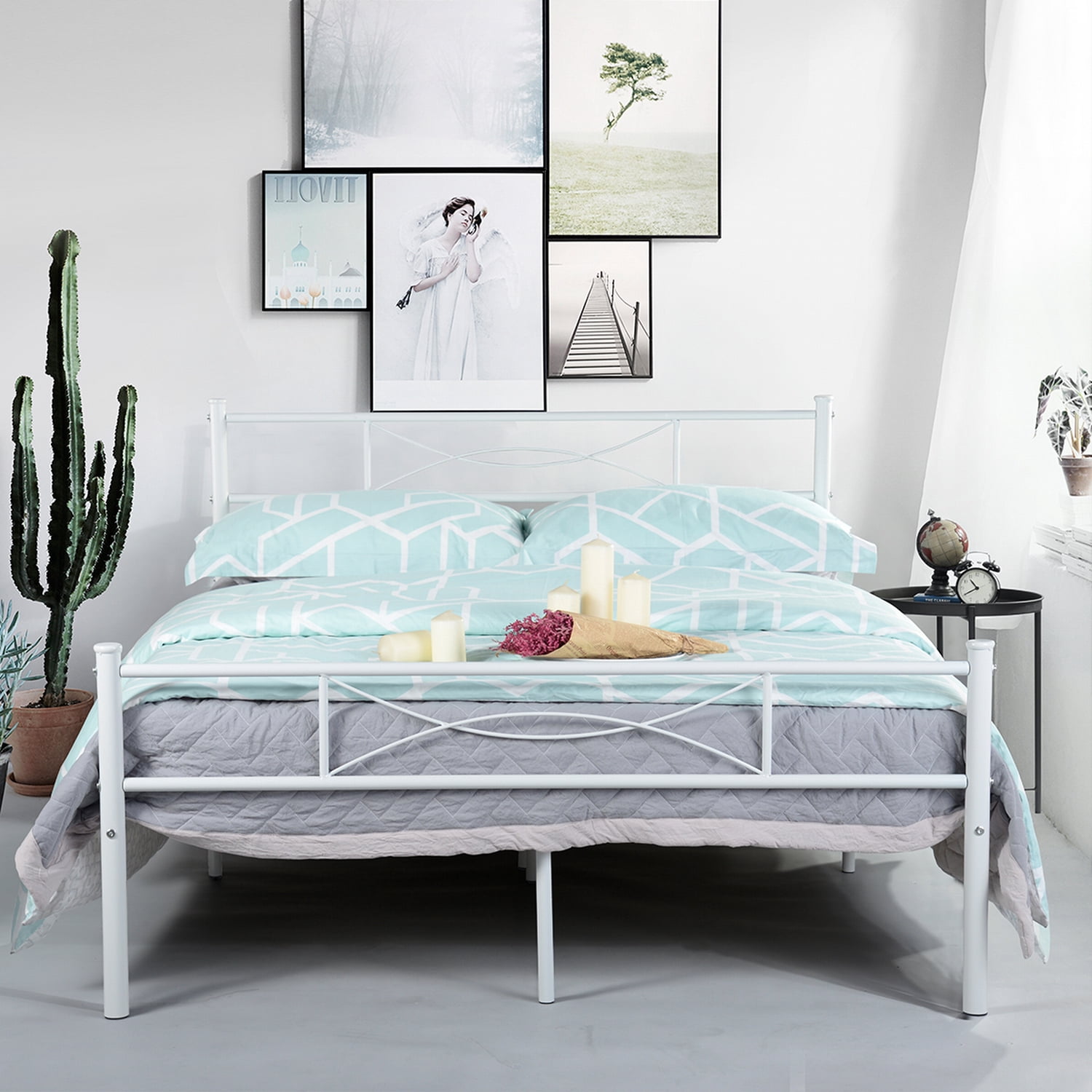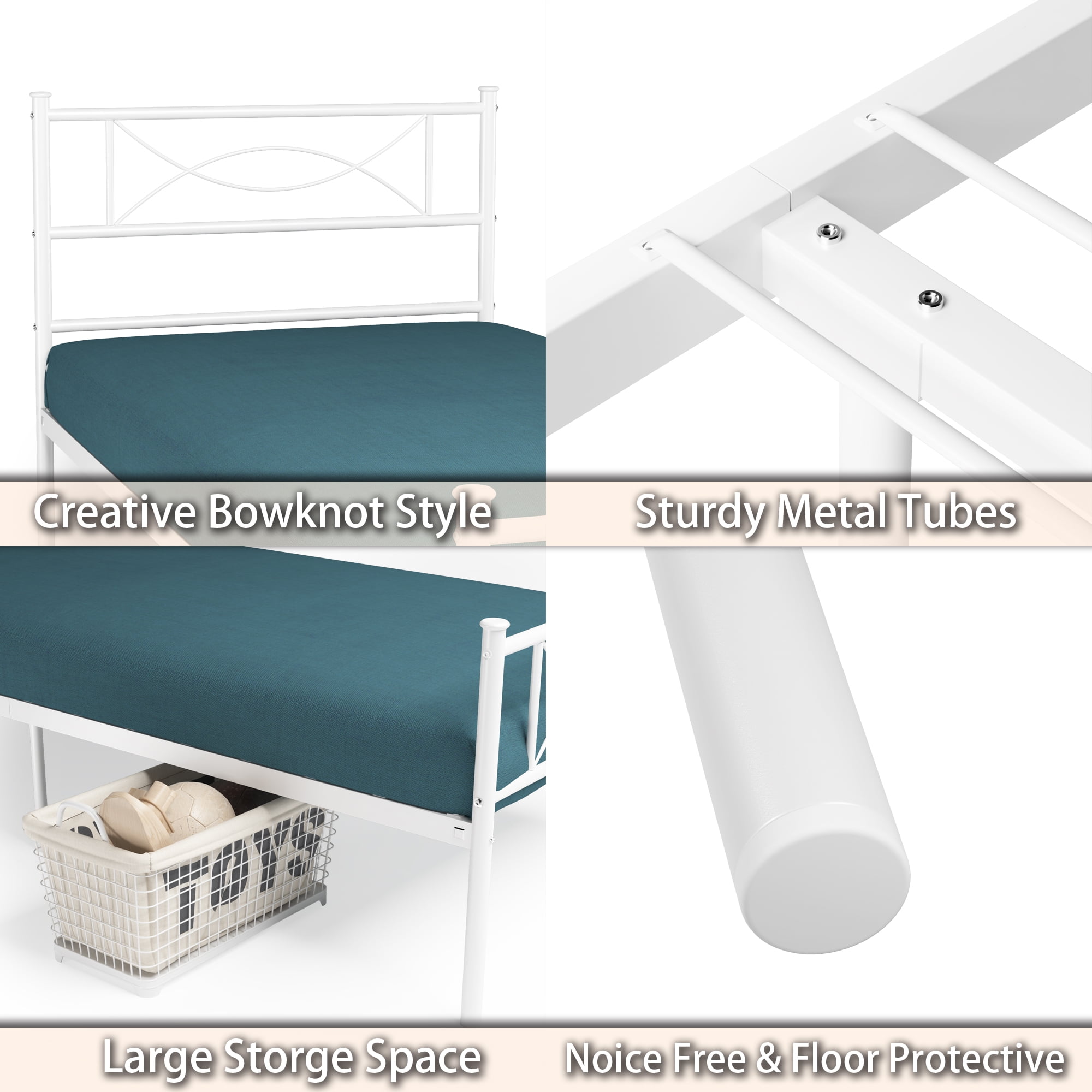 Yoneston Metal Queen Platform Bed Frame with Modern Bowknot Headboard & Footboard Bedroom Furniture for Adults, White