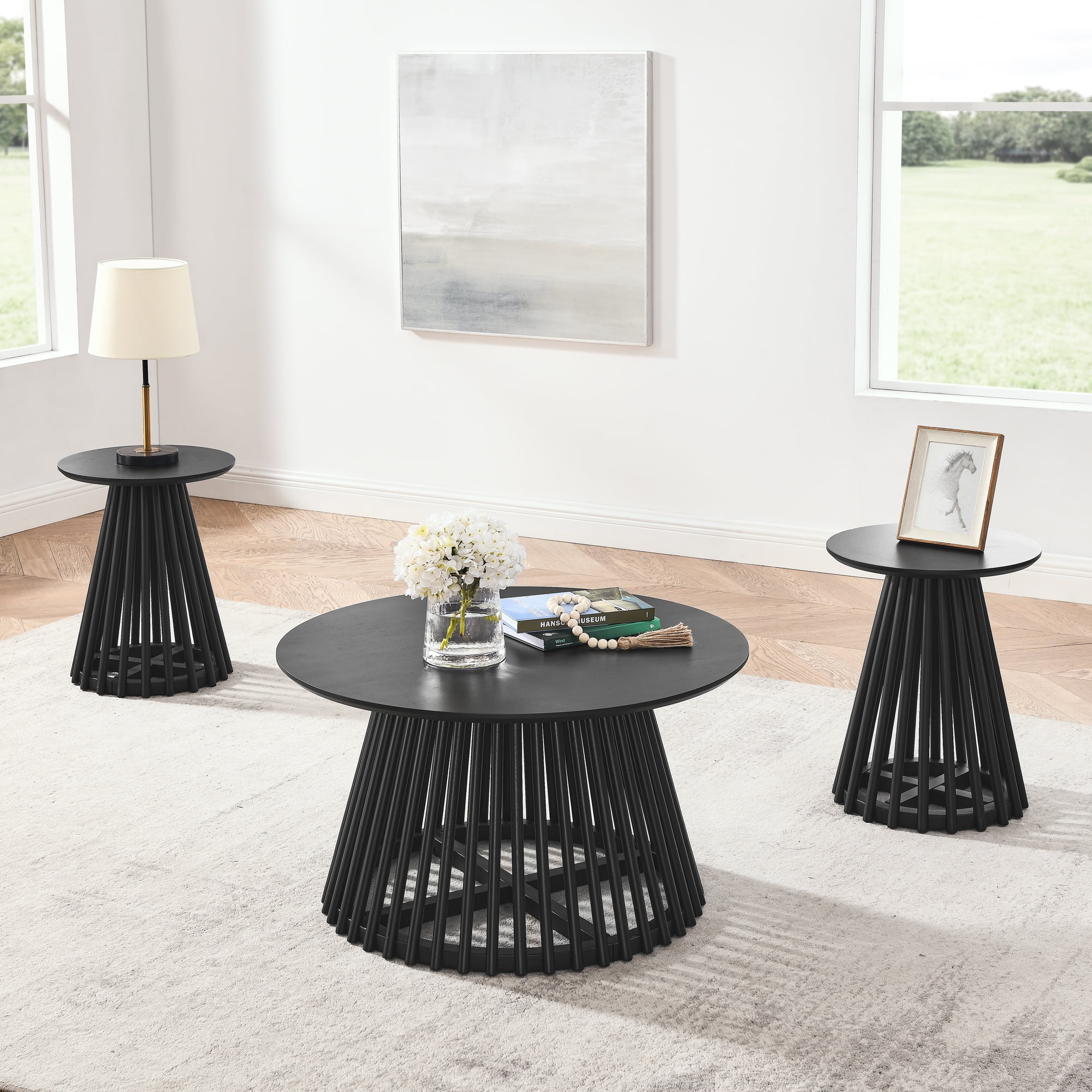 Yoneston Modern Farmhouse Style Wide Table Top Pyramid Solid Wood and MDF Coffee Table, Black Quality Materials: This coffee table is crafted from high-density MDF board and features birch veneer technology. Its surface is waterproof and moisture-proof, treated with environmentally friendly paint, making it easy to clean and maintain Unique Pyramid Design: The sleek and modern pyramid design of the table adds a touch of elegance, making it a stylish addition to any living room or office space Good Stabilization: The sturdy construction of the coffee table ensures excellent stability, capable of supporting up to 330 pounds of weight, making it suitable for various uses Easy Installation: The table comes with detailed assembly instructions, allowing for straightforward setup and ensuring that users can easily put it together without hassle Versatile Functionality: with its combination of quality materials, elegant design, and sturdy construction, this coffee table serves as both a practical furniture piece and an attractive focal point in any room