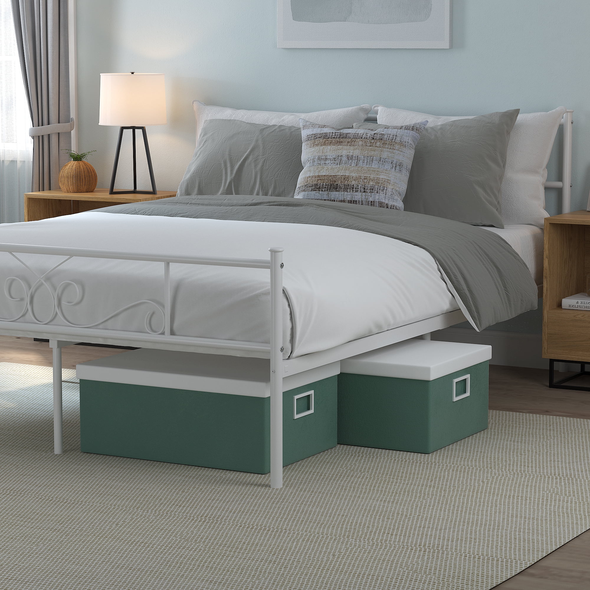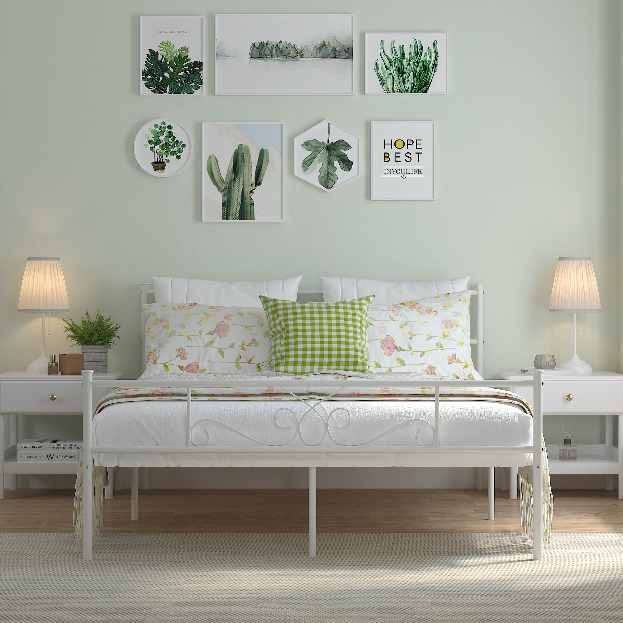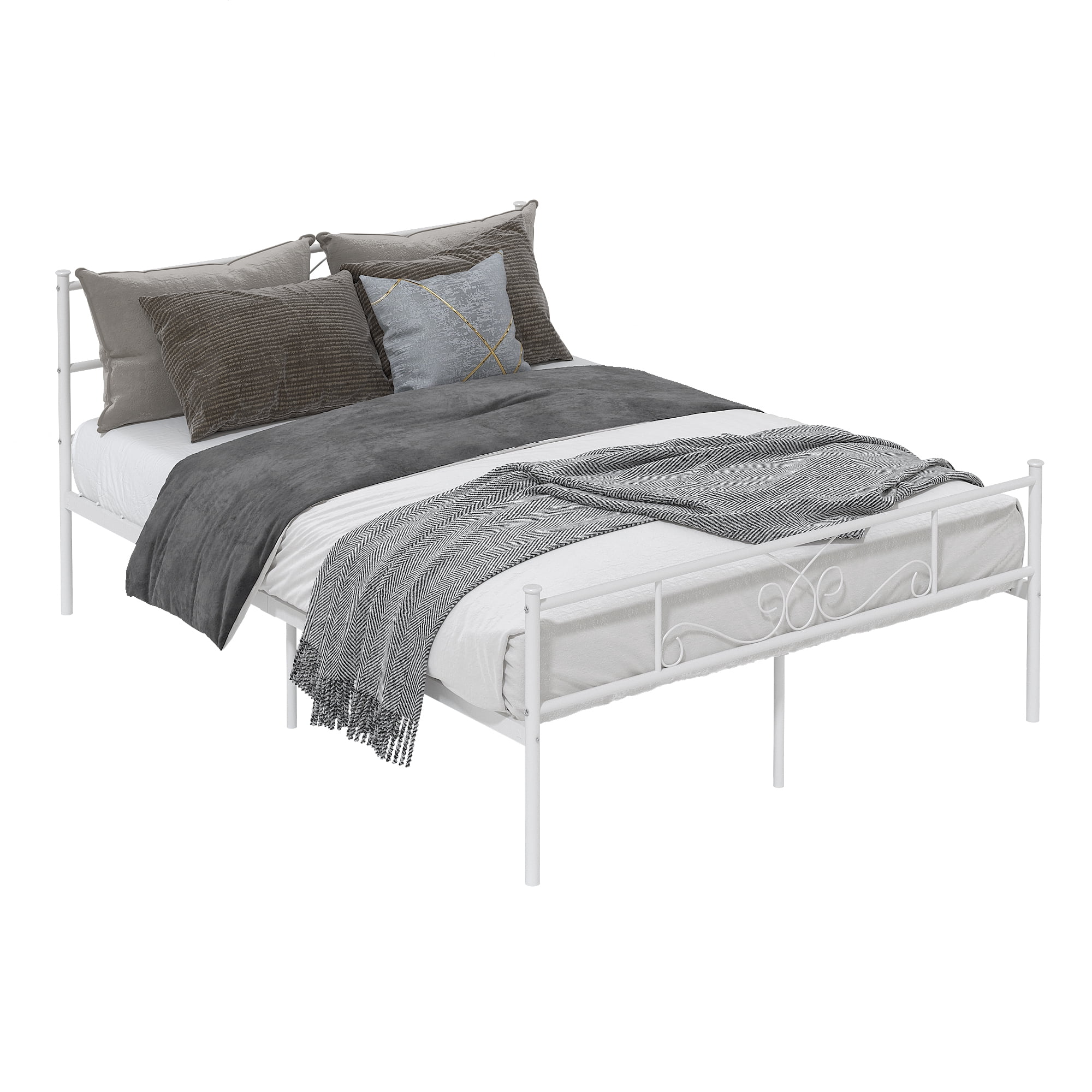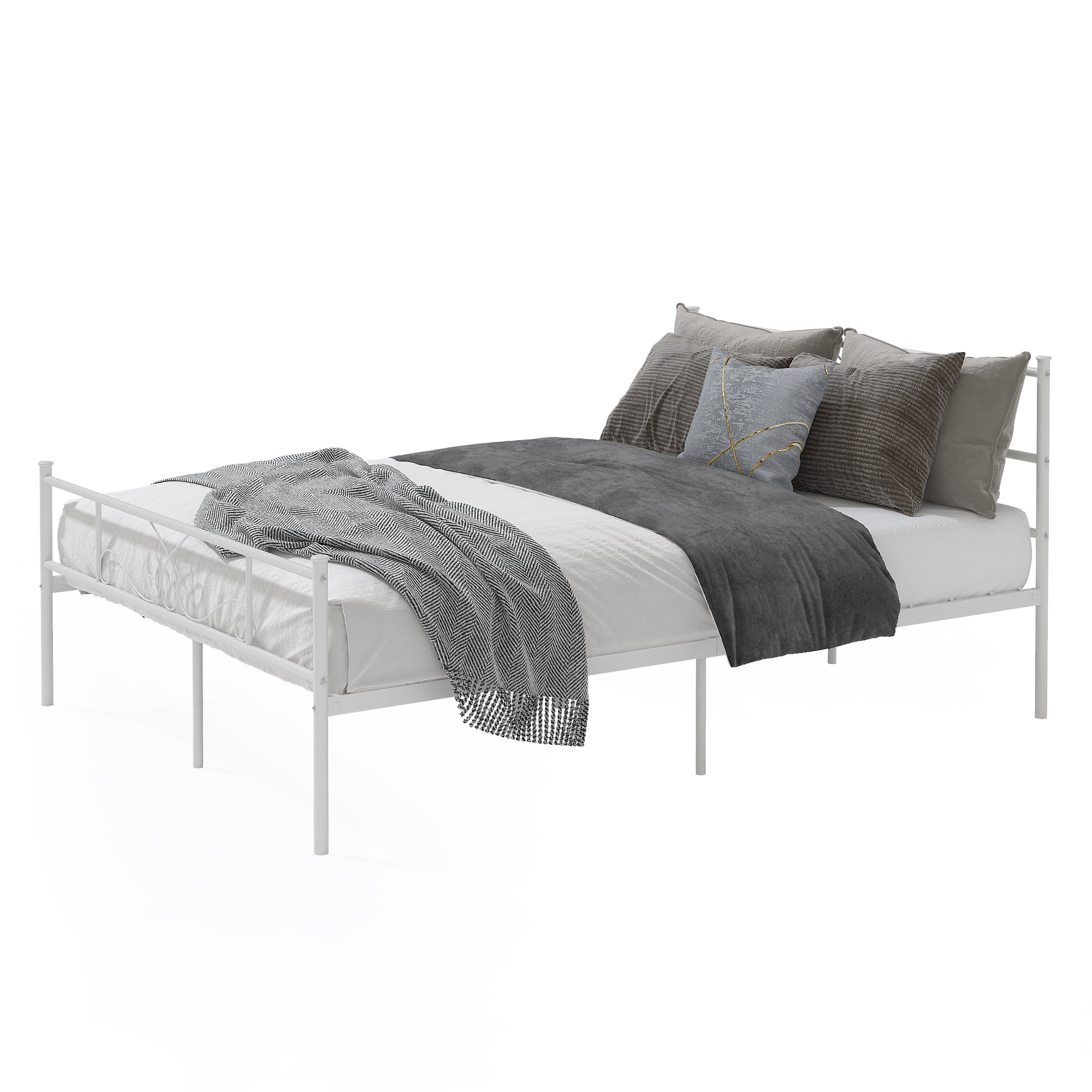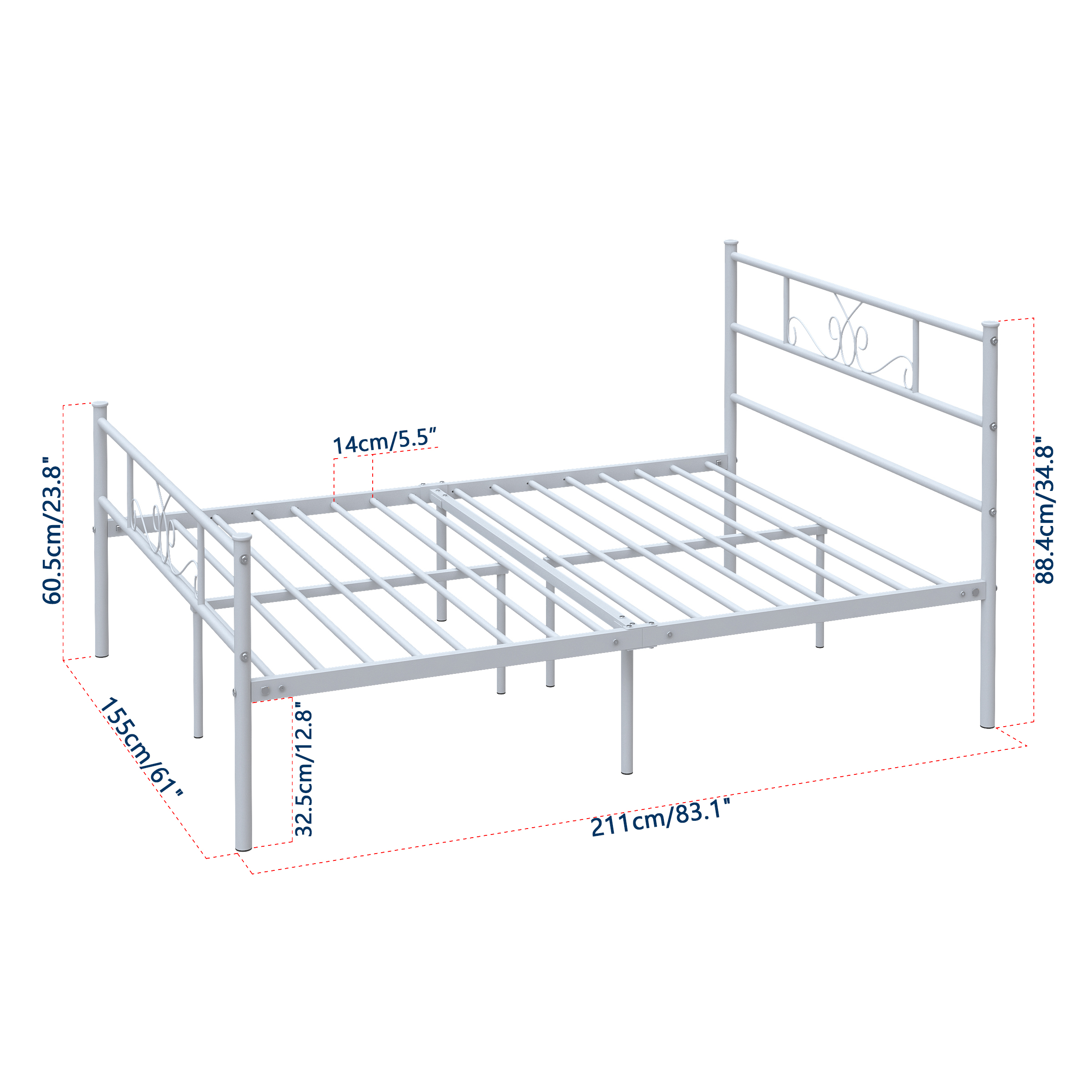 Features: Ultra Sturdy Bed Frame: This queen size bed frame is made entirely of durable steel frame, featuring strong slats and sturdy metal legs, with a maximum load capacity of 700lb, never worry about the slats breaking or snapping again, providing enough firmness and stability for your daily quality sleep. Maximum Storage Space: Our bed frames provide you with 12.5 inches of ample storage space to conveniently store seasonal clothing and linens, or other miscellaneous items. Ideal for teens and adults with queen size bed frames. Noise Free: The reliable steel bed frame ensures you sleep soundly day and night, free from squeaks and noises. Horizontal and vertical steel slats provide all the support your mattress needs without the need for springs. Make Cleaning a Breeze: Our beds come with powder coated iron frames that are scratch resistant and easy to clean. In addition, the metal slat construction is less likely to collect dust. In case of deterioration or dust, simply wipe with a dry cloth. Easy Assembly: Everything is included in the package, no additional tools are needed, all parts are clearly labeled, and one person can easily and quickly assemble and disassemble. Ideal Gift: This is a great gift for anyone who needs a beautiful bed frame or wants to upgrade an existing one. Excellent as a wedding gift, first apartment gift, moving gift, birthday, holiday or special anniversary gift. Specifications: Color: White Size: Queen Material: Metal Product Size: 83.1″ x 61″ x 34.8″ Product Weight: 47lbs Package Size: 62″ x 10″ x 5″ Package Weight: 50lbs Weight Capacity: 800lbs Package Includes: 1 x Bed Frame 1 x Instruction for installation 1 x Polybag 1 x Screw Set 1 x Components