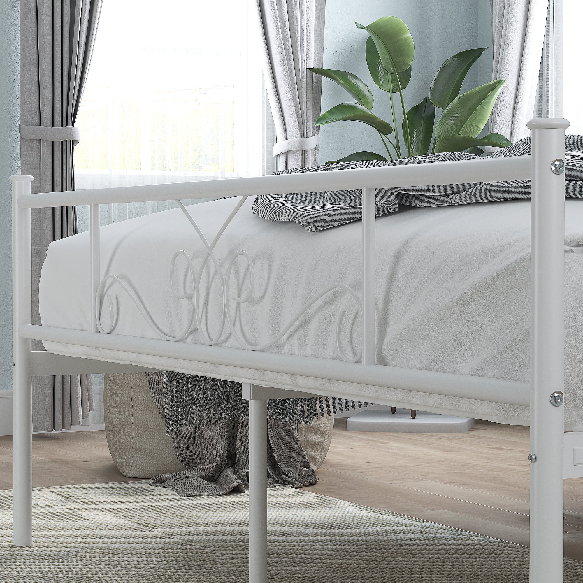 Add a touch of elegance to your bedroom with this Metal bed and make the most out of your bedroom space with this Multi-functional metal Bed. Good quality metal frame Strong steel tubing construction and Full-length guardrails provide the safe and comfortable sleep environment. This Metal Bed is a tasteful welcome to any bedroom. The bed frame comes flat-packed in one box for easy home assembly. Sturdily constructed, the bed includes metal slats and supporting legs for added support and comfort. This Metal Bed is a must-have in every home.