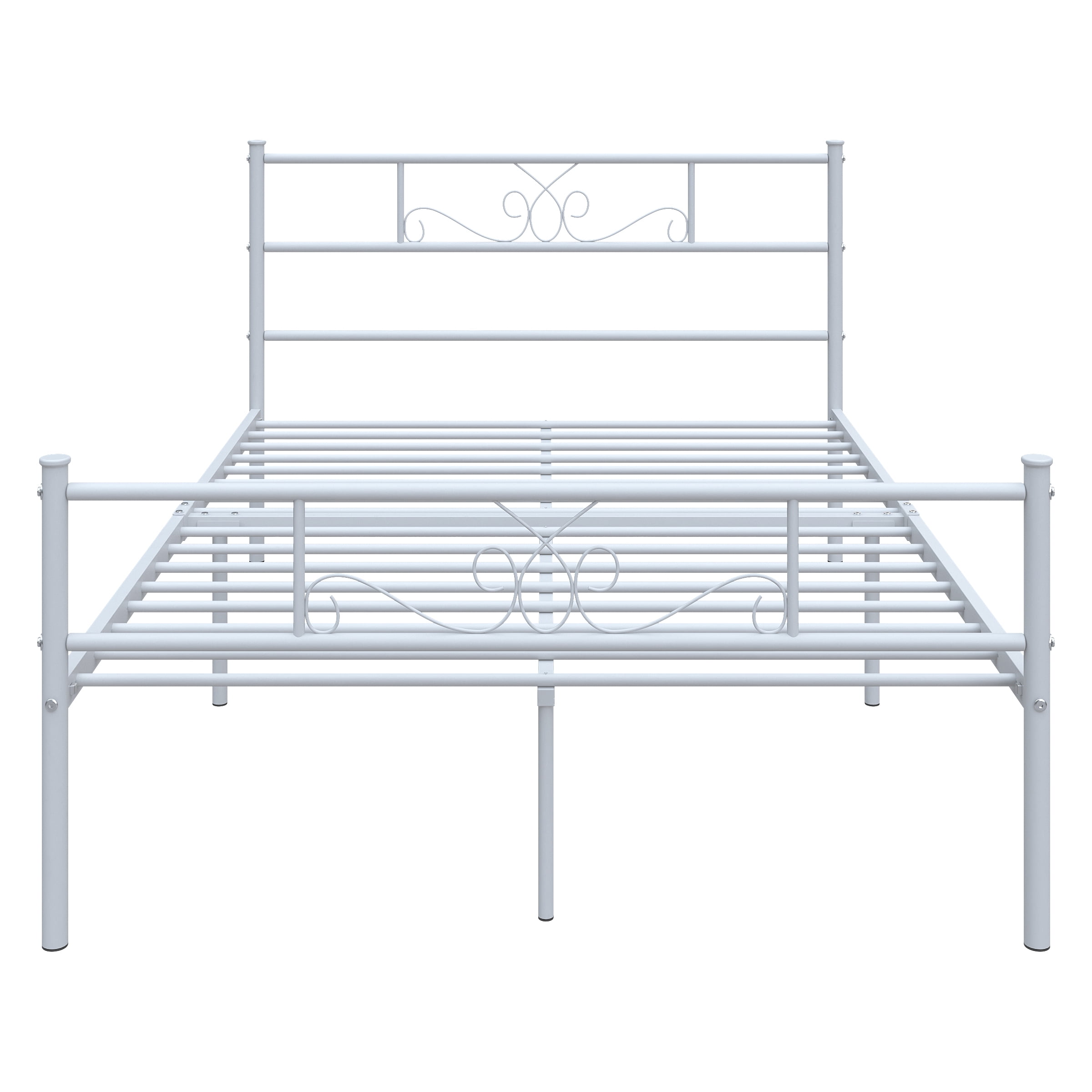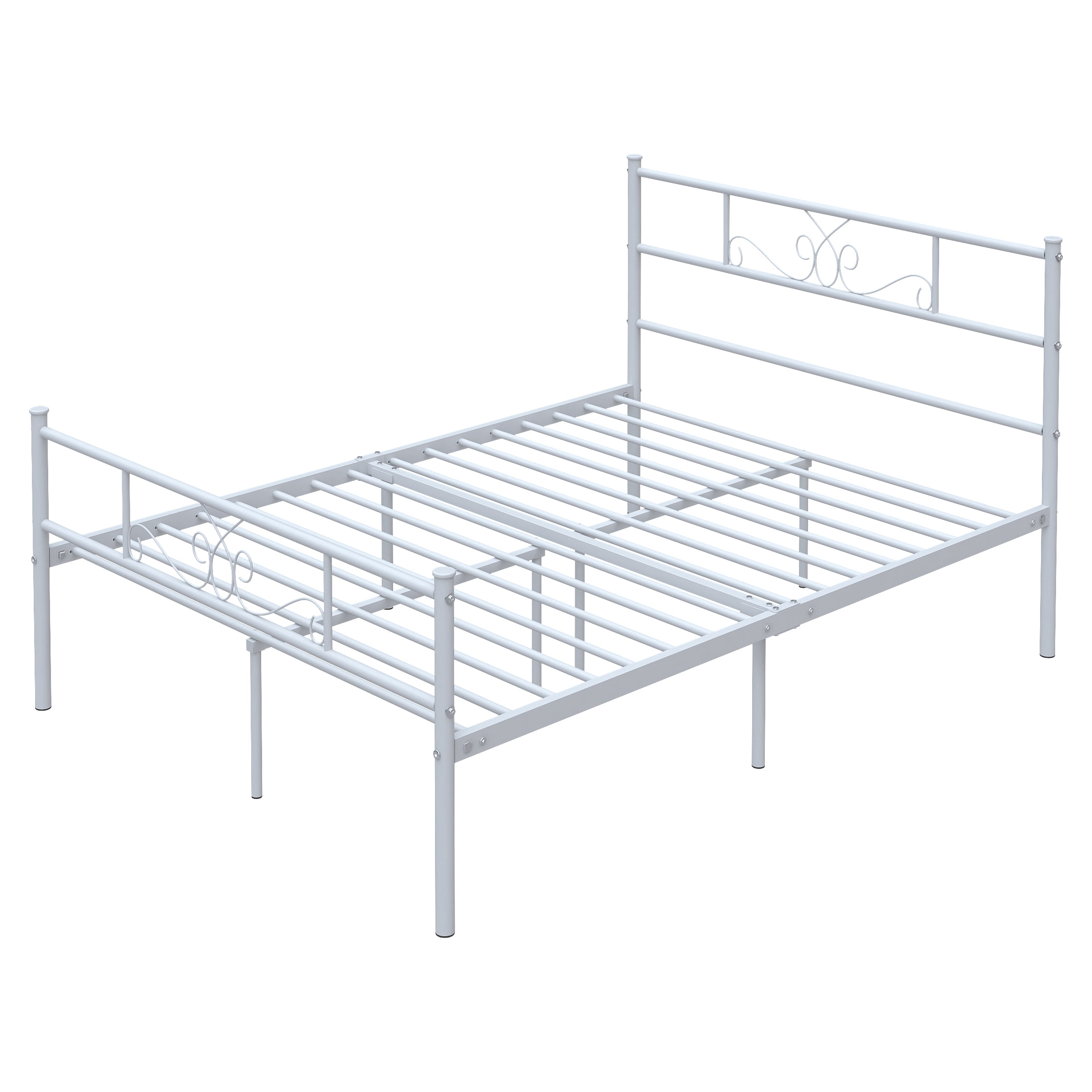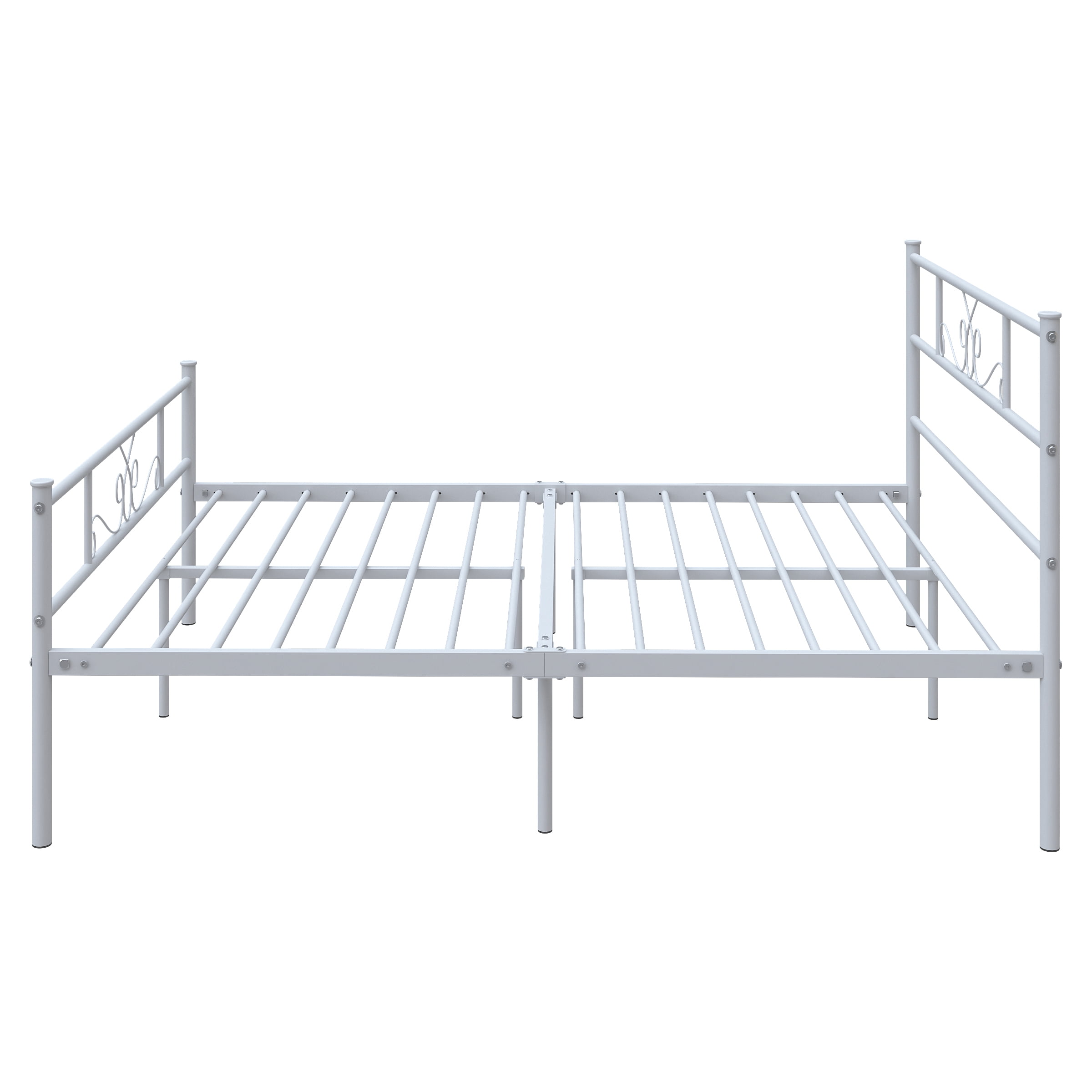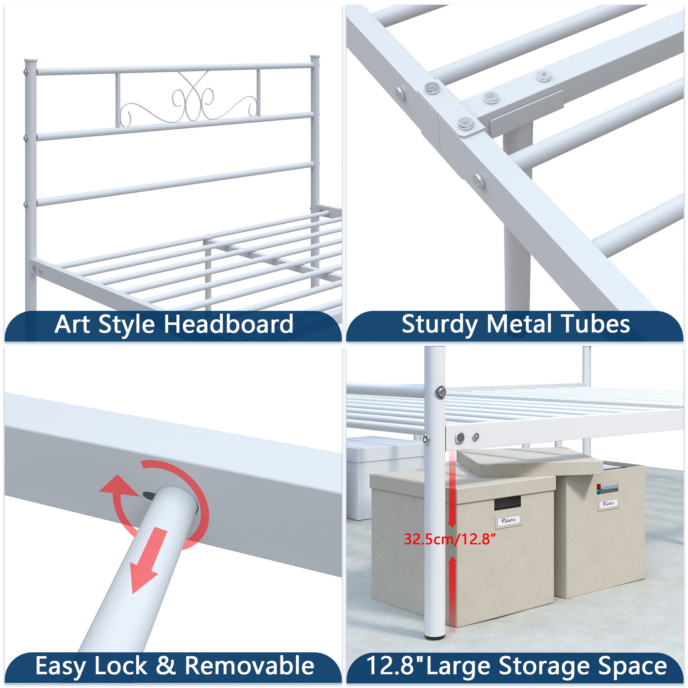 Yoneston Queen Size Metal Bed Frame Bedroom Mattress Platform Foundation with Headboard, White