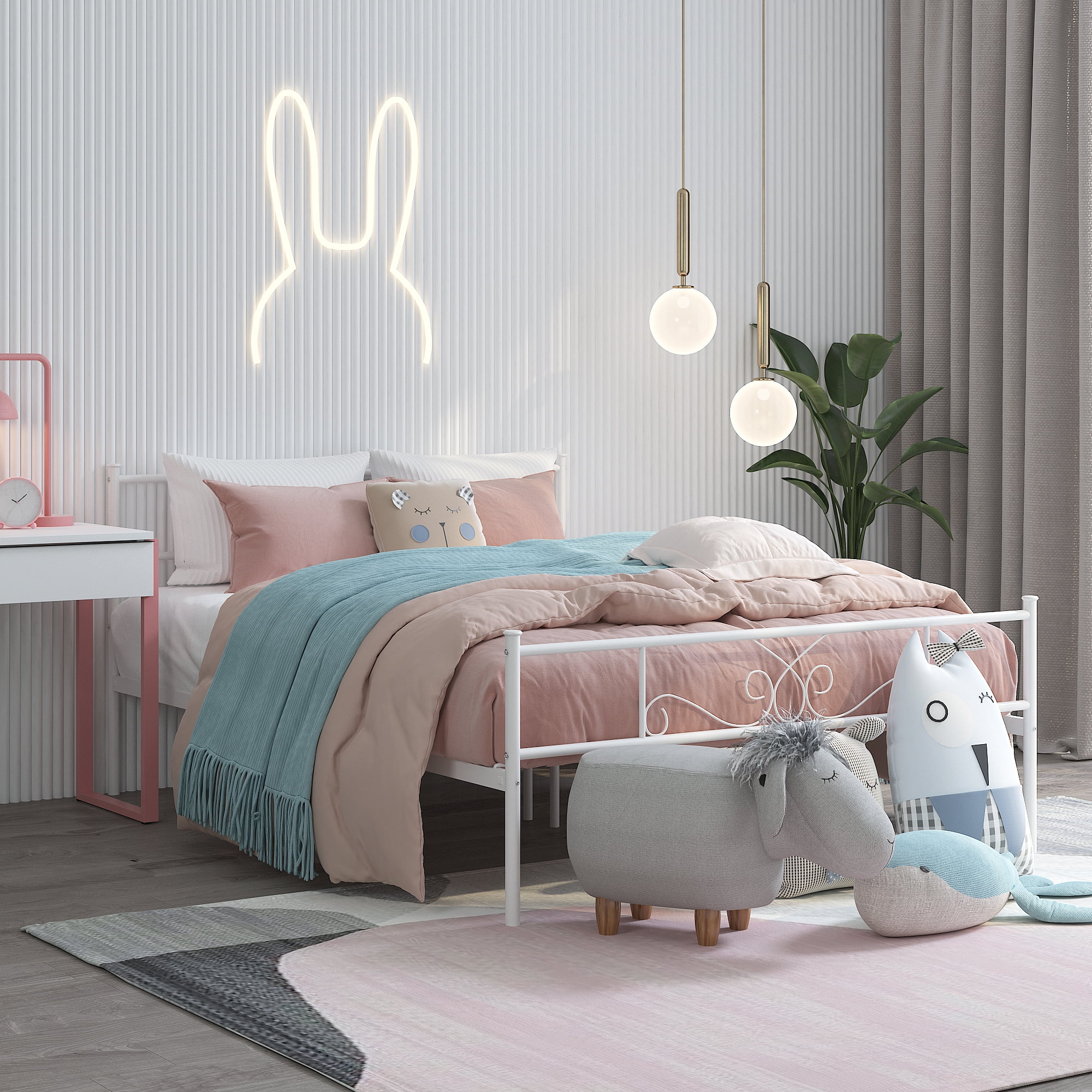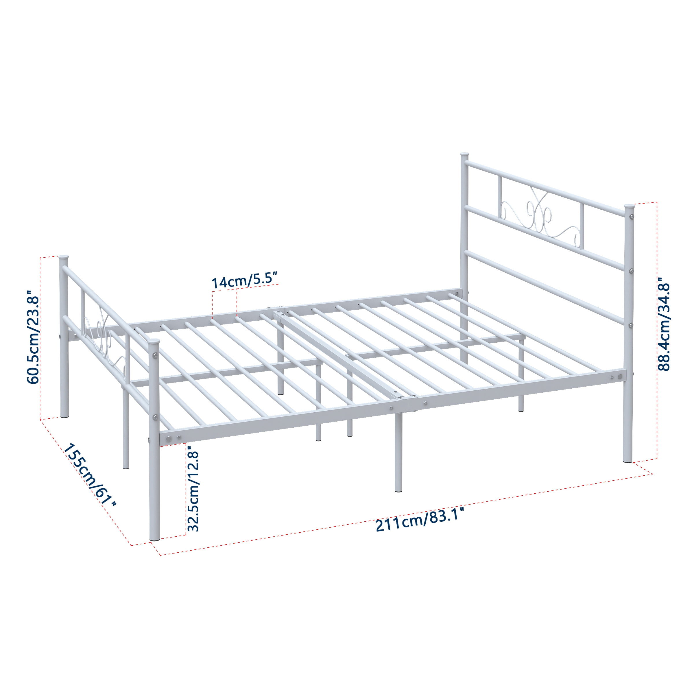 Features: Elegant Look: The clean lines of our bed frames combined with a matte white finish creates a minimalist yet stylish feel that is the perfect addition to many spaces such as children’s, teens’, girls’, boys’ and adults’ rooms. Super Strong Metal Bed Frame: Our bed frame is made of high quality metal to ensure a sturdy and durable construction for long term use. The center support legs and solid screw connections greatly improve stability. Multiple evenly distributed metal slats provide strong support for sleeping without chattering or scratches. Space Saving Design: The bed frame comes with 12.5 inches high clearance space, providing ample storage space for your organizers, suitcases, luggage and other personal items. Spaciousness for easy access at all times. No Spring Required: The evenly distributed metal slats blend naturally with the sturdy platform bed frame, eliminating the need for bulky springs. Easy to Assemble: Come with all parts, tools, and assembly instructions of the bed, an adult can handle in under an hour. (Only bed frame, mattress are not included) Best Festival Gift: Our bed frames are the best gifts for traditional festivals. Whether kids, childrens, boys, girls, teenagers or adults, this item can meet their needs, suitable for as Birthday Gift; Holiday Gift; Moving Gift; Decorative Gift; or Wedding Gift. Specifications: Color: White Size: Queen Material: Metal Product Size: 83.1″ x 61″ x 34.8″ Product Weight: 47lbs Package Size: 62″ x 10″ x 5″ Package Weight: 50lbs Weight Capacity: 800lbs Package Includes: 1 x Bed Frame 1x Instruction for installation 1x Polybag 1x Screw Set 1x Components