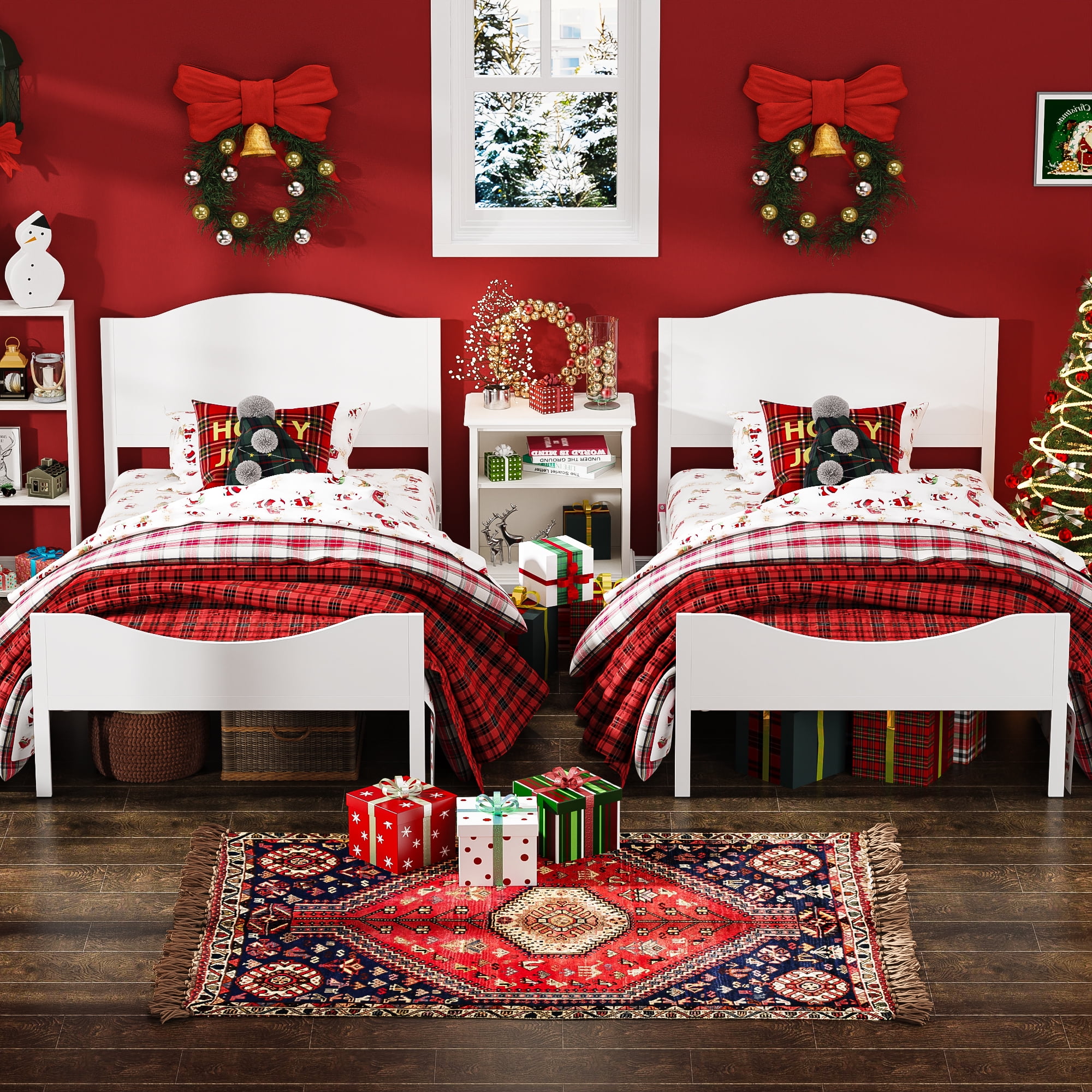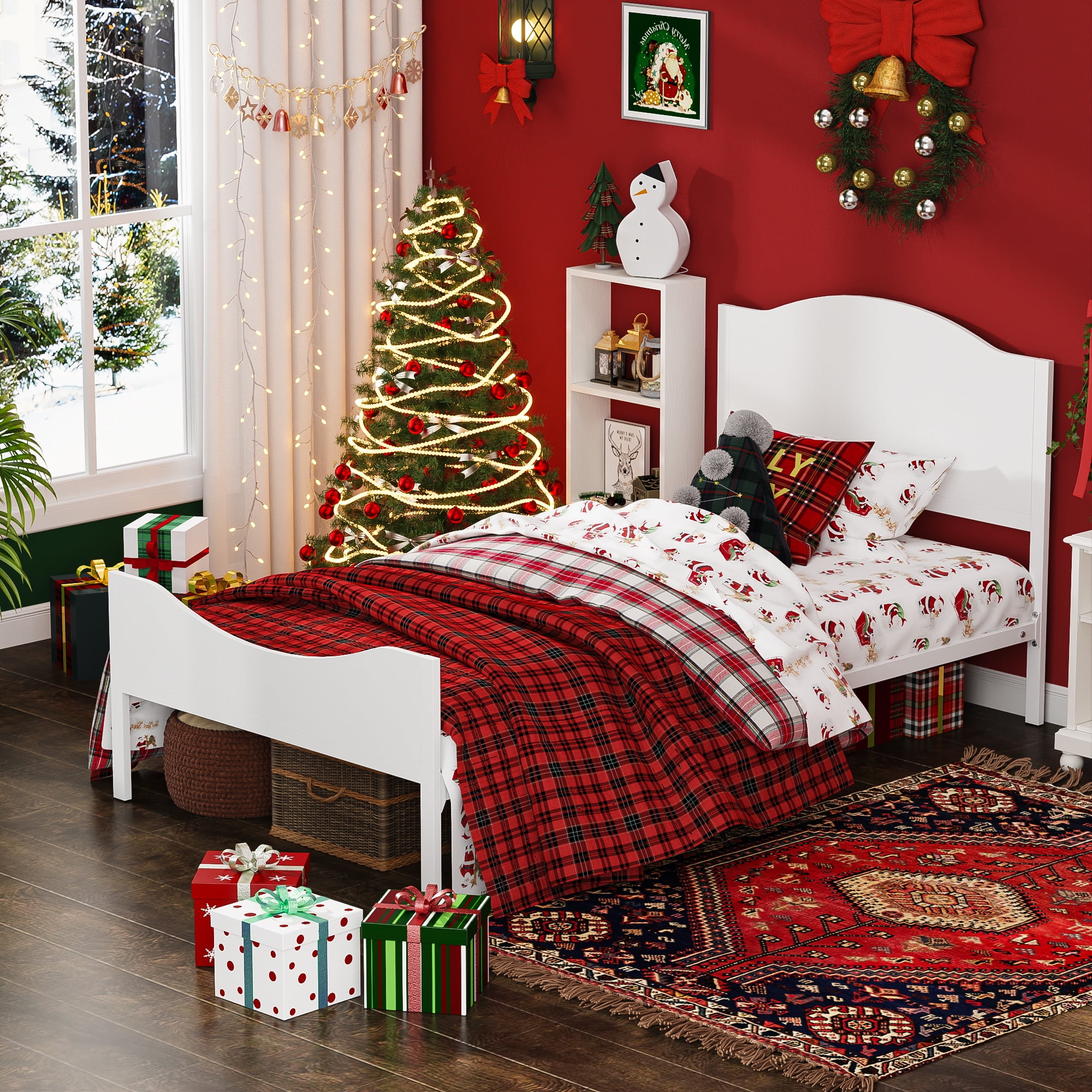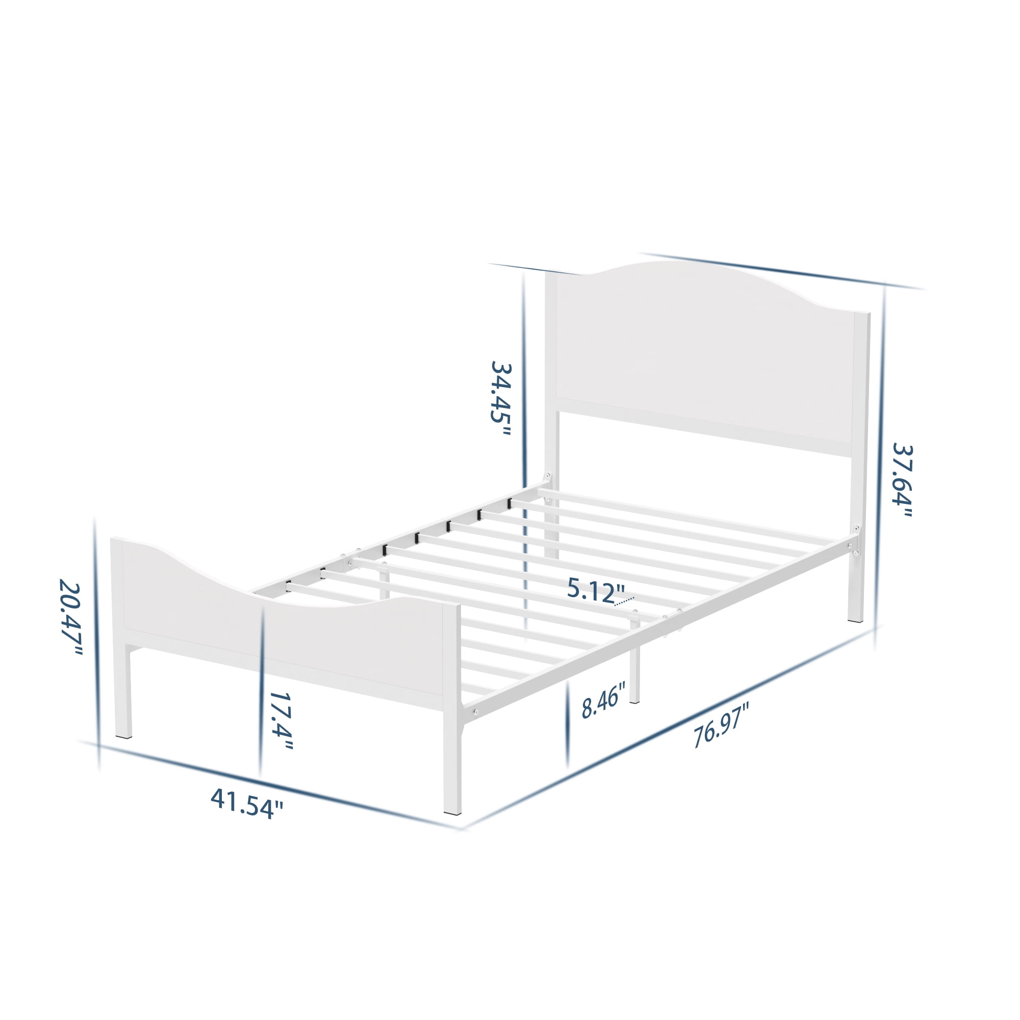 Features: HEALTH AND COMFORT – Our metal bed frame for kids made of health MDF Board and pure steel, it’s clean, no odor, give your child a comfortable sleep and spend their sweet dreams with them. STRONG AND DURABLE – The simple yet elegant teen’s bed frame is sturdy with 13 reinforced slats that support up to 350lbs, and ensures air moves freely around your mattress to keep it fresh for years to come. NO BOX SPRING NEEDED – The mattress can be put on the slates directly, ideal for sleepers looking to break away from a bulky box spring. EASY TO ASSEMBLE – It is easy for you to install the metal bed frame in short time with all the accessories and instructions are packaged well in the product parcel. BEST BEDROOM GIFT – Best Gift for Birthday, New House, Christmas, and Thanksgiving. Perfect for Bedroom, Apartment, School Dormitory, Hotel, Kid’s room. WORRY-FREE PURCHASE -For any quality issue, please feel free to contact us no matter what problem you meet, our customer service will help for all your concerns. Specifications: Material: MDF Board, Durable Steel Bed Dimension: 76.97 x 41.54 x 8.46inches Headboard Height: 37.64inches; Footboard Height: 20.47inches Capacity: 300-350lbs Package Size: 44.1x 20.48 x 4.14 inches Package Weight:47.4lbs(21.5kg) No box spring needed High headboard designed for comfortable rely on Package Included: 1 x Twin Bed Frame with Wood Headboard 1 x Instruction 1 x Screw Set 1 x Components