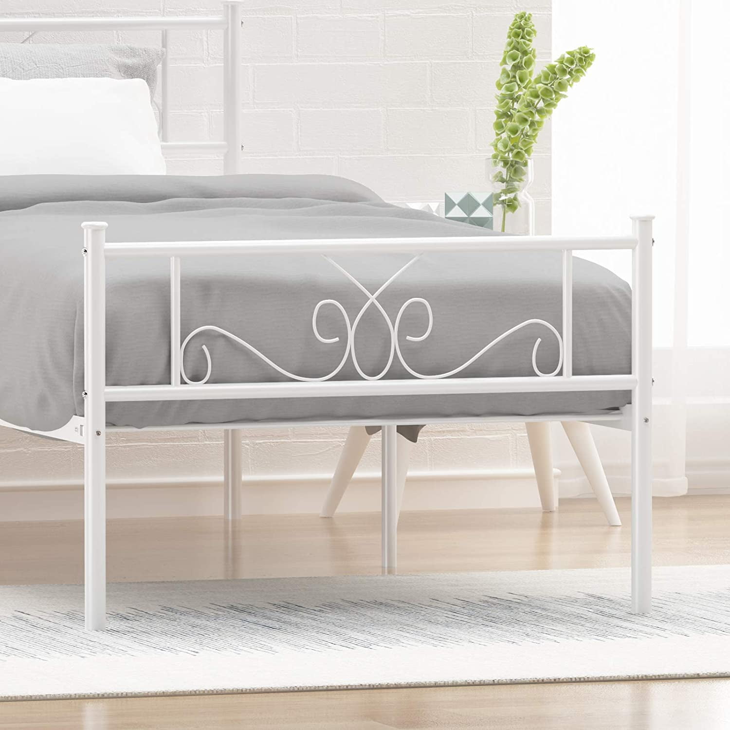 Yoneston Twin Metal Platform Bed Frame Bedroom Mattress Foundation with Headboard for Kids Teens, White