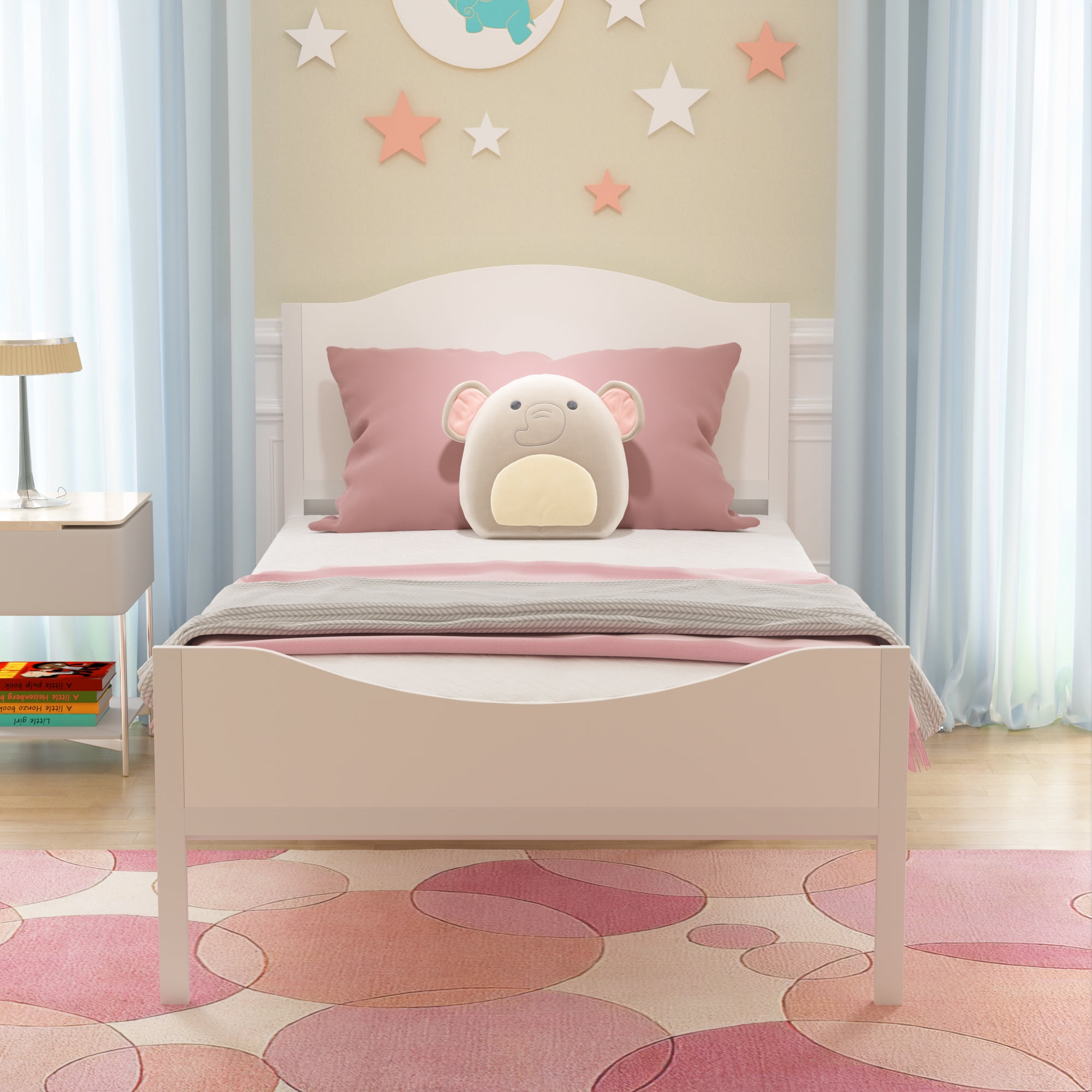 This platform Bed frame is made from quality solid wood with square metal slats for built to last. Its headboard offers understated visual appeal with its streamline designed, simpleness, pure and white. Our elegant bed frame meets any bedroom and kid’s room decoration. The Mattress can be put on the slats directly without slip, abandon box springs; you can save more money and time. If you are finding a good looking bed frame to give your kids a quiet sweet sleep, So don’t hesitate, it’s a good choice for you! Simple, Durable, Comfortable and Health, that’s what you need.