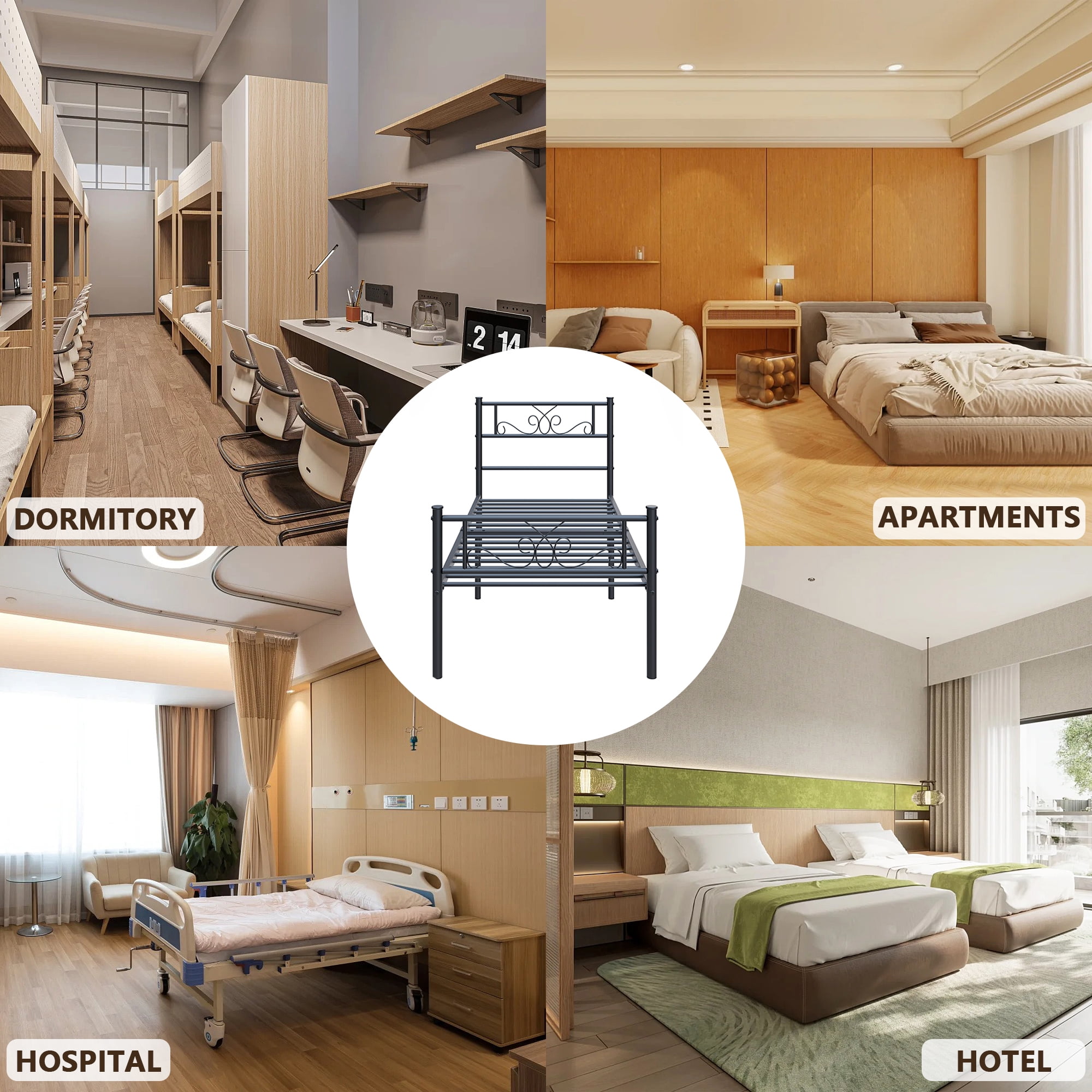 Features: Heavy Duty Support – Our metal bed frame is 100% durable steel construction, The entire foundation is made from strong steel with 6 independent support legs made bedframes pretty durable, can support up to 400lbs. Twin Bed Frame Size – This twin platform bed with headboard compatible with twin size memory foam / latex / spring mattress/ box spring. Bed frame fits for adult, child, boys or girls. Enough Under Bed Storage – 12.7-inch ample under bed storage space which can make convenient to storage boxes, toys, books, and shoes ect. Its girl’s organizer space and makes your bedroom clean and tidy. Easy To Assemble -Our twin size kids bed comes with detailed instructions and numbered parts so that it can be assembled step by step conveniently. Headboard And Footboard Design – Our single metal bed frame for girls with headboard and footboard that could keep the mattress on the frame from sliding. Quiet and comfortable. No Box Spring Required – The mattress can be put on the slates directly, ideal for sleepers looking to break away from a bulky box spring. Easy To Assemble -Our twin size kids bed comes with detailed instructions and numbered parts so that it can be assembled step by step conveniently. Specifications: Material: Durable Steel Bed Dimension: 77.4 x 36 x 34.8inches Headboard Height: 34.8inches; Footboard Height: 23.8inches Capacity: 400lbs Package Size: 40 x 10 x 5 inches Package Weight: 32lbs No box spring needed High headboard designed for comfortable rely on Package Included: 1 x Twin Metal Bed Frame 1 x Instruction 1 x Screw Set 1 x Components