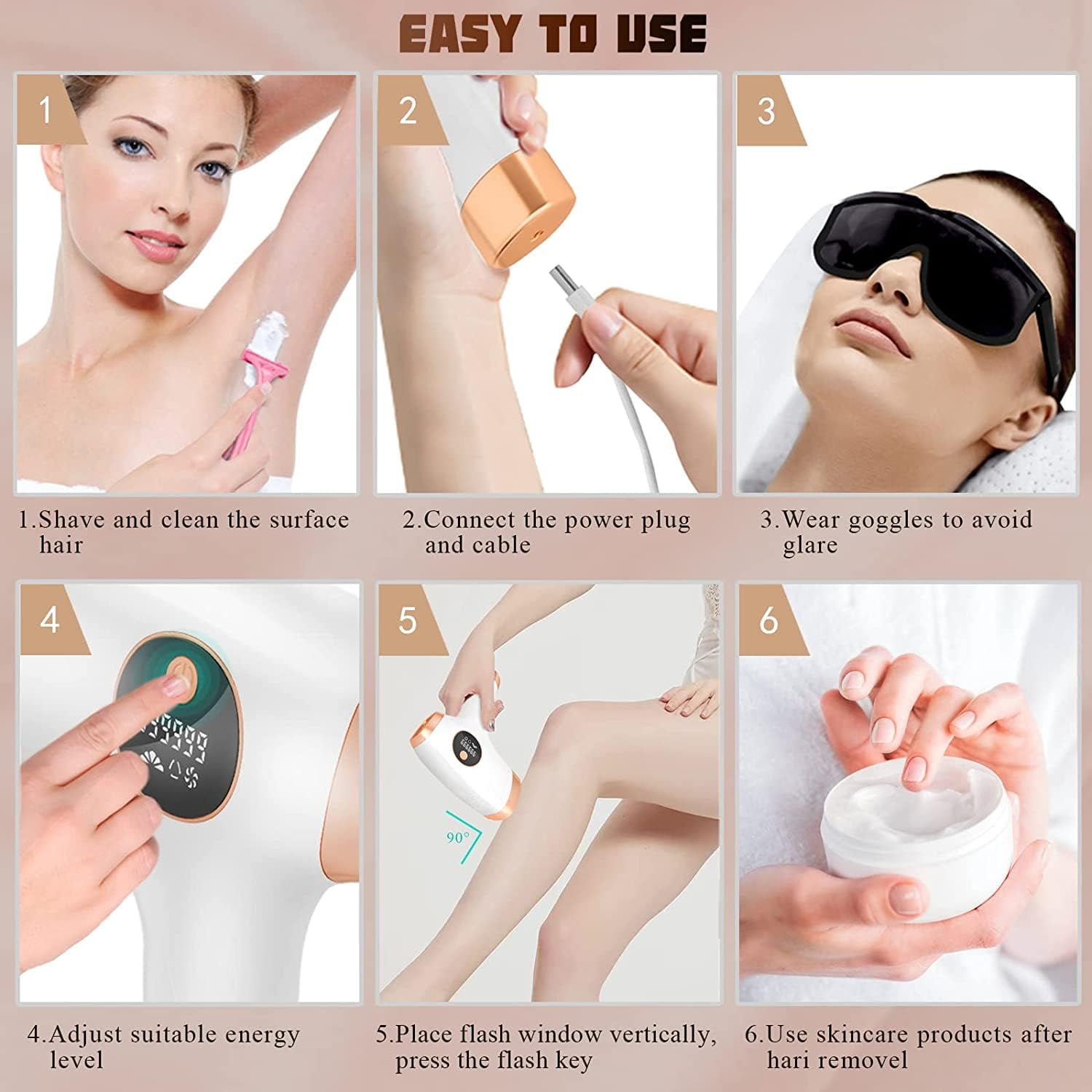 Features: Advanced Intense Light Technology: Harnesses Intense Light to interfere with hair growth cycles, achieving lasting hair reduction in as few as 8 weeks with consistent use. Vast Flash Quantity: Features 999,999 flashes, guaranteeing a lifetime of use for full-body sessions and enduringly smooth skin. Variable Energy Settings: Provides 5 tailorable options (4.5J–10J) to accommodate various skin types and delicate zones, emphasizing safety and ease. Flexible Modes: Toggle between automatic mode for expansive zones (legs, arms) and manual mode for accuracy (upper lip, bikini region). Broad Applicability: Works on numerous body sections, encompassing the upper lip, chin, underarms, legs, arms, and bikini zone. Specifications: Rated Power: 36W Flash Count: 999,999 Energy Span: 4.5J–10J Color: Sophisticated White + Gold Material: Robust ABS Dimensions: 139 x 49 x 196 mm (5.47 x 1.93 x 7.72 inches) Battery: Not relevant (functions with a power adapter) Package Contents: 1 x Yoovee IL Hair Removal Device 1 x Power Adapter 1 x Shaver 1 x Safety Glasses Q&A: Q: What’s the suggested usage pattern for best outcomes? A: Use twice weekly for the initial 4 weeks, then once weekly for weeks 5–8. Q: How does it stack up against salon sessions? A: Utilizes the same IL photon technology as salons, yielding similar outcomes. Q: Is the session hurtful? A: Engineered to be nearly pain-free; a gentle warming feeling is typical and signifies efficacy. Q: Any pre-/post-session care advice? A: Shave the intended zone before use. Subsequently, focus on skin care and sun defense. Why Select Yoovee IL Hair Removal Device? For Mother’s Day: Present the women in your circle with the delight of smooth, glowing skin. A considerate gift that continues to give. For Summer: Attain hair-free skin in time for beach outings and pool gatherings. Use consistently for enduring liberty to don your favorite attire.