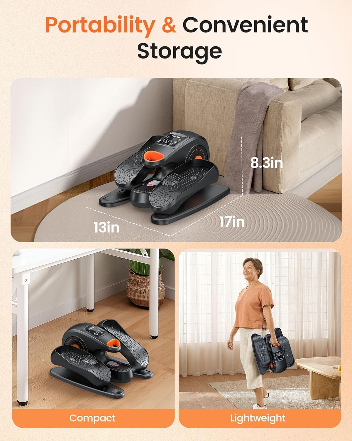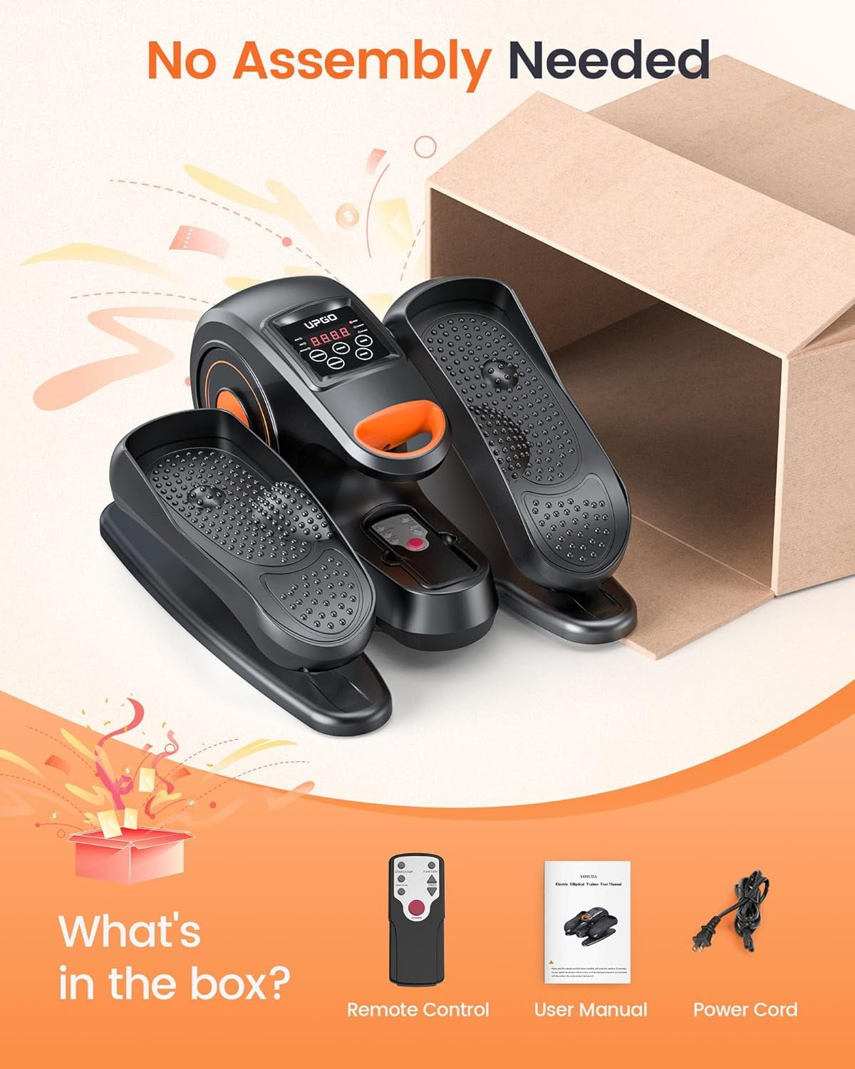 Seated Pedal Exerciser, Home Rehab Helper?Designed for at-home physical recovery, the YOSUDA under desk ellipse enhances mobility, stimulates blood circulation, and strengthens lower body muscles. An optimal ellipse exercise machine for seniors, recovery enthusiasts, and sedentary office workers! Easy to use Just one button to start! Adjust modes on the LED screen or the included remote control: 3 pre-set 30-minute workouts (P1-P3) or manual mode (speed levels 1-10, forward and reverse). Customize your workout to your needs and preferences. Never a dull moment? Very Easy to Use: Unlike other electric under desk ellipticals, there are no complicated programs on our machines . All you have to do is press the button on the remote control and start moving. Digital Display,Easy to Read LCD display clearly shows your exercise data (time, distance, speed, calories, counter), Thoughtful remote design allows mode change without bending, reducing your back stress. Senior Friendly:No assembly required, lightweight to carry, easy to store. These thoughtful designs make this mini elliptical ideal for the elderly and people with limited mobility. Perfect gifts for your parents and grandparents. Choose YOSUDA: 20 years of excellence in home exercise equipment. Trusted by over 1 million families . You’ll receive more than just a foot pedal exerciser. enjoy a month of free returns or refund, lifetime service, and 24/7 support.