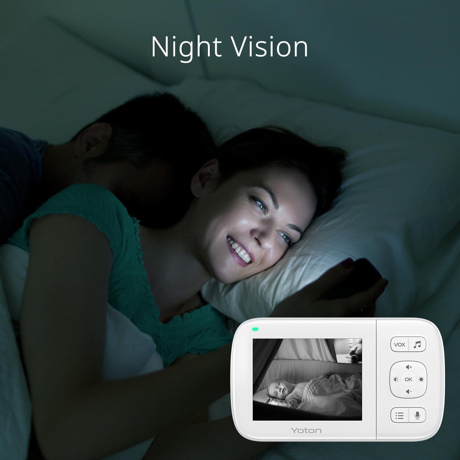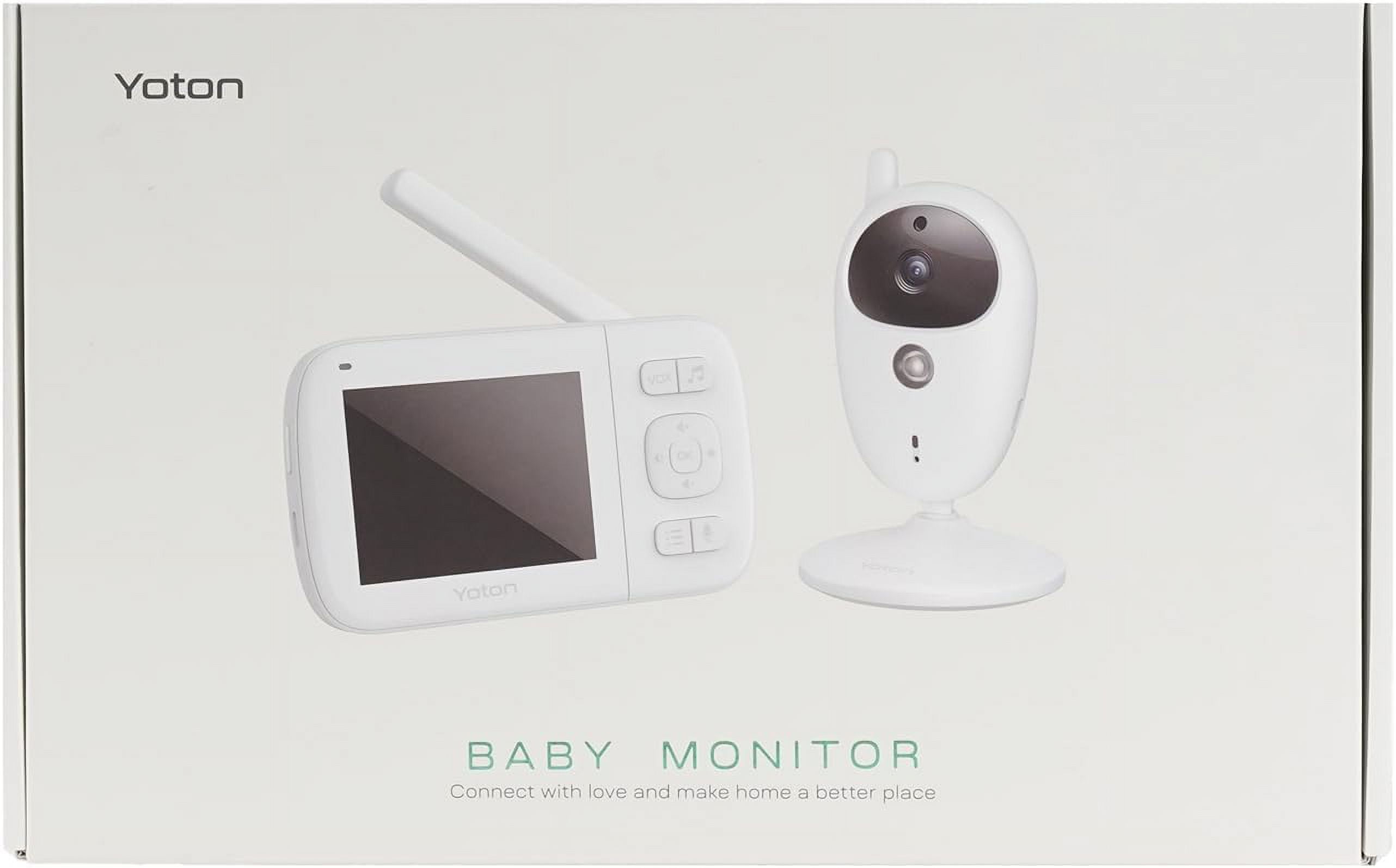 Yoton 3.5″ Video Baby Monitor with Night Vision, Temperature Sensor, Two Way Talk, 2.4GHz Wireless 3.5″ High Quality LCD Display & 2.4GHz Wireless Digital Transmission: Features a 3.2 inch TFT LCD screen connected to the baby camera via enhanced 2.4GHz wireless technology for clear real-time video and audio Infrared Night Vision and Temperature Monitoring: Equipped with infrared night vision to monitor your baby’s sleep state in low light and room temperature monitoring for a comfortable environment Two Way Talk and 1000mAh Battery: Advanced microphone and speaker for clear two-way audio conversations; portable parent unit with rechargeable battery for convenience VOX Wake-up Mode and Feeding Alarm Reminding: Automatically wakes the screen when the baby cries and allows you to set feeding reminders Safe and Secure and Easy-installment: Manually rotatable video monitor that can be easily installed on walls or other surfaces for comprehensive monitoring