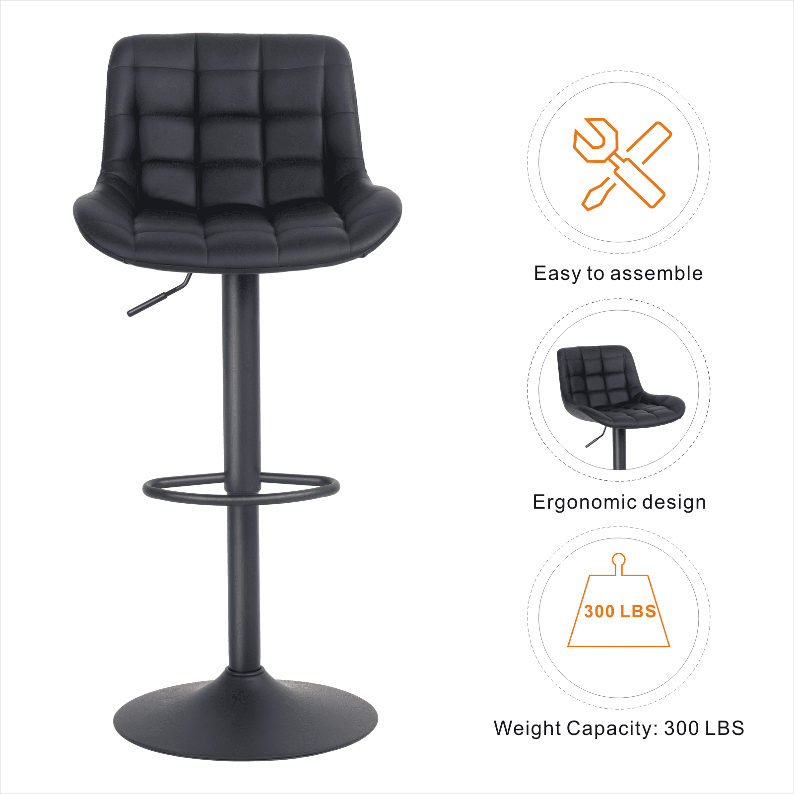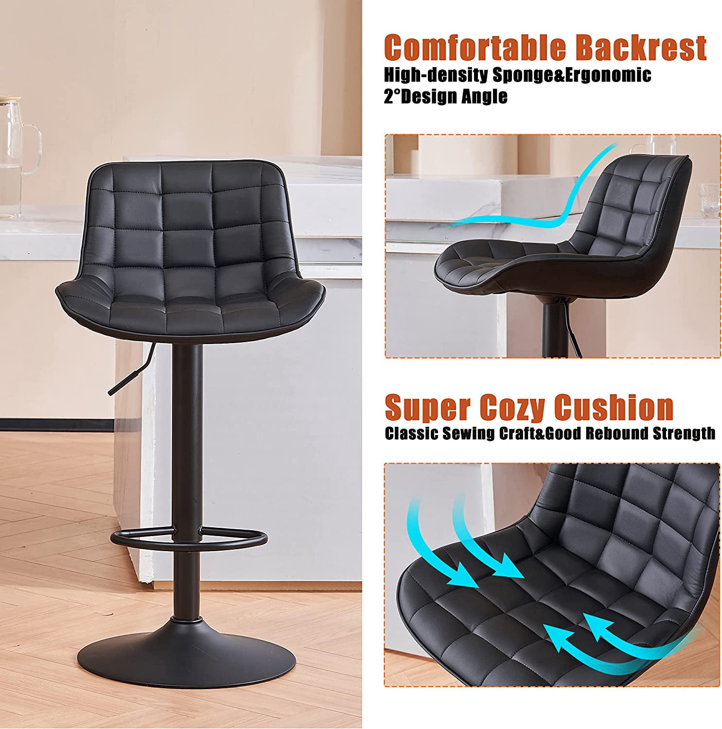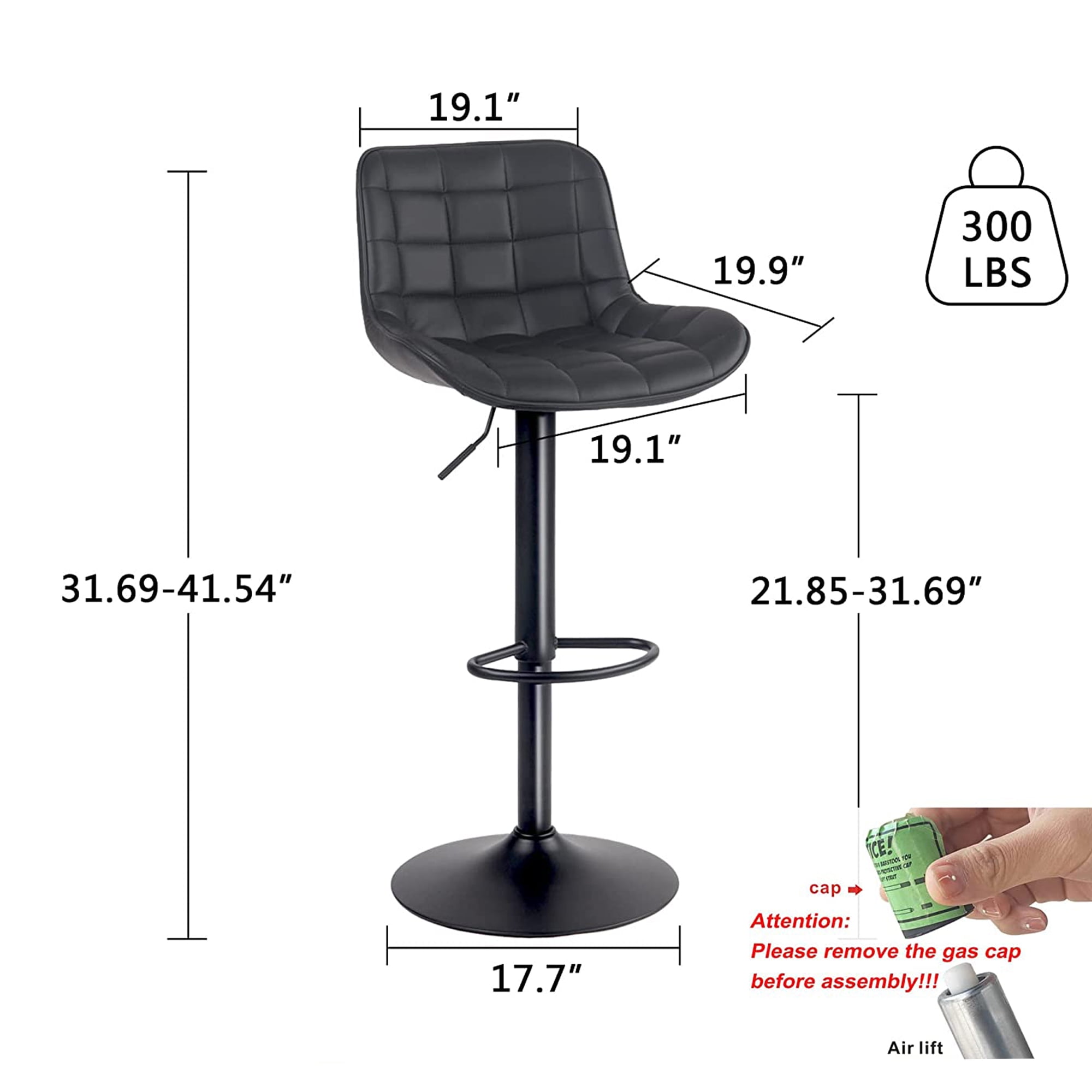 【Super Comfort&Ergonomic Design】Upgraded waterproof commercial-grade faux leather, provide a premium look and comfortable wrapping feeling. L-shaped high backrest and wide chair cushion provides a full back&hip support even for tall guys. 【Solid Metal Frame&Advantaged Technology】Class-3 gas lift, the best choice for stability and safety, adjustable length meets your different needs for the bar chairs height. Large base crafted from tough metal makes barstools supportive and balanced. Soft powder coating has been newly upgraded, making the stools very scratch resistant. 【4 Screws-Minimal Assembly Required】Only 7-10 minutes and 4 screws to enjoy a good time with the bar height stools. Please REMOVE the plastic gas cap BEFORE assembly. 【Product Dimension】Overall Size: W19.1x D19.9 x H31.6-41.5 inches; Adjustable Seat Height: H21.8-31.6 inches; Weight Capacity: 300lbs; 360˚ freely rotate. Enjoy Cozy Bar Stools with YOUNIKE