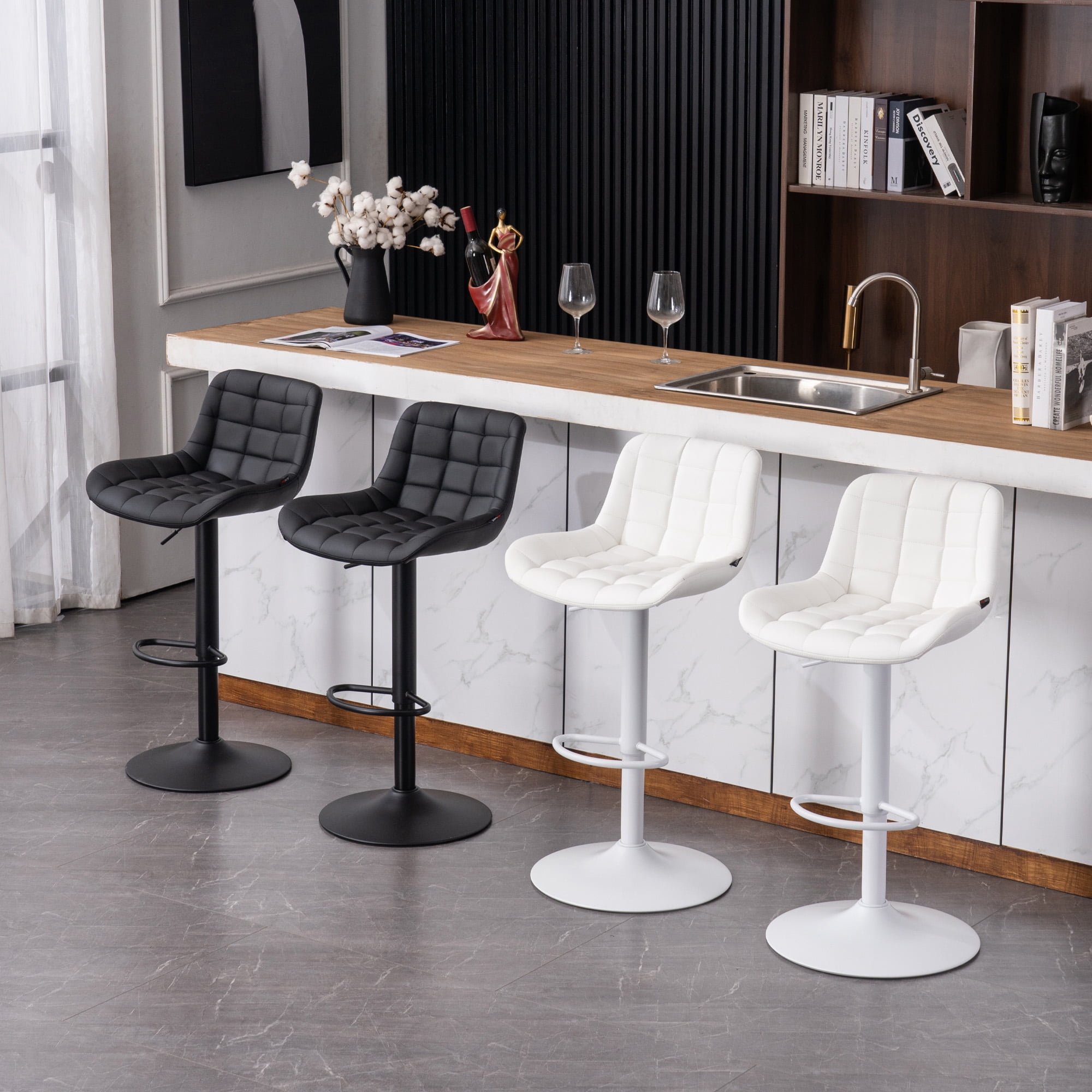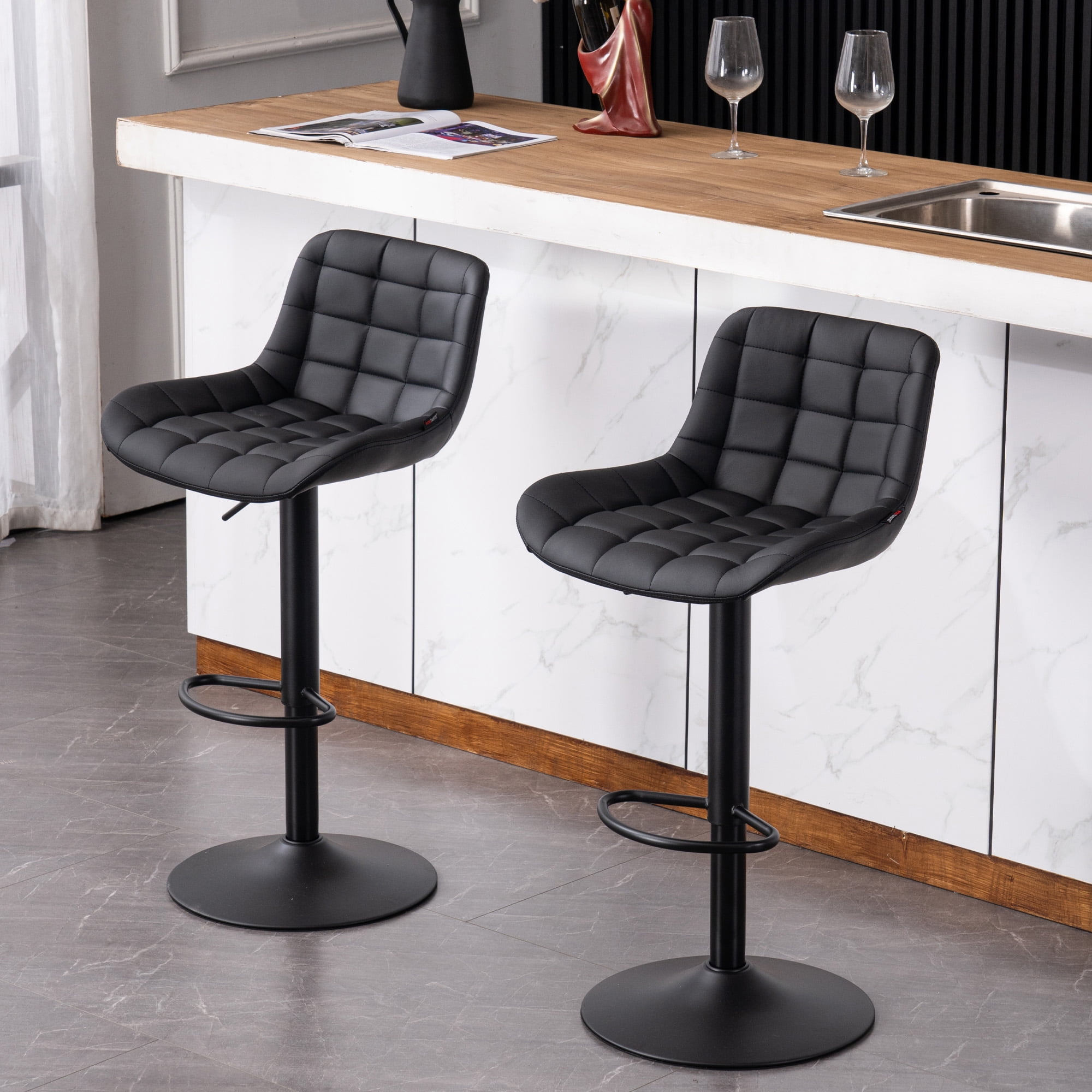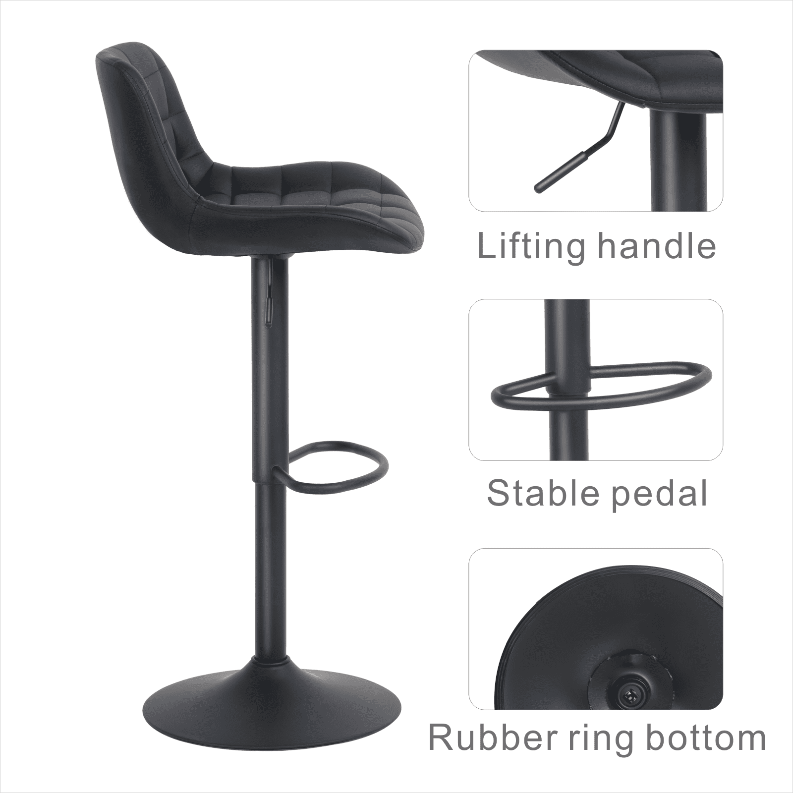 YOUNIKE Bar Stools with Soft Cushion Set of 2 Adjustable Swivel Bar Chairs Counter Stools,Square Grid Black