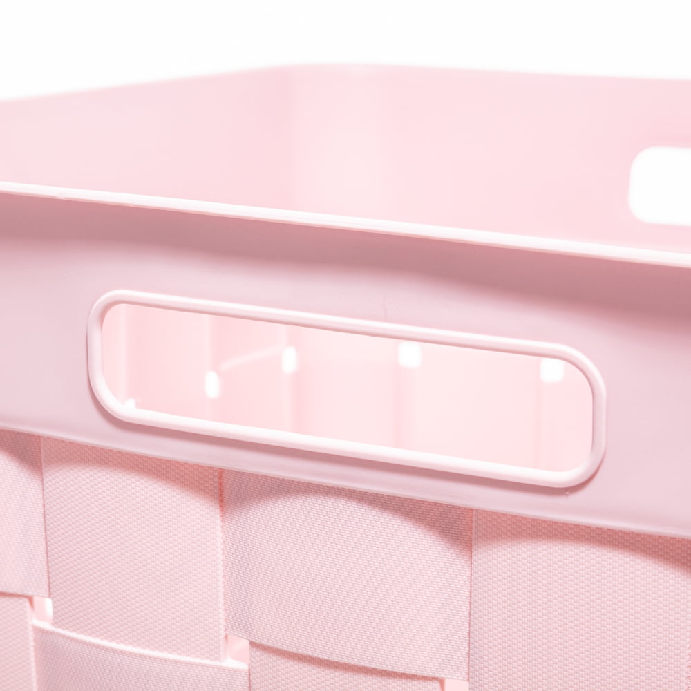 Your Zone Large Wide Weave Stacking Bin, Pink, 4/Case