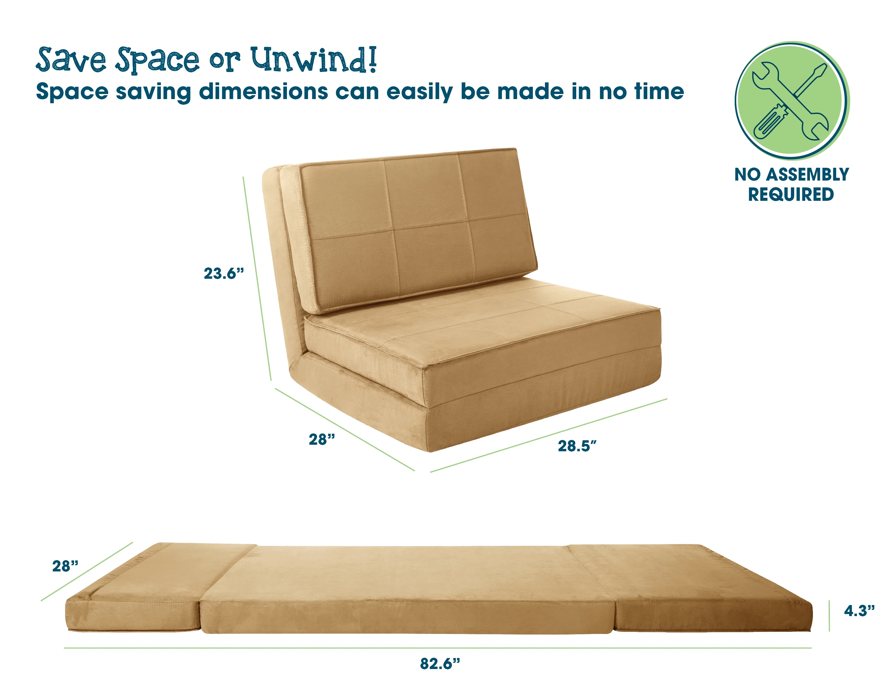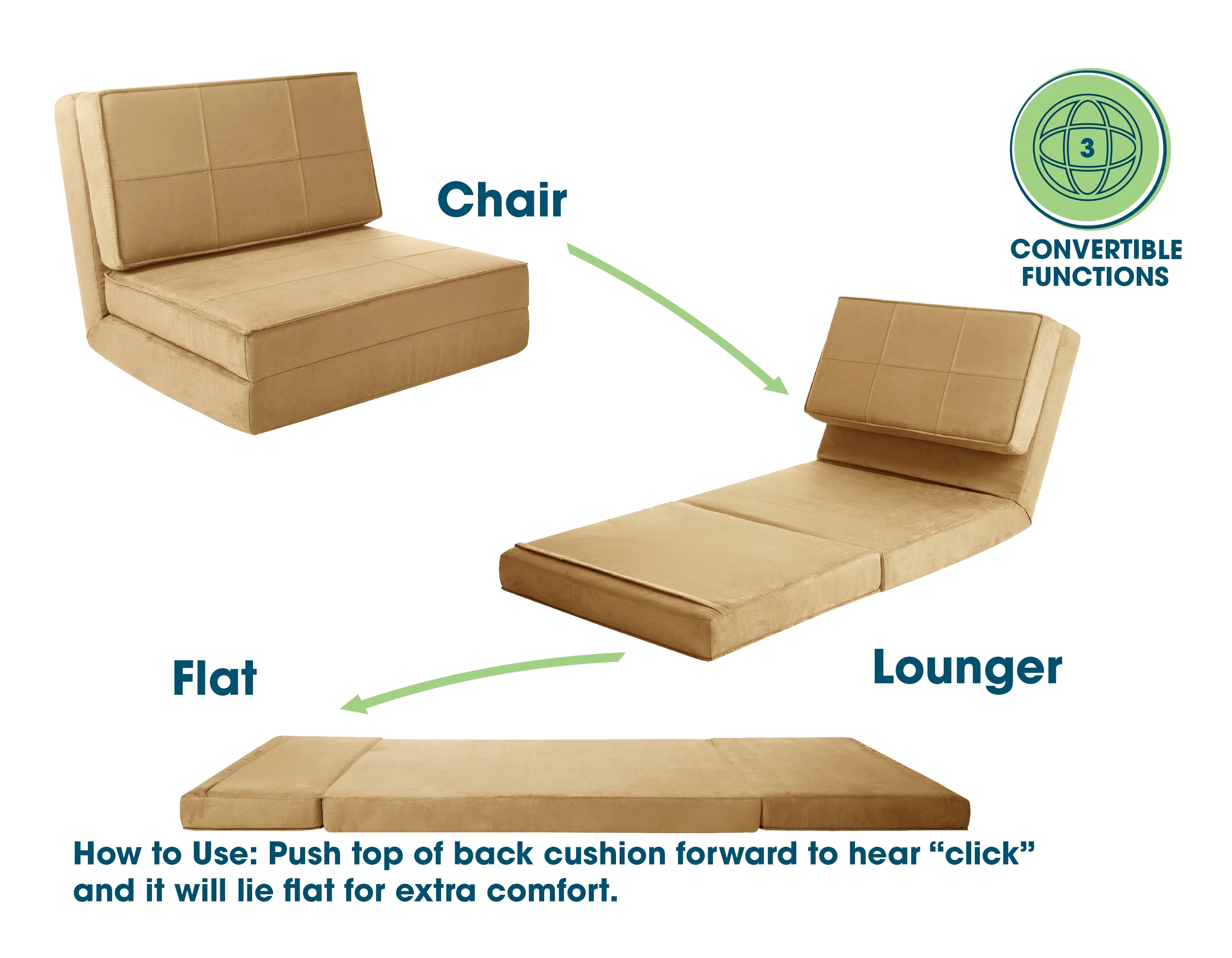 Your Zone Ultra Soft Suede 3 Position Convertible Flip Chair, Beige