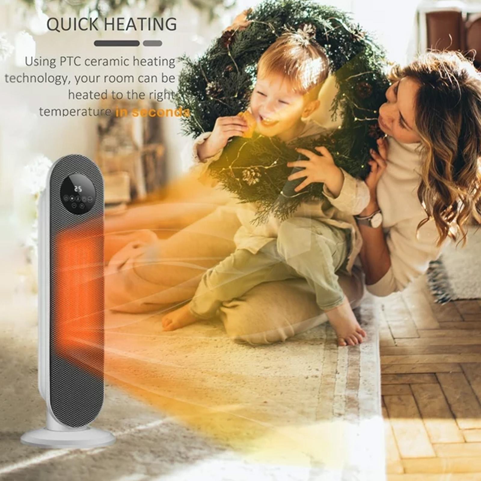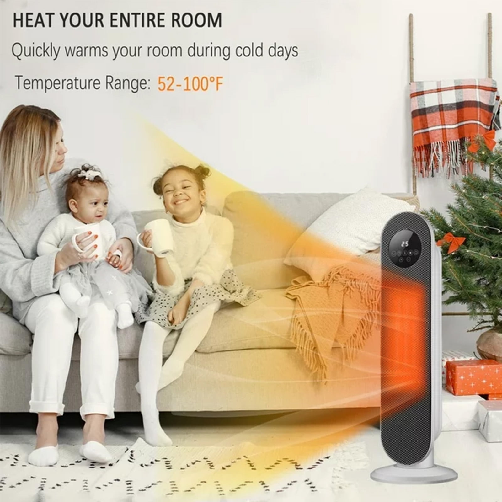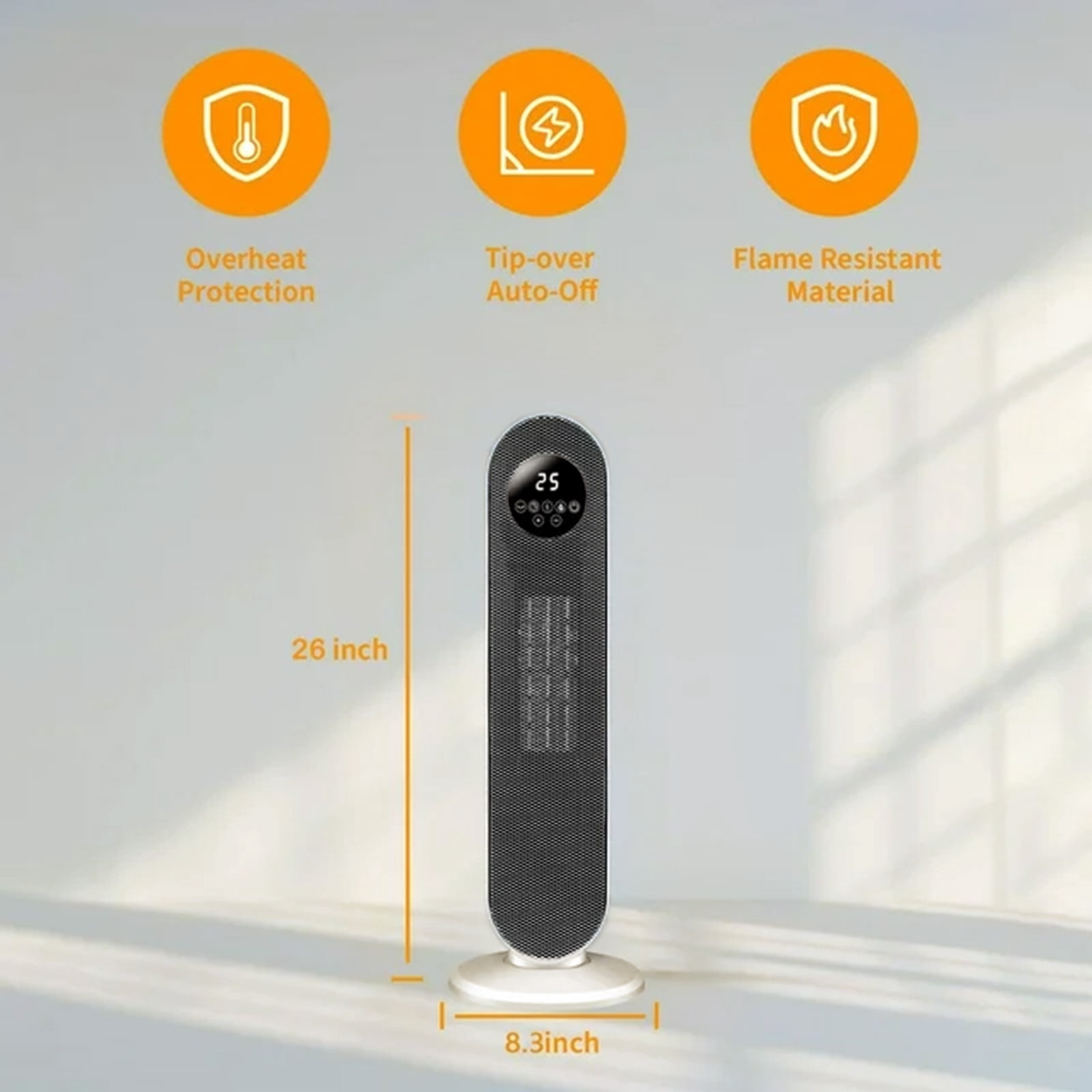 Fast & Efficient Heating: Our 1500W space heater quickly and efficiently warms your space, providing comforting warmth exactly where you need it. Whether it’s placed by your feet, on a desk, or carried around indoors, this versatile portable heater has you covered. Heating Coverage: 200 sq.ft. Complete Safety Assurance: Experience worry-free heating, day and night. This ETL-listed space heater offers comprehensive safety features, including tip-over and overheat protection, along with an enhanced safety plug. Crafted with UL V0 flame-retardant materials, it ensures your safety from every angle. Wide Heat Dispersion: The 26-inch compact design, coupled with a hidden handle, makes this space heater effortlessly portable. Its 60° wide-angle oscillation efficiently distributes heat across a large area, ensuring uniform warmth for your bedroom, garage, basement, office, desktop, and more. Personalized Heating: Tailor your heating experience with this space heater’s 2 modes – High and Low – giving you precise control over the heat output. The included remote control allows for easy adjustments, ensuring you achieve the perfect balance between warmth and energy savings. Its lightweight and portable design suits various spaces, including homes, large rooms, living rooms, bedrooms, basements, offices, and more. Energy-Efficient Comfort: Embrace the perfect blend of warmth and energy savings. This 1500W room heater combines portability, safety, and precise heating control for a comfortable living environment. Ideal for use in any indoor space, it’s your go-to solution for staying warm and cozy.