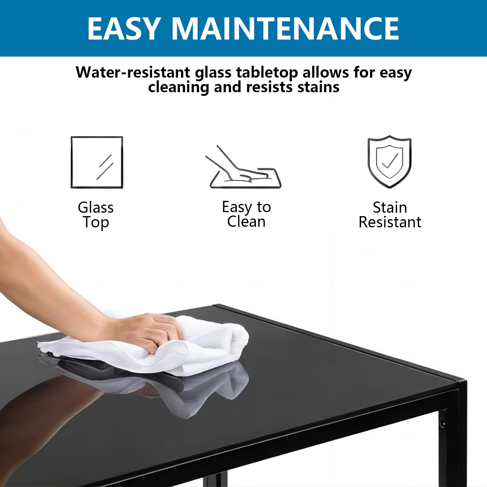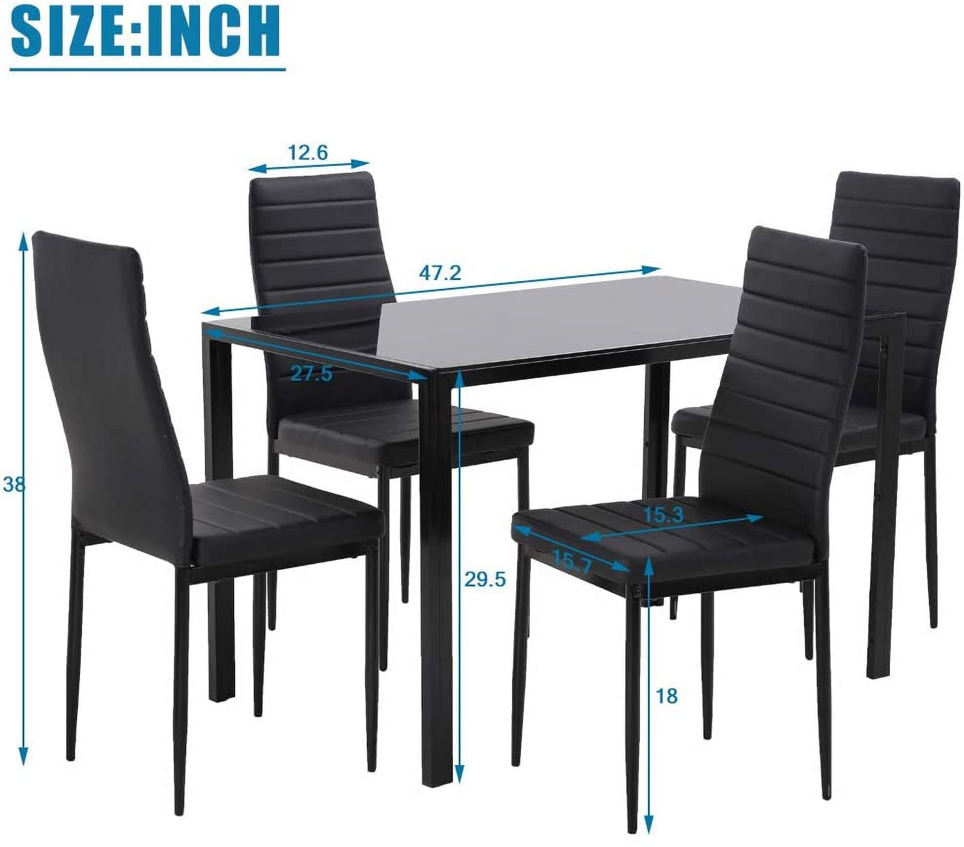 YouYeap 5 Piece Dining Table Set for 4 Glass Dining Table and 4 Chairs Black