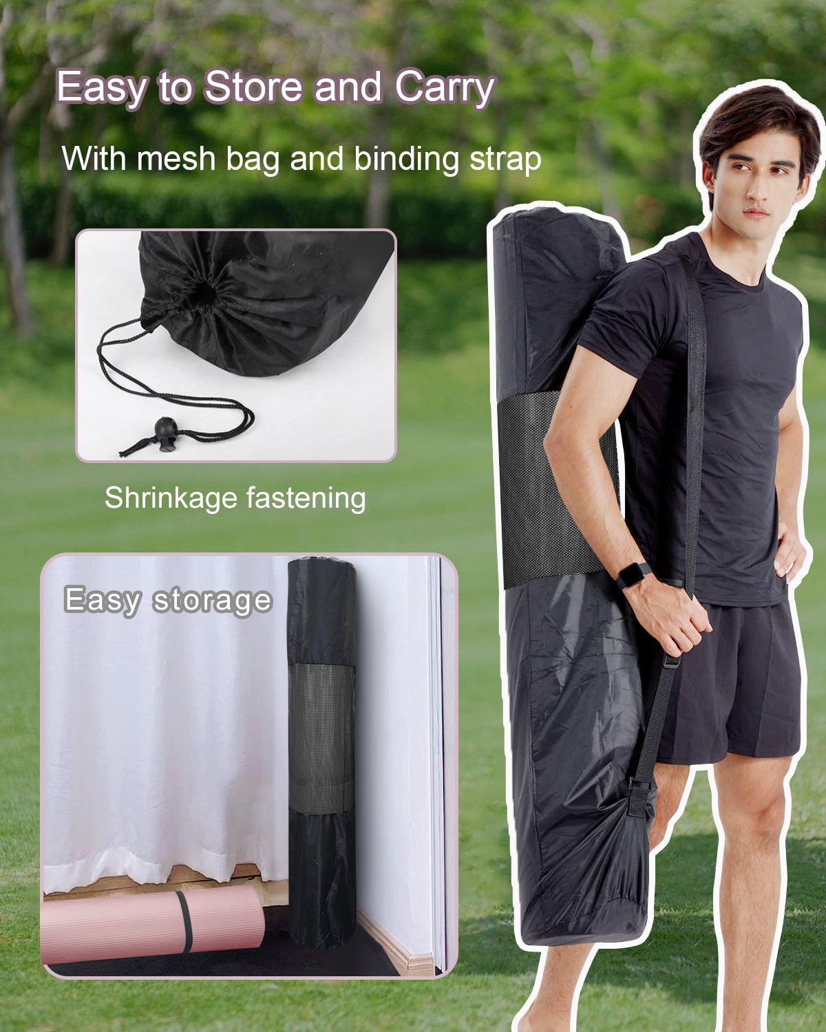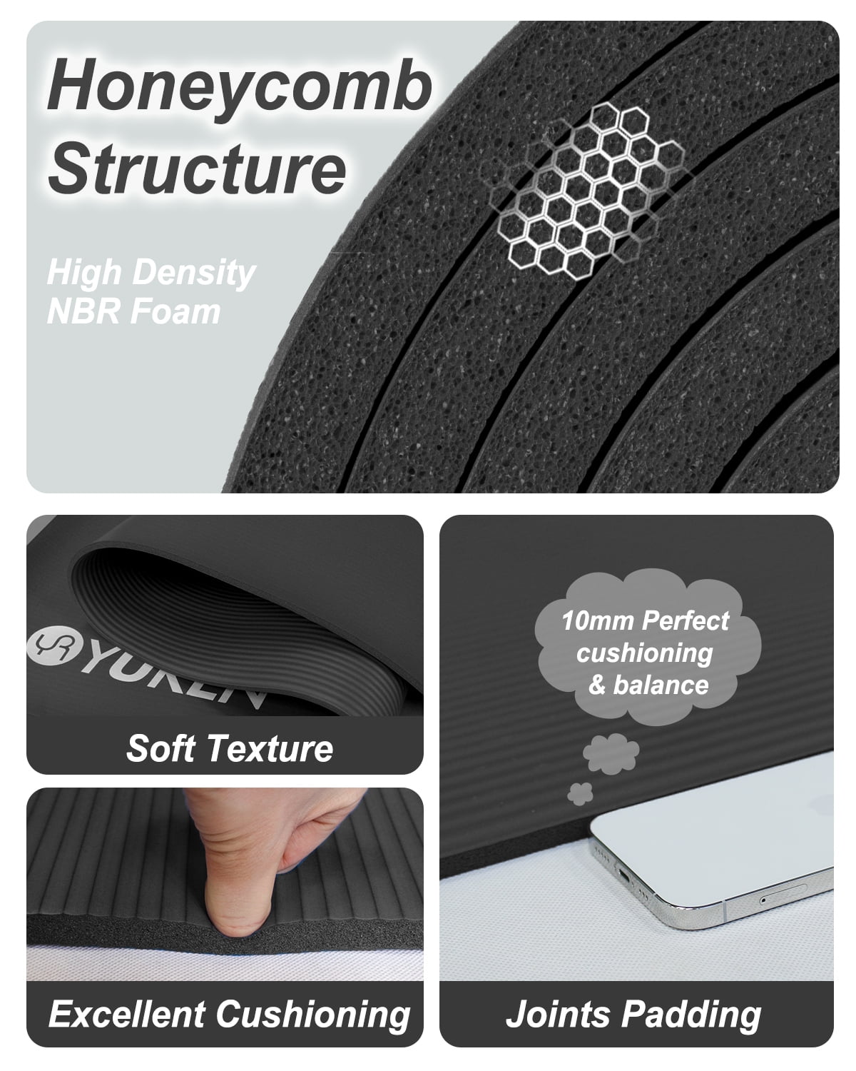 Large Yoga Mat: Big size in 78×51 inches. This fitness mat provides ample space for your workouts, allowing you to stretch and move freely during your exercises. Thick Exercise Mat: 10mm thick foam offers comfortable cushioning and soft support, protecting your joints and knees from the hard floor. NBR Material Mat: Made of high-density NBR material, YR gym mat is elastic, soft, and comfortable, great for rehabilitation exercises, pregnancy yoga/pilates, and fitness. Great for Yoga Beginners: With superior elasticity and restoring force, the soft mat cushions every touch and provides enough support for your training. NBR sports mats are more elastic and comfortable than TPE mats, thus better suited for yoga beginners. Anti-Slip Surface: The Horizontal texture design on the workout mat’s surface improves grip on the ground and helps maintain stability for your hands and feet. Portable Gym Mat: Includes a yoga mat bag and 2 elastic binding straps for convenient storage and portability to your workout class or gym. Versatile Floor Exercise Mat: This mat is ideal for a variety of exercises, including yoga, pilates, stretching, abs building, and more.