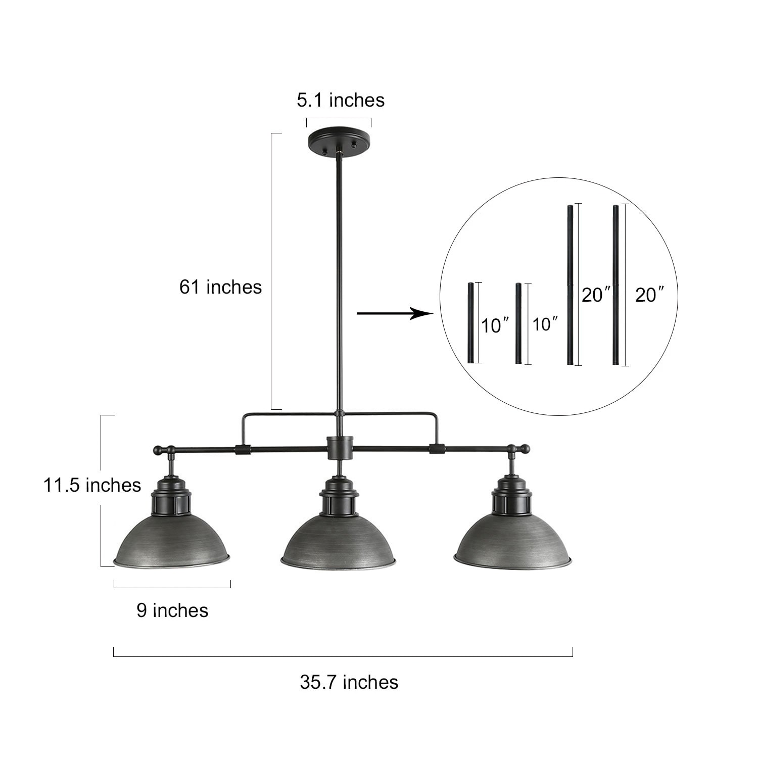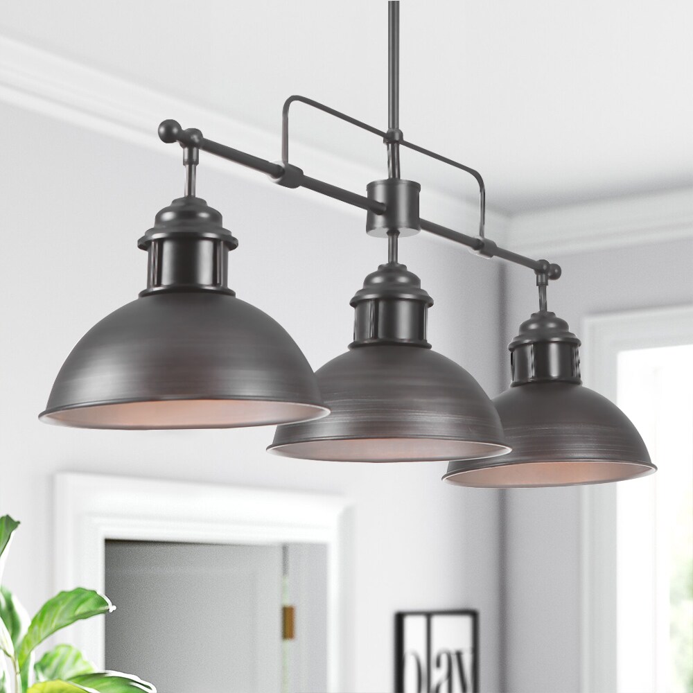 Elevate your kitchen island or dining area with our Yuna 3-Light Linear Pendant, designed to blend seamlessly with modern farmhouse, rustic, or industrial interiors. Crafted from high-quality metal with a sleek finish, this pendant light features a distinctive horizontal rod that supports three vintage-inspired dome shades, adding a touch of timeless elegance to any space. Its simple yet elegant design makes it a standout piece in any modern farmhouse, rustic kitchen, or industrial interior. Compatible with dimmer switches, this pendant light allows you to effortlessly adjust the lighting from bright daytime to cozy evening settings.