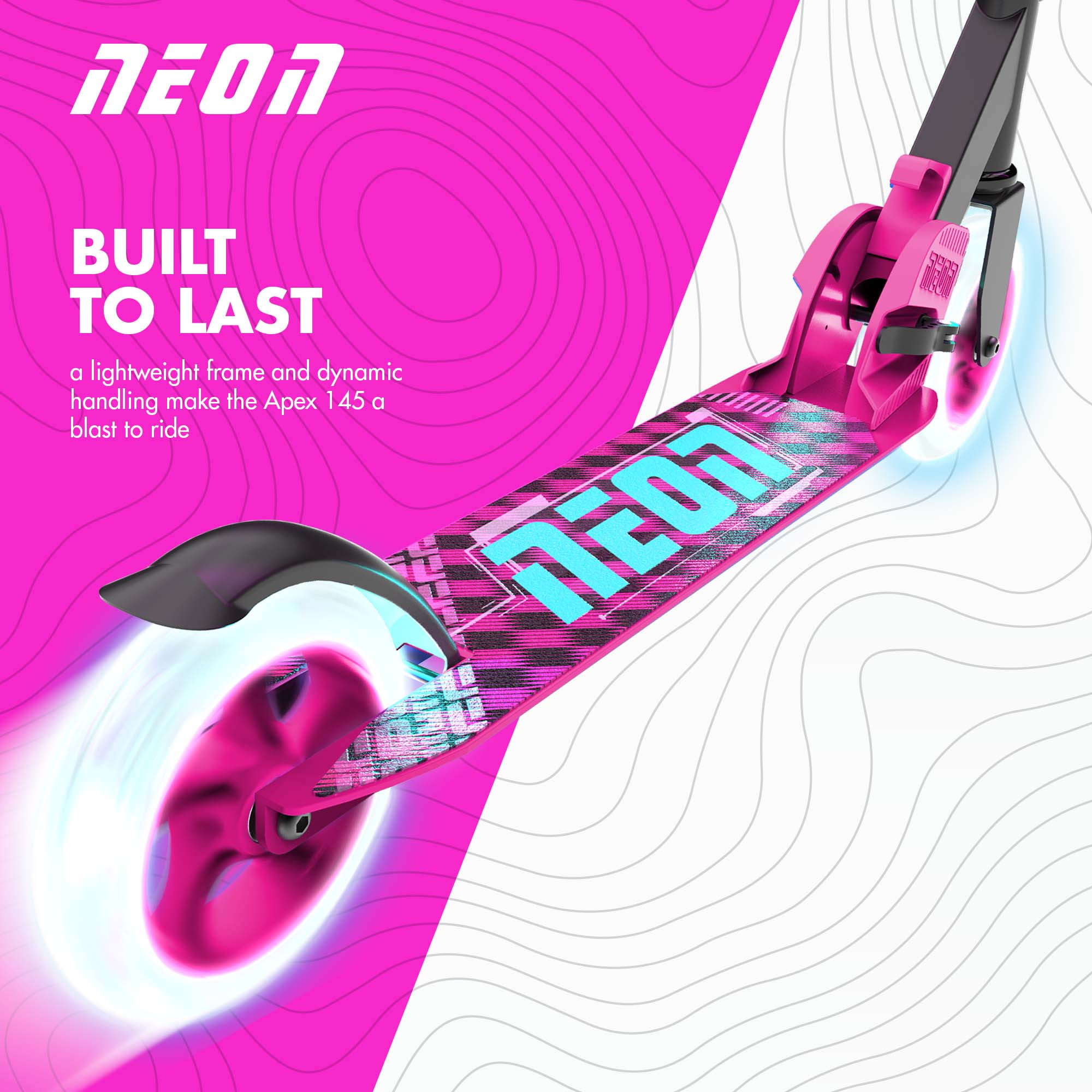 Yvolution Neon Kids Folding Kick Scooter Apex 145 – Pink, Boys & Girls Light up Wheels