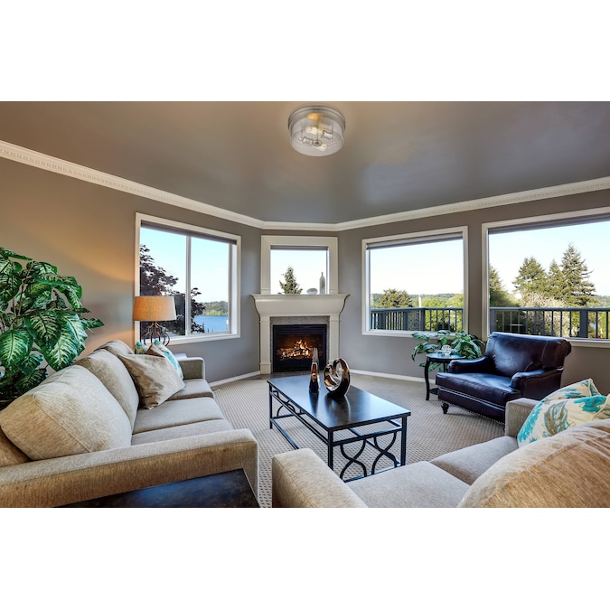 Classic design elements converge to offer a stylish source of illumination for a transitional or contemporary space. Art Deco inspiration forms a gorgeous brushed nickel finish steel base hosting a clear seedy glass shade, creating versatility and elegance in this two-light flush mount ceiling light.