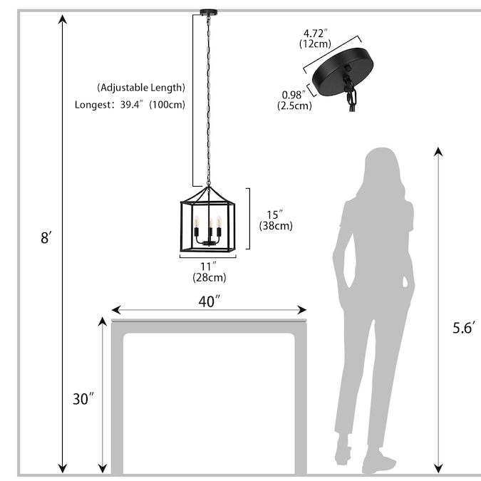 - Maximum chain is 39.4″ L which is suitable for flat or sloped ceiling.