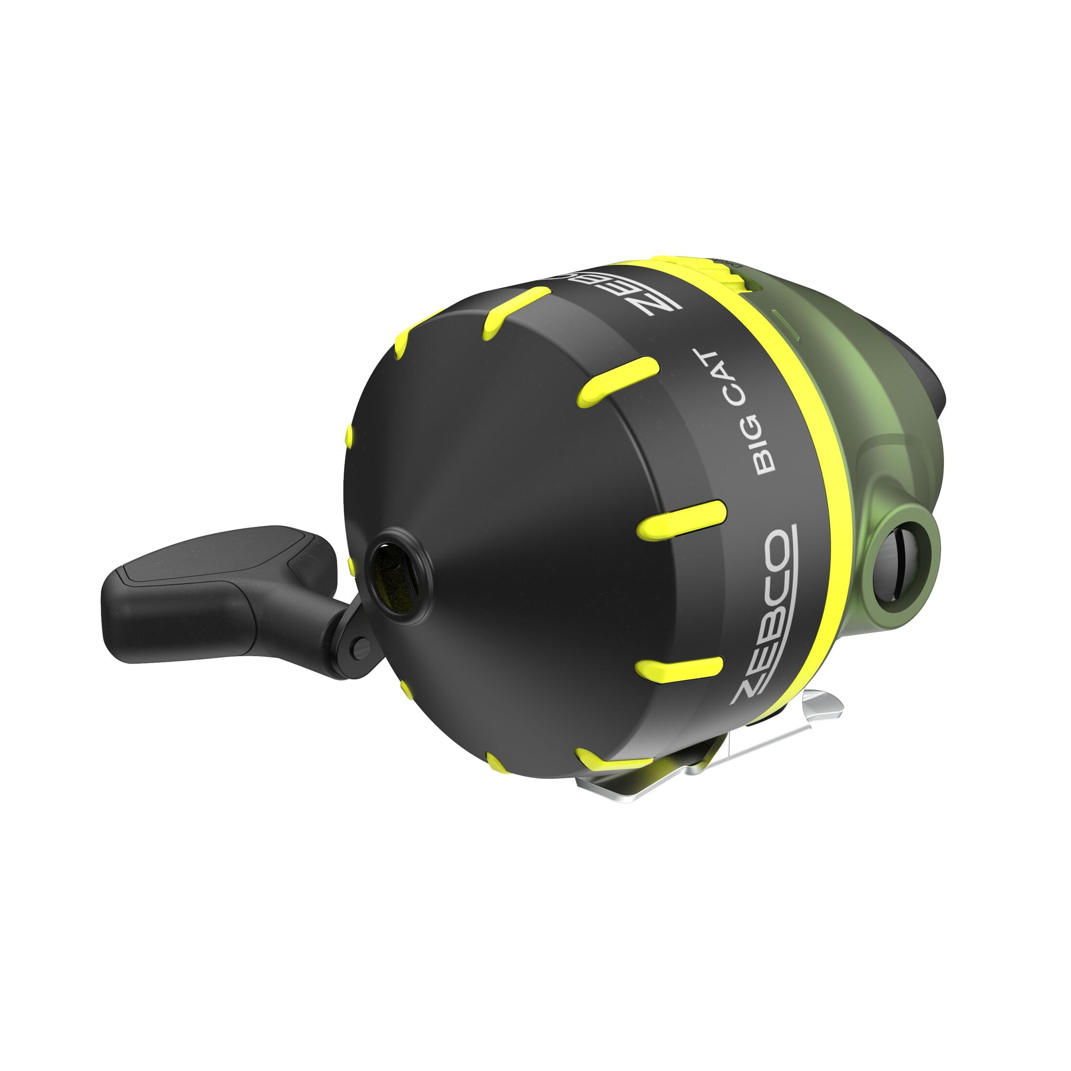 Zebcos Big Cat spincast combo is built for catching big fish. With features specifically designed for techniques used to catch catfish, Big Cat is the complete package for reeling in even the largest mud cats. Big Cat is equipped with specific features like a high-visibility rod tip, 25 lb hi-vis line, and Zebcos patented no-tangle design that make landing a catfish easier than ever. All-metal gears, a ceramic pick-up pin, a stainless-steel front cover, a dial-adjustable Magnum drag, and a durable fiberglass rod with double-footed stainless-steel guides deliver long-lasting dependability and toughness year after year.