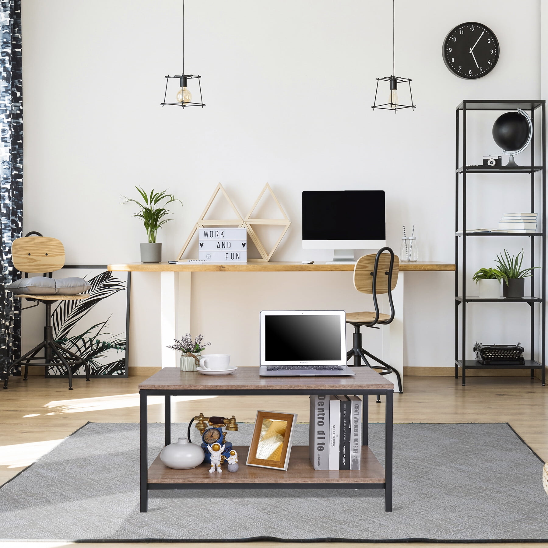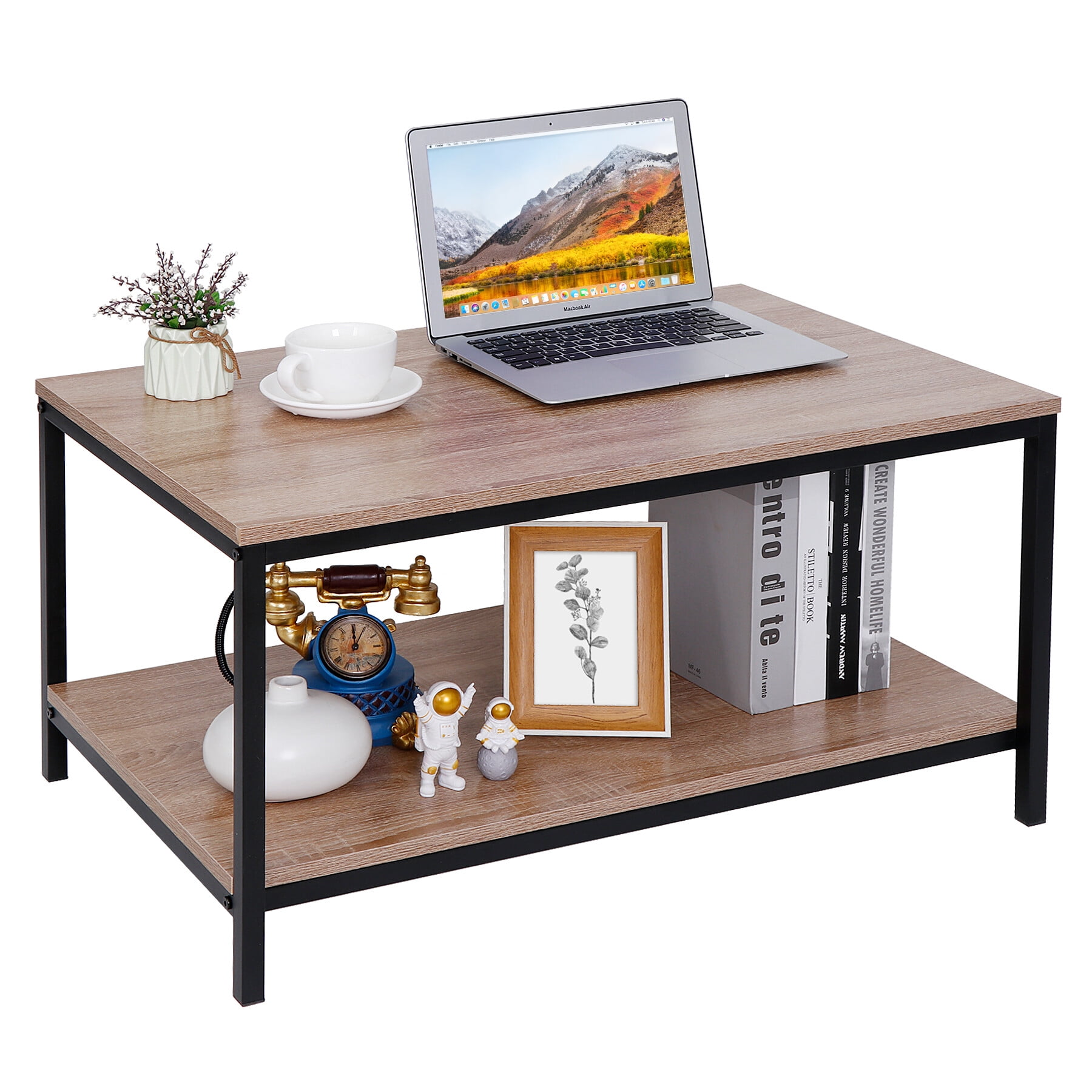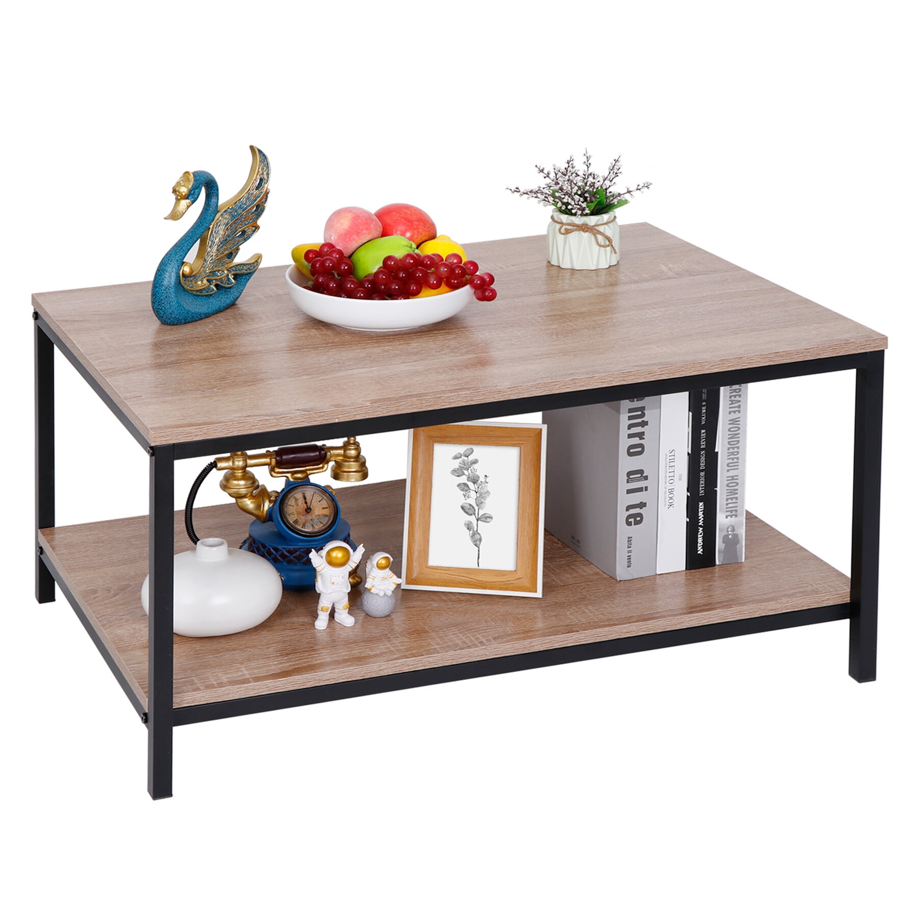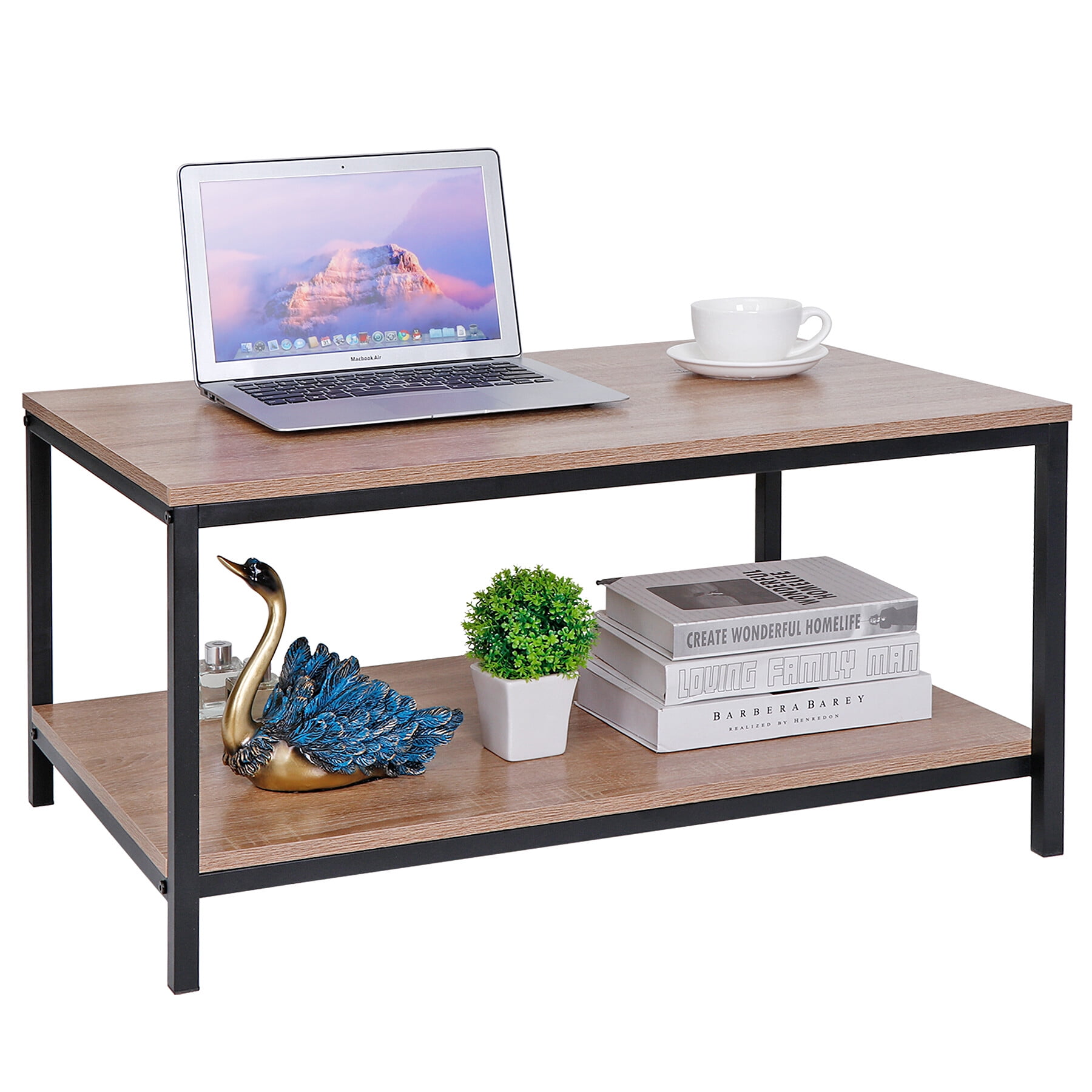 ZENY Rectangle Wood Coffee Table Metal Frame MDF Home Tea Table Desk Rustic Burlywood