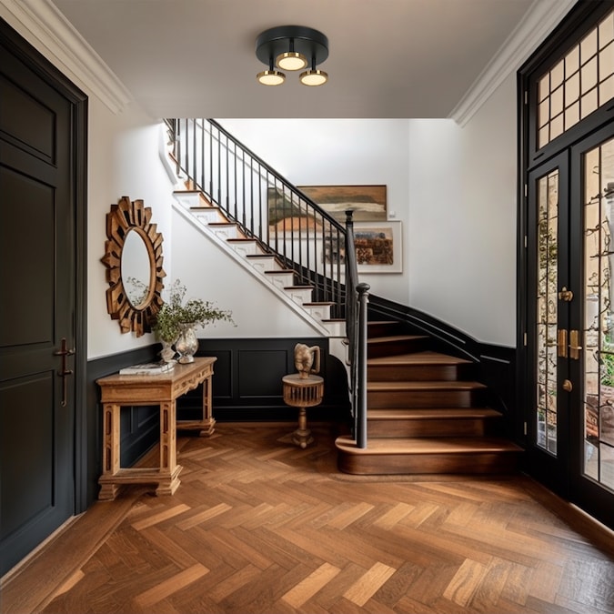 - DIY design: adjust the light head of this black and gold flush mount light to meet your ceiling light needs on a hallway, foyer, entryway or stairway