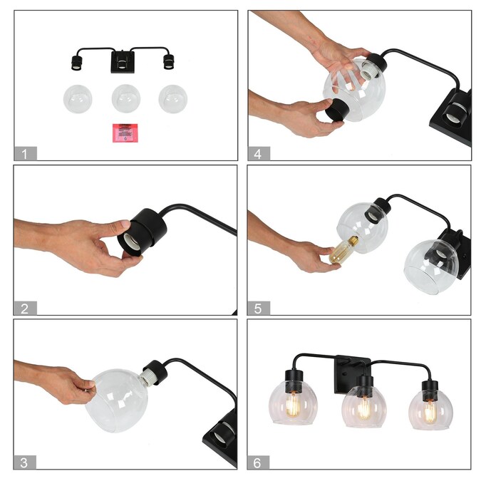 - Manufacturer Color/Finish: Matte Farmhouse Black Globe Glass Bathroom Sconce