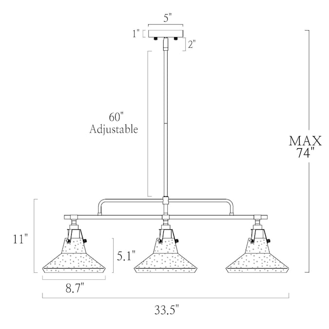 - The modern chandelier dimension: 33.5-in W x 8.7-in D x 11-in H