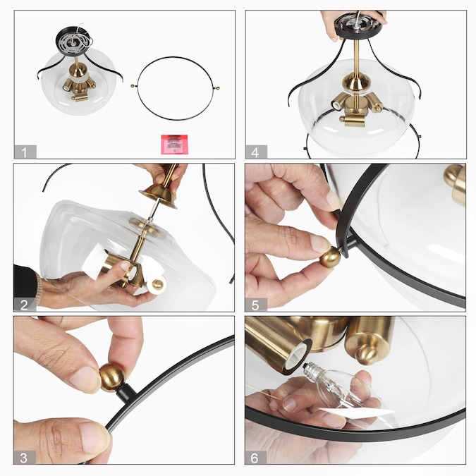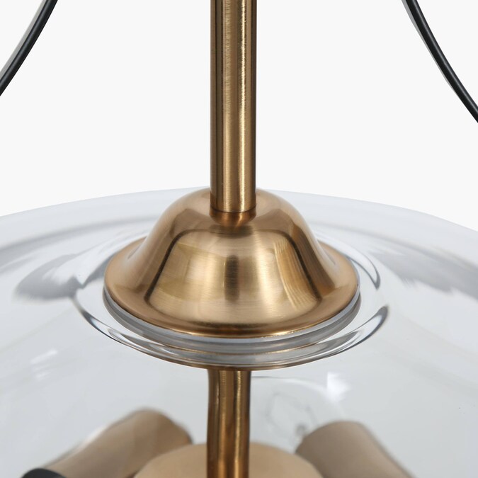 - Stylish Design: Features a sleek metal frame in matte black and plated brassy gold finish with a large clear glass shade.
