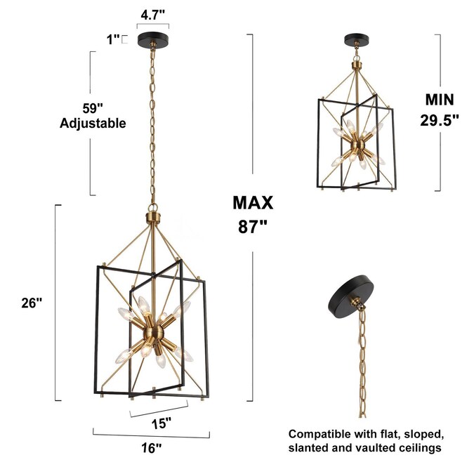 - Modern foyer light fixture size is 16-in W x 15-in D x 26-in H