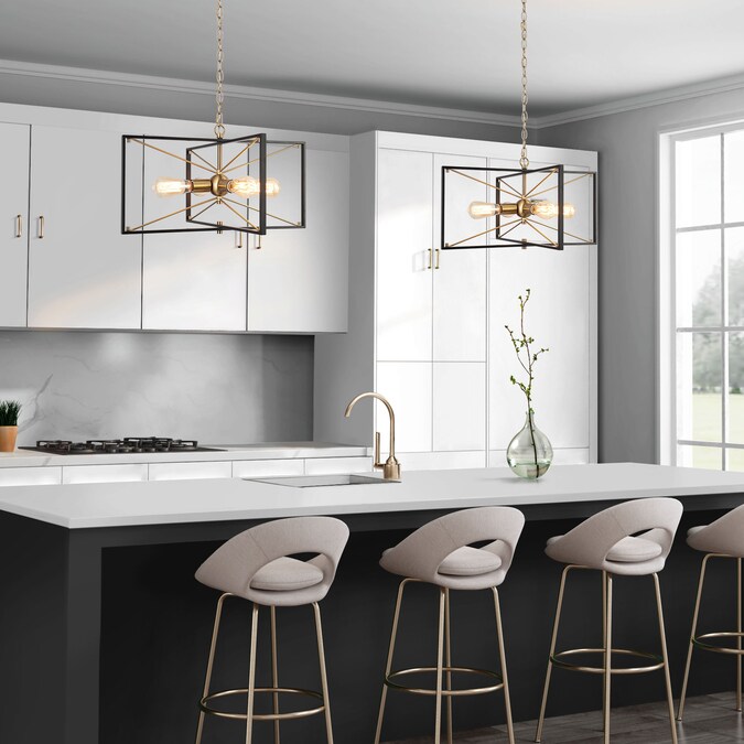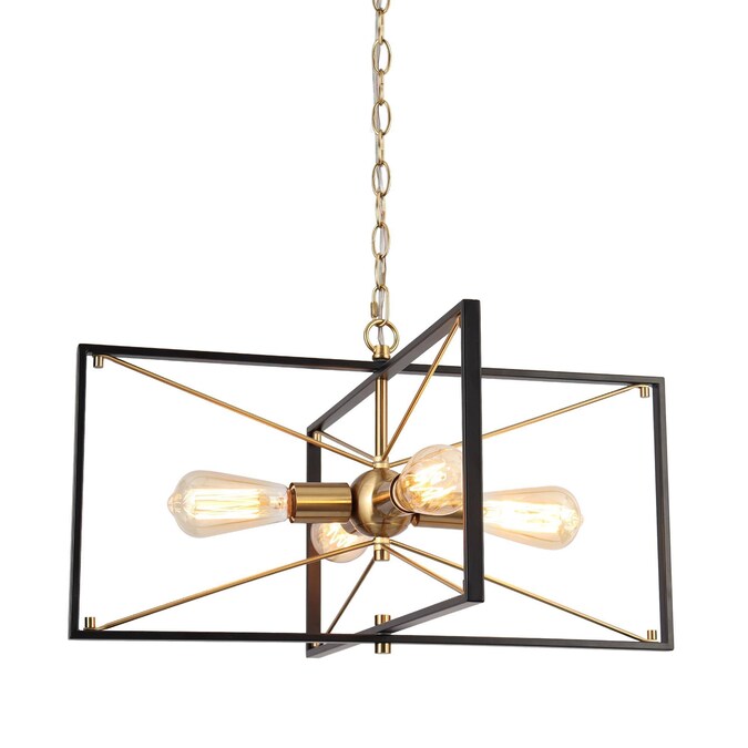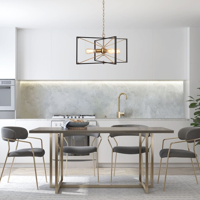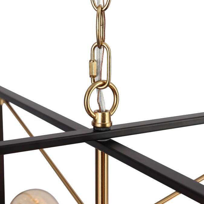 The fabulous combination of black and sparkling brass gold brings mystery and high-fashion feelings to your house decoration. Slender metal bars interlace to form square/rectangular frames, forming a unique geometric lamp body, ideal for any modern industrial and transitional style. Without glass shades, the exposed bulbs (not included) will provide very bright lighting and are easy to replace. With a widely adjustable gold hanging chain, the geometric modern chandelier allows you to install it as a stylish hanging light or a semi-flush mount ceiling light, perfect for your bedroom, kitchen island, living room, hallway, and dining room.