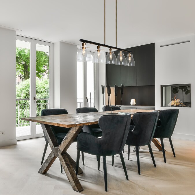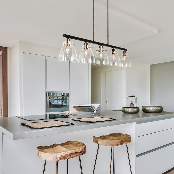 - This 5-light chandelier light makes a statement in your kitchen or dining room with its crystal clear glass accents and linear design.