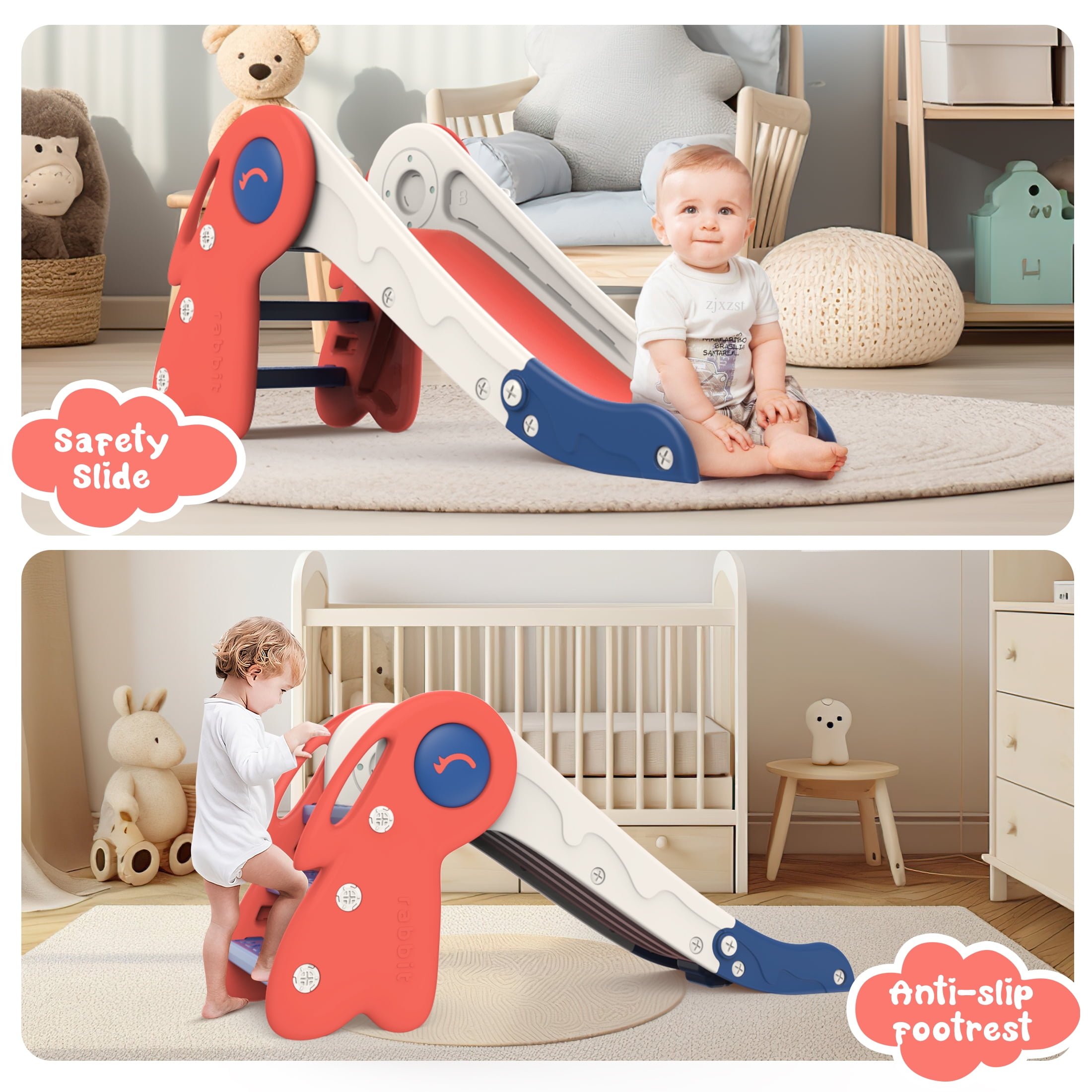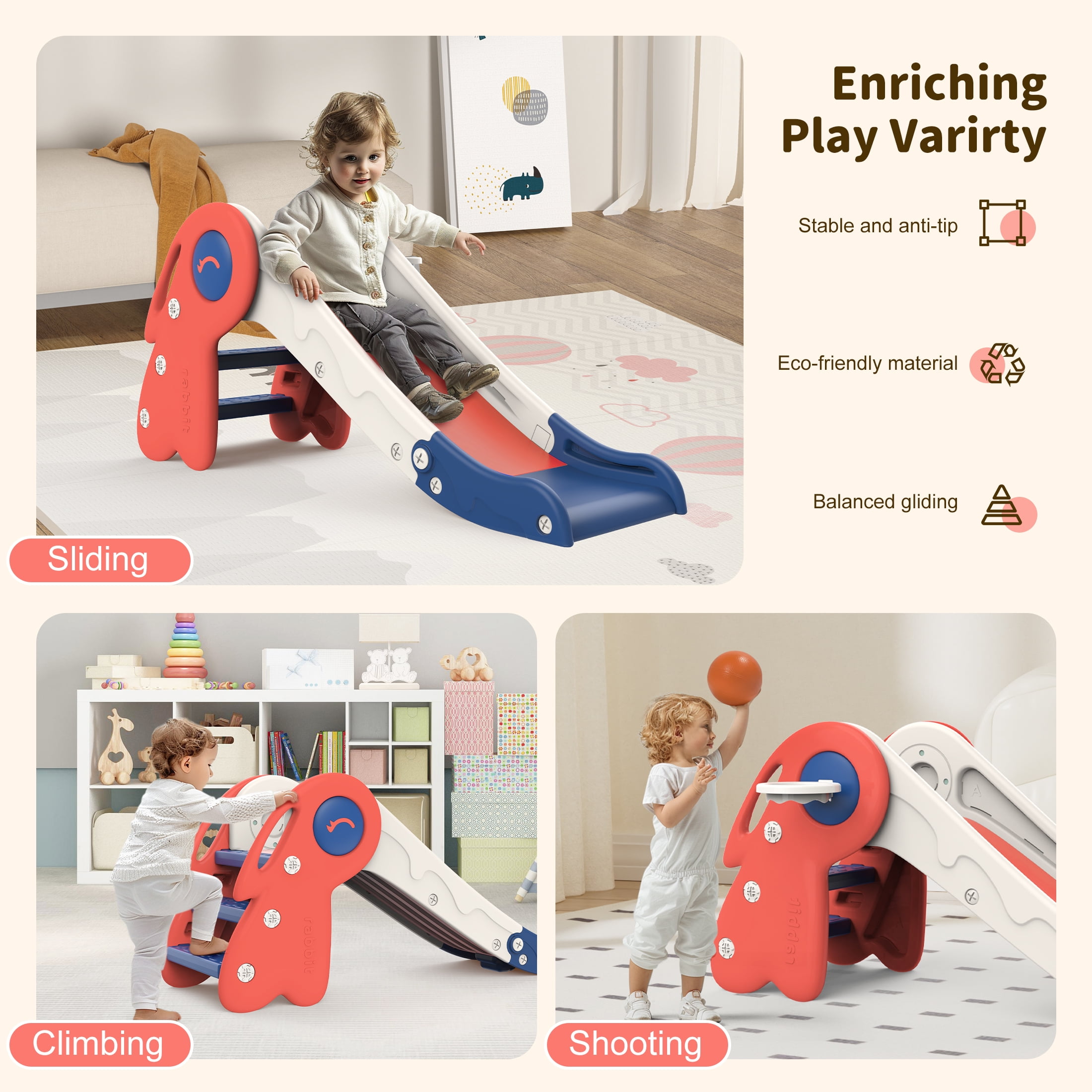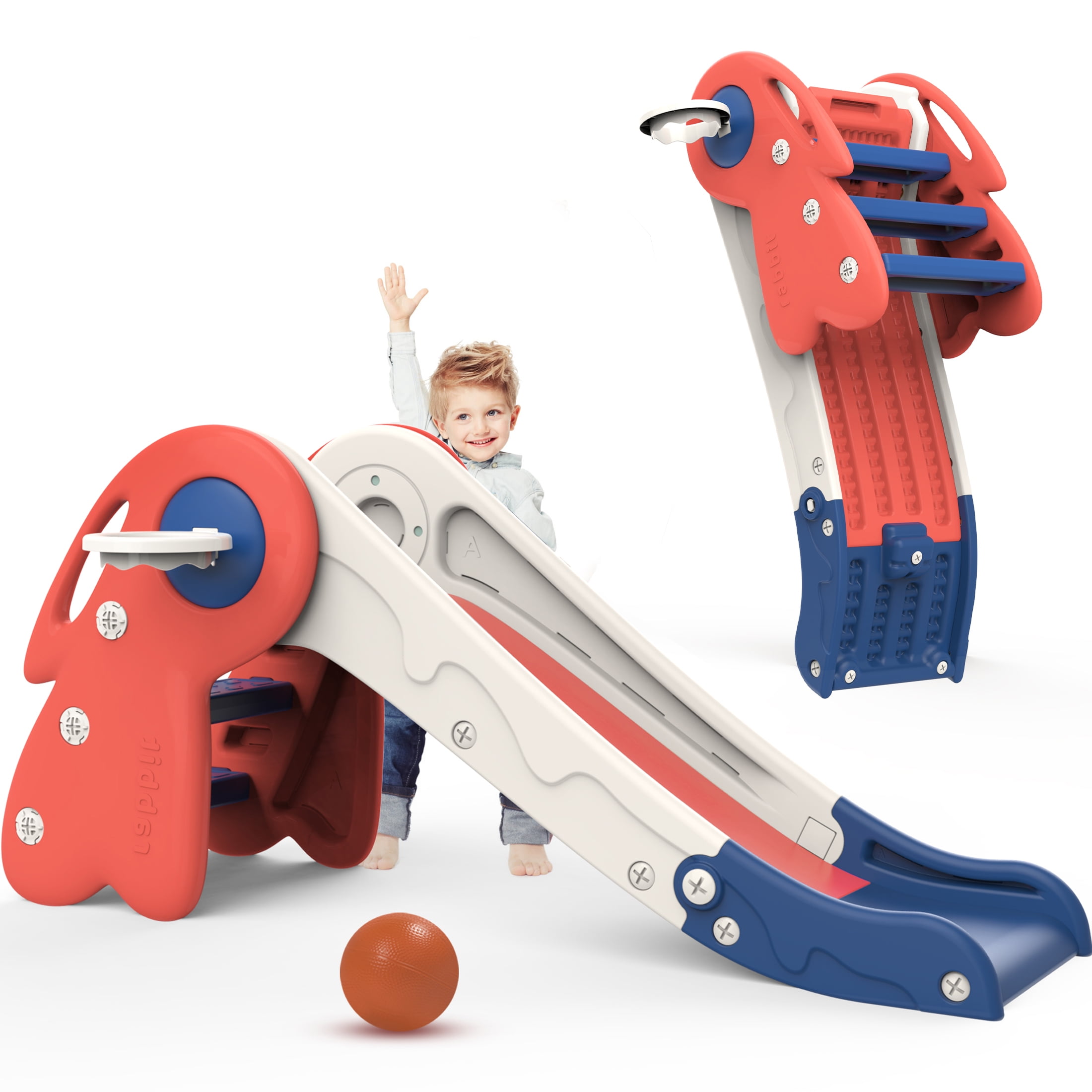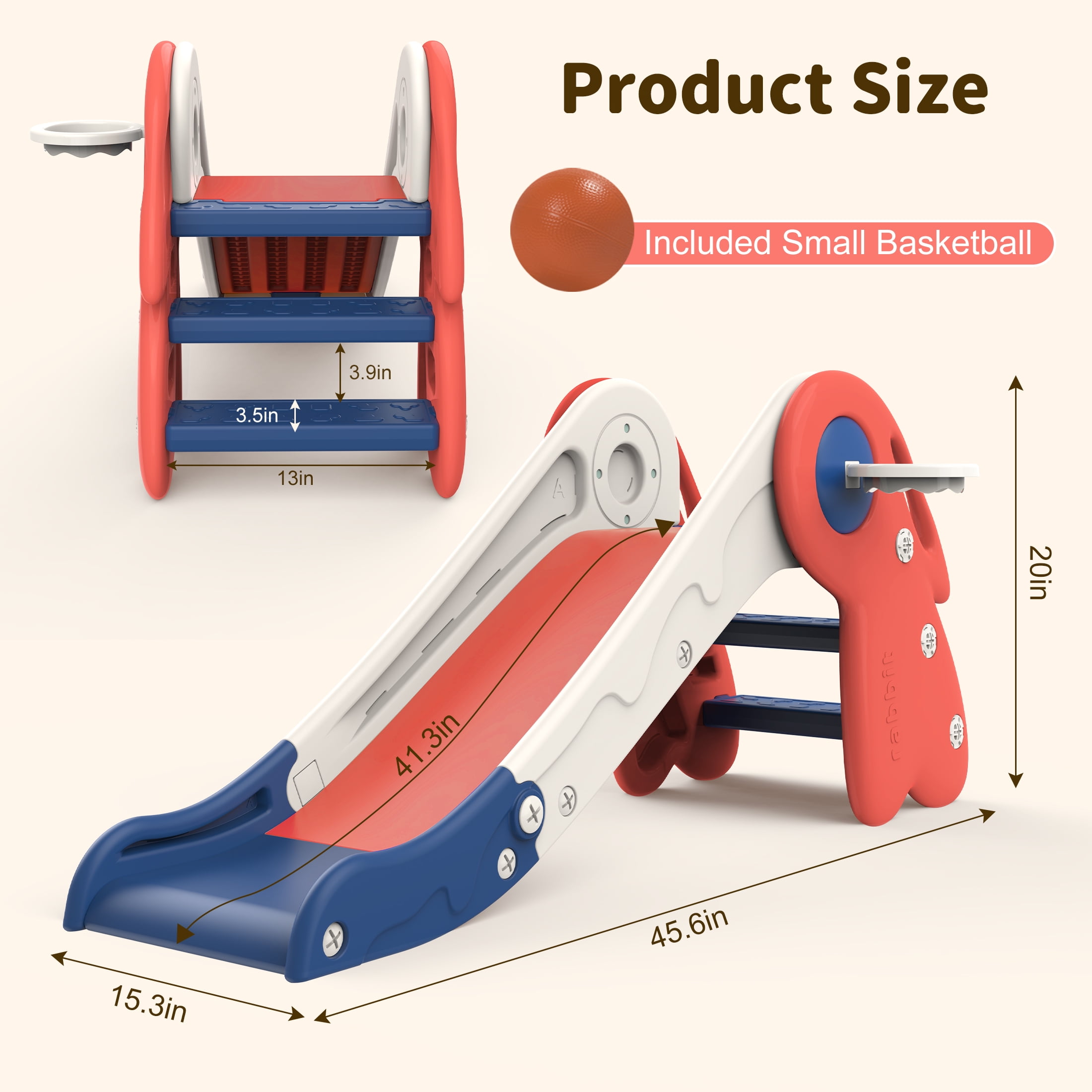 Zifadola 2 in 1 Slides for Kids, Toddler Slide Indoor or Outdoor Toddler Climber Slide Playset with Basketball Hoop, Red