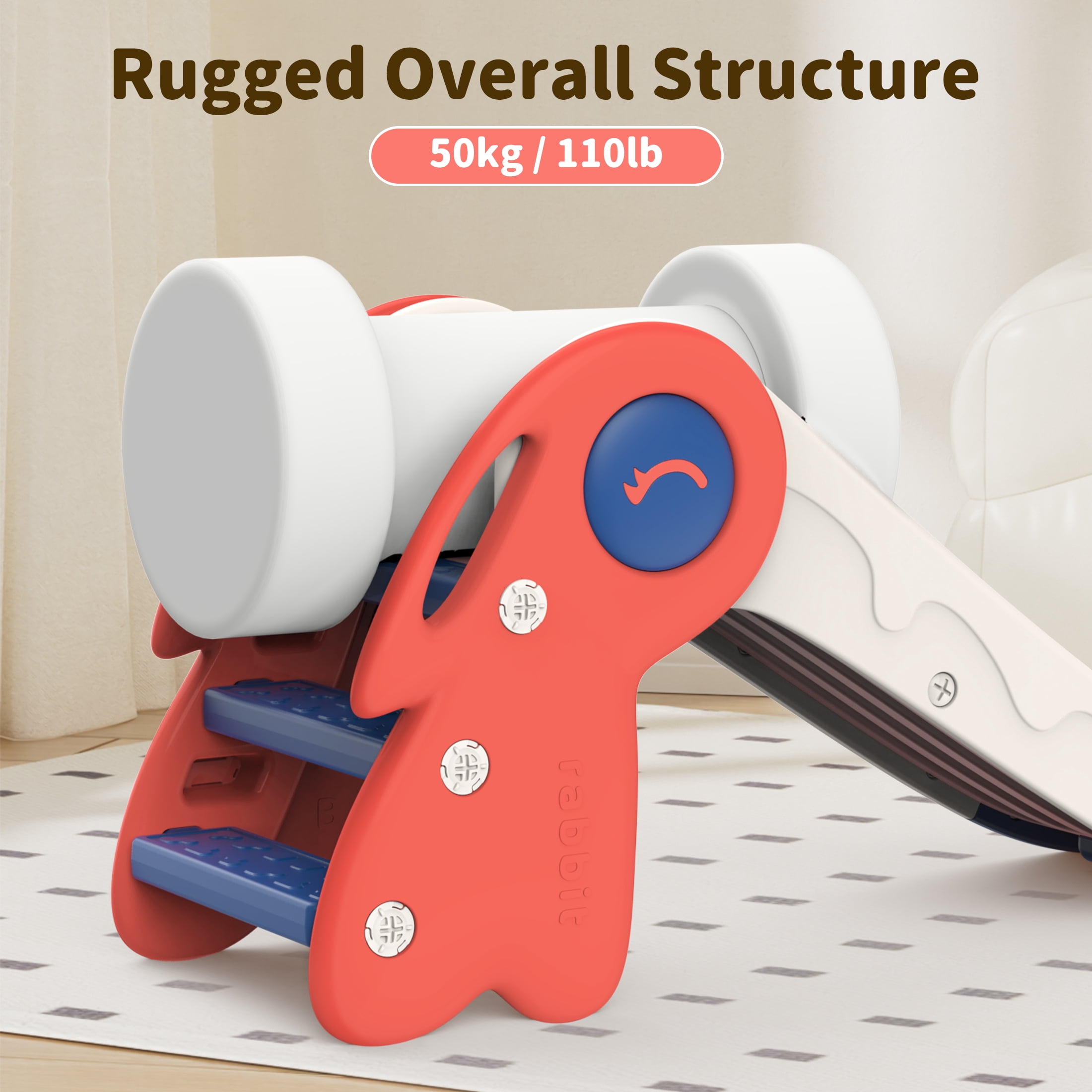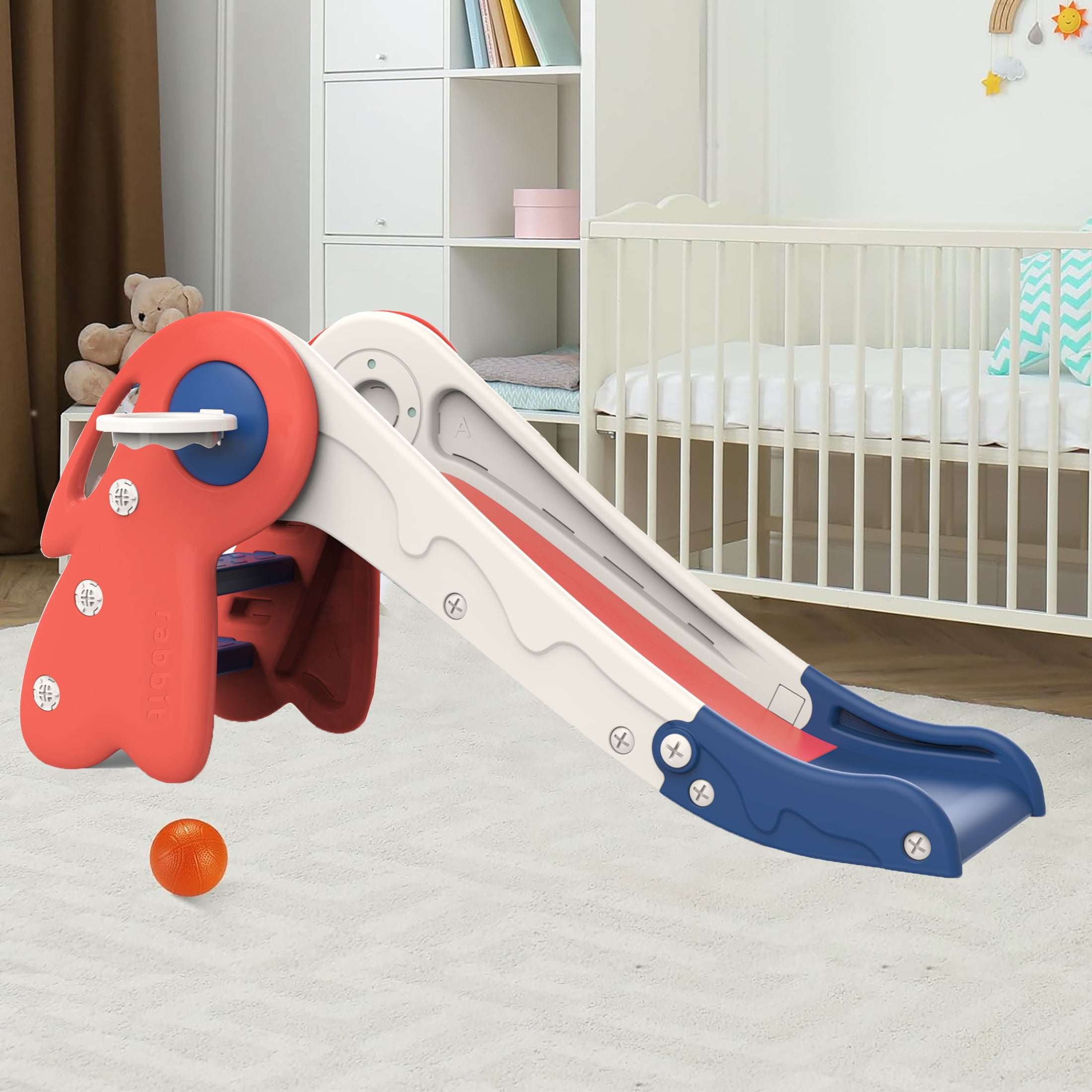 ✅Premium Material: This 3-in-1 Freestanding Kids Slide will provide your little ones with hours of active play fun. Made of environmentally friendly and durable HDPE it is not easy to wear and deform allowing children to play without worry. The sturdy and stable structure gives it a strong load-bearing capacity. Not easy to break deformation, smooth surface without burrs, reduces bacterial growth, withstand various weather tests. The entire slide is designed with rounded corners to prevent children from being injured when playing. ✅3-IN-1 Basketball Hoop and Slide: This 3-in-1 slide for kids with a widened slide, a widened climbing ladder, and a basketball hoop and small basketball, A slide with a basketball hoop and a small basketball provides another form of entertainment for children, as it exercises children’s motor skills and hand-eye coordination, promoting muscle development. The slide with climbing ladder and slide features easy to climb steps and a smooth, wide slide for children to enjoy climbing and sliding, satisfying children’s curiosity. ✅Kid-Friendly Design: The bright colors appearance can attract children’s attention at once. With a basket hoop for children to shoot it increases the fun of play and develops the child’s athletic ability. Raised armrest design ensures your child’s safety during climbing and sliding. Smooth slide way and burr-free round corners protect your child’s delicate skin. ✅Easy Folding and Installation: Zifadola toddler slide is designed to be folded up and stored when not in use, reducing floor space. It’s compact in structure and it’s lightweight and portable. You can easily fold it up and move it either indoor or outdoor. This Equipped with installation package, no cumbersome tools, easy installation. ✅Safety Slide Design: The slide with a start zone to initiate acceleration for the slide, a middle decelerate zone to slow the flow of the slide and finally buffer stop zone to provide a complete stop. This toddler slide can support up to 110 pounds thanks to high-quality material, which is plenty for a child over 18 months.