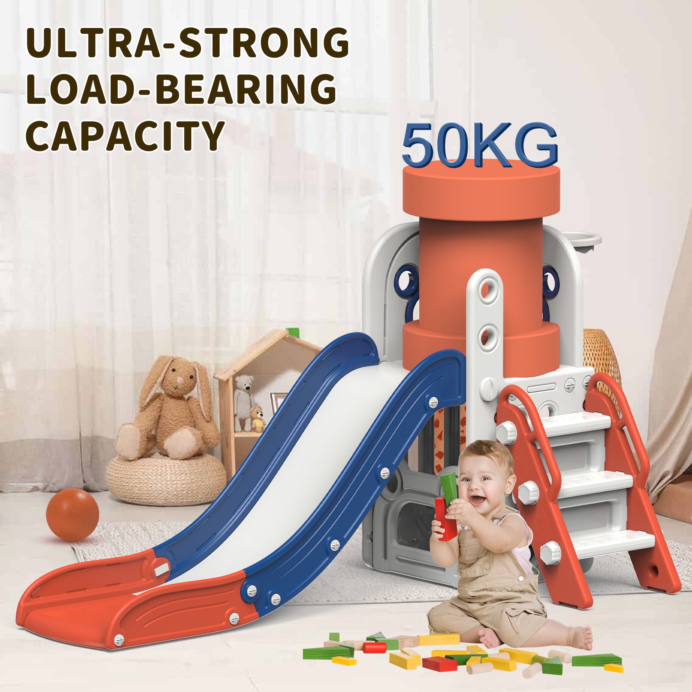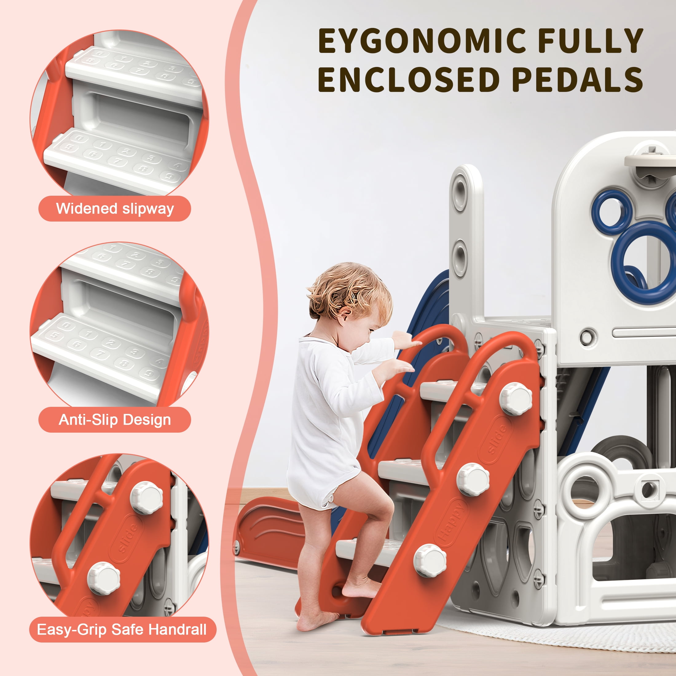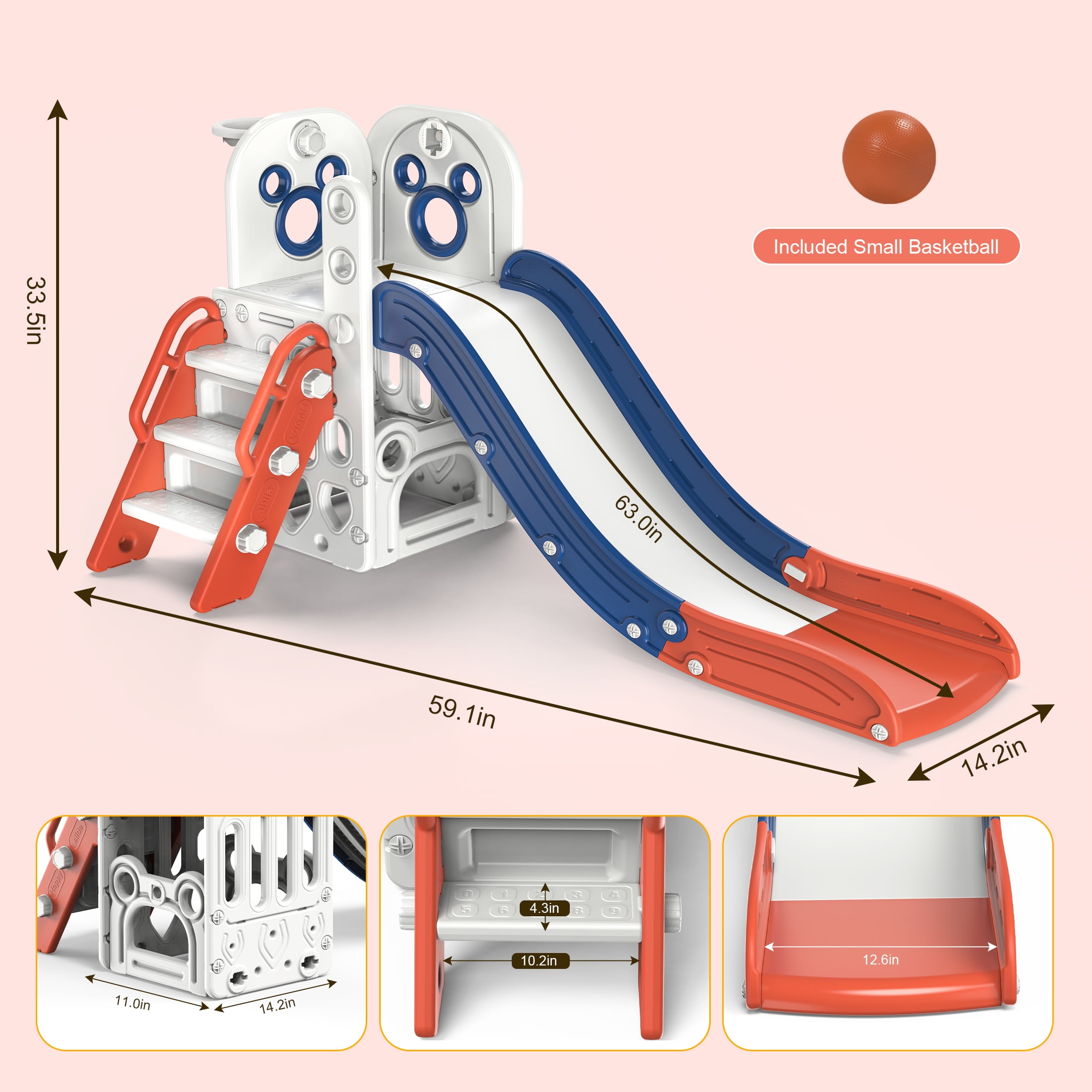 Zifadola Sturdy Kids Slide, 4-in-1 Toddler Slide and Climber Playset with Basketball, Orange