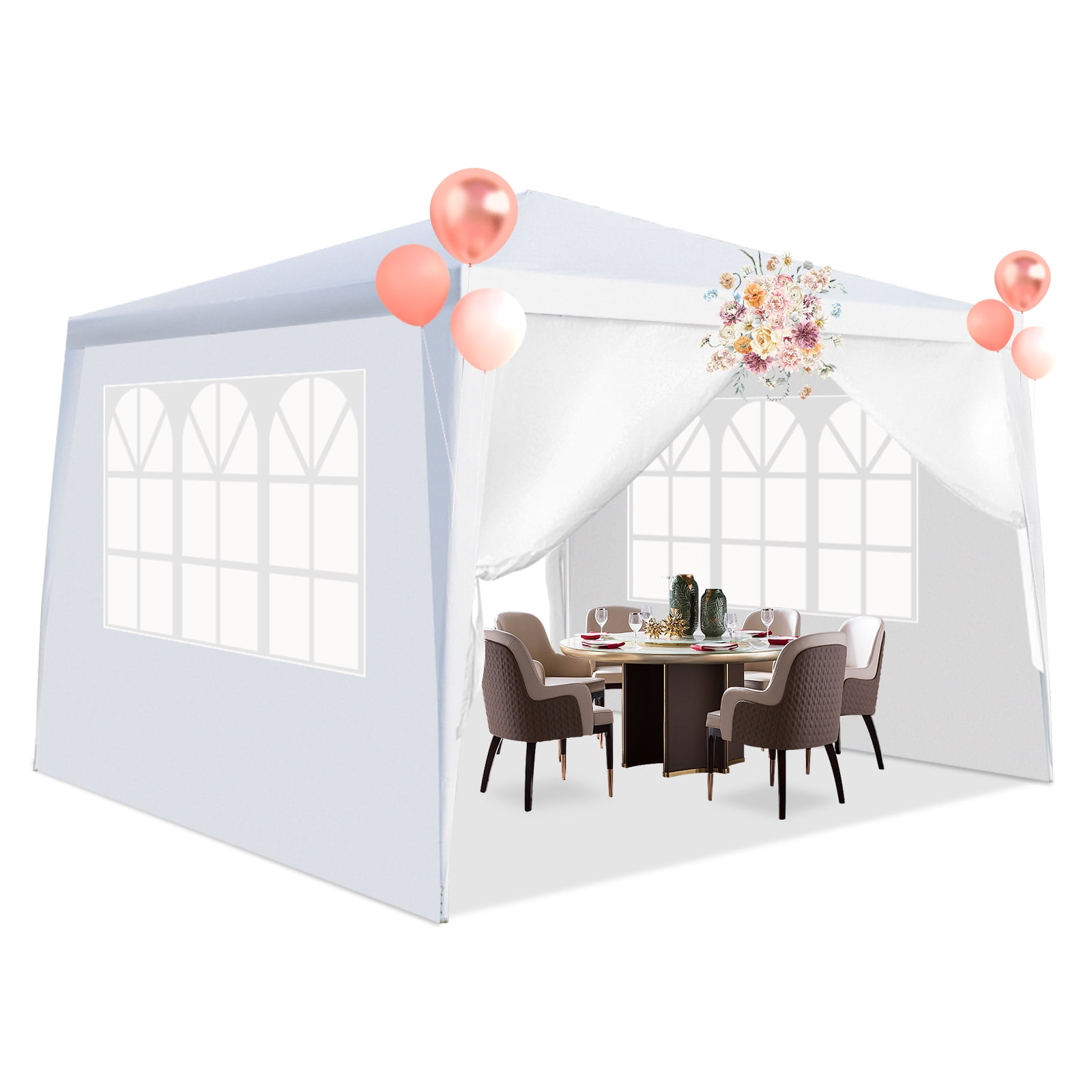 Note:This product is designed for Garden and Leisure events in good weather. We do not guarantee that it can work in windy or rainy days. Ideal for recreational and commercial use, wedding, birthday party, graduation party, flea markets, car tent, family parties, picnics, sports events, outdoor vendors, craft fairs, job sites and camping trips, etc.(Tent broken or parts broken accidentally, please contact us to get parts replacement!) Includes Ropes and Ground Stakes for added stability and installation manual included. Great for Commercial use / Parties / Backyard events, etc Overall Dimension: 10 X 10 Ft (3m*3m) 3 x Walls w/Windows & 1 x zip-up doorway. Made of Rust & Corrosion resistant powder coated steel framework. Easy removal and assembly, installation manual included Multifunctional Outdoor Use: This outdoor canopy event tent features various of outdoor use, it is perfect for outdoor patio leisure events, commercial business, outdoor parties, birthday, sporting events, picnics, BBQ, carport and so on Waterproof Material: This party tent can hold about 10 people, durable water-resistant polyethylene cover blocks up to 90% of the sun UV rays. Quick and easy setup will have you enjoying shelter or shade in minutes