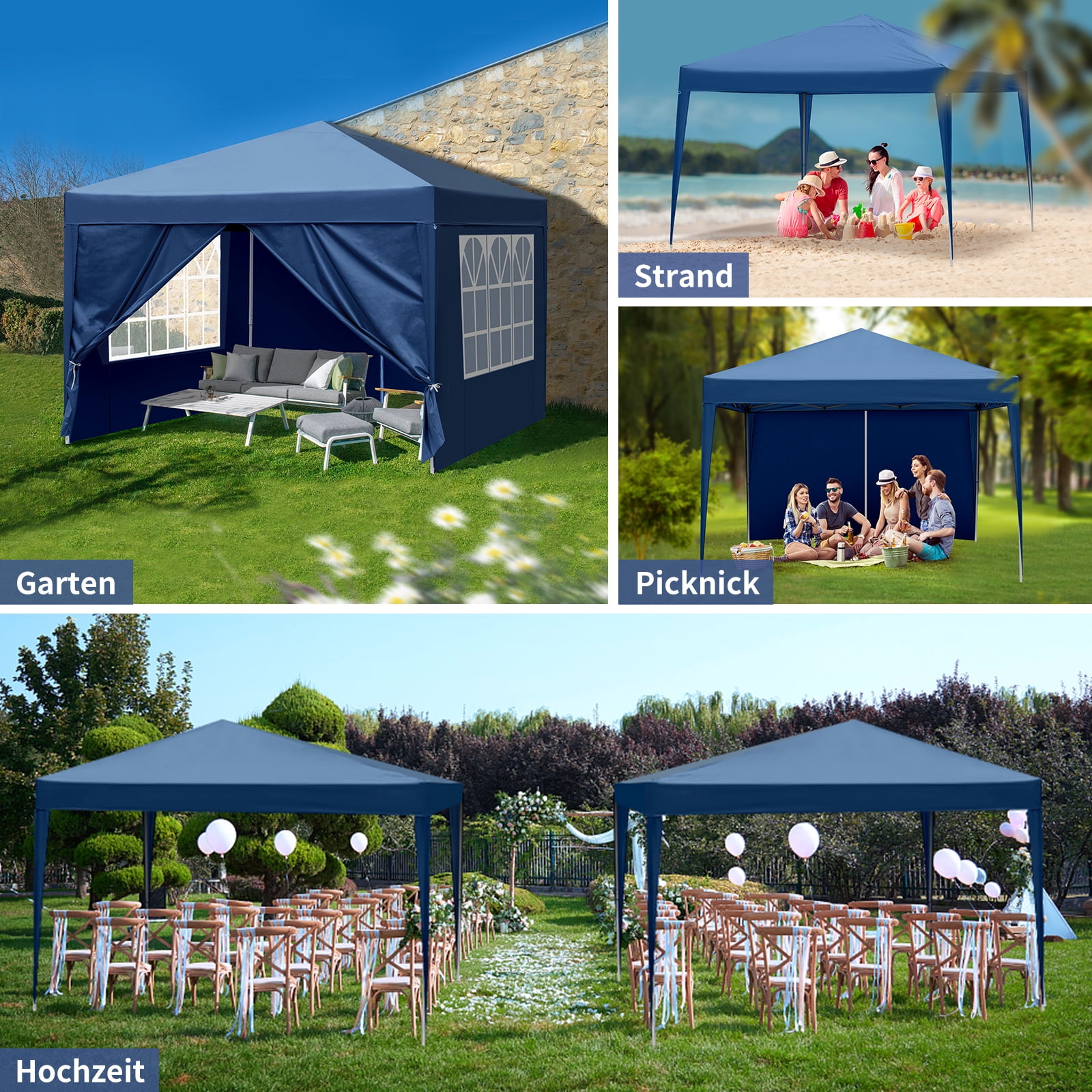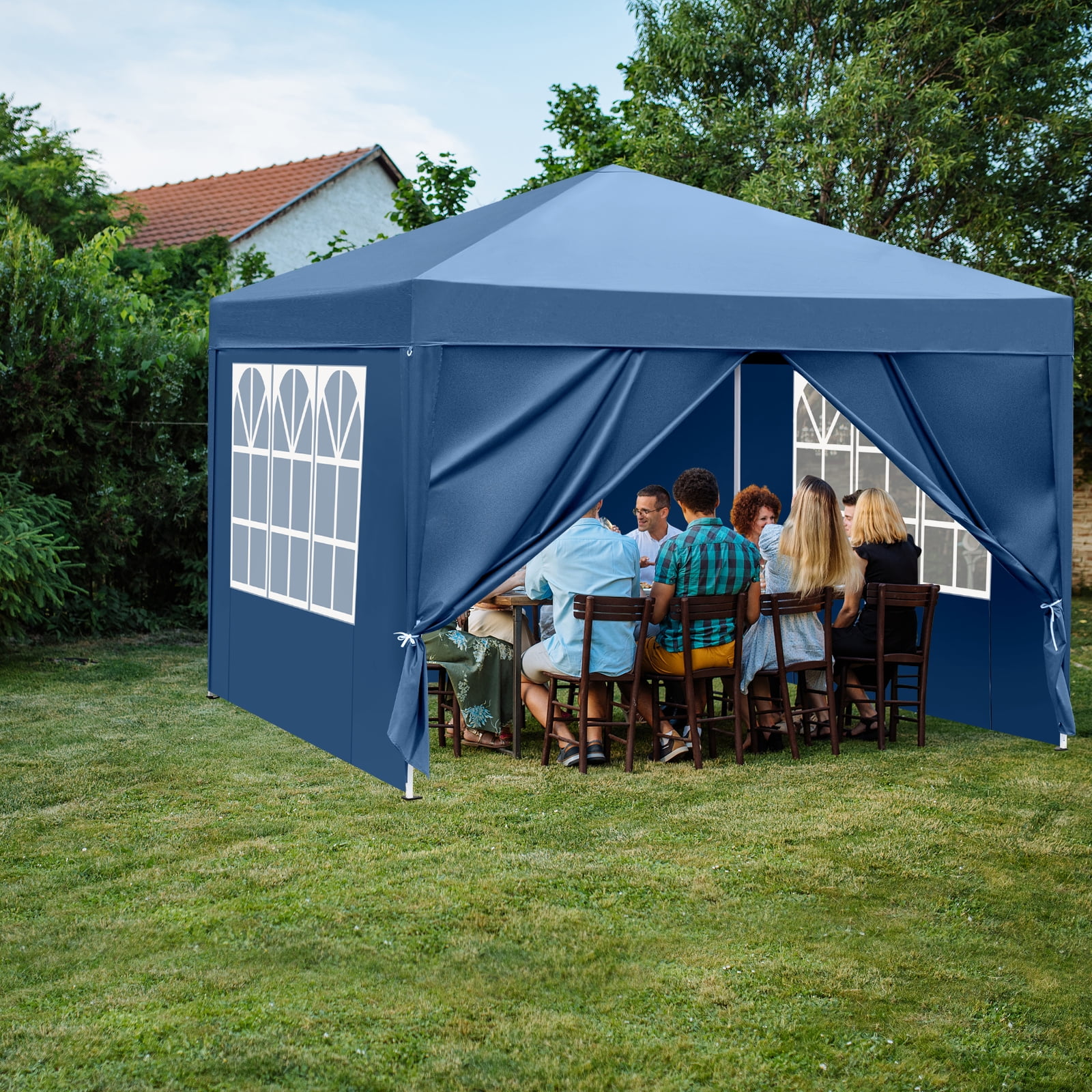 Zimtown 10′ x 10′ Folding Tent Gazebo Wedding Party Canopy Pop Up Instant Shelter W/ Two Doors & Two Windows and Carry Bag Blue