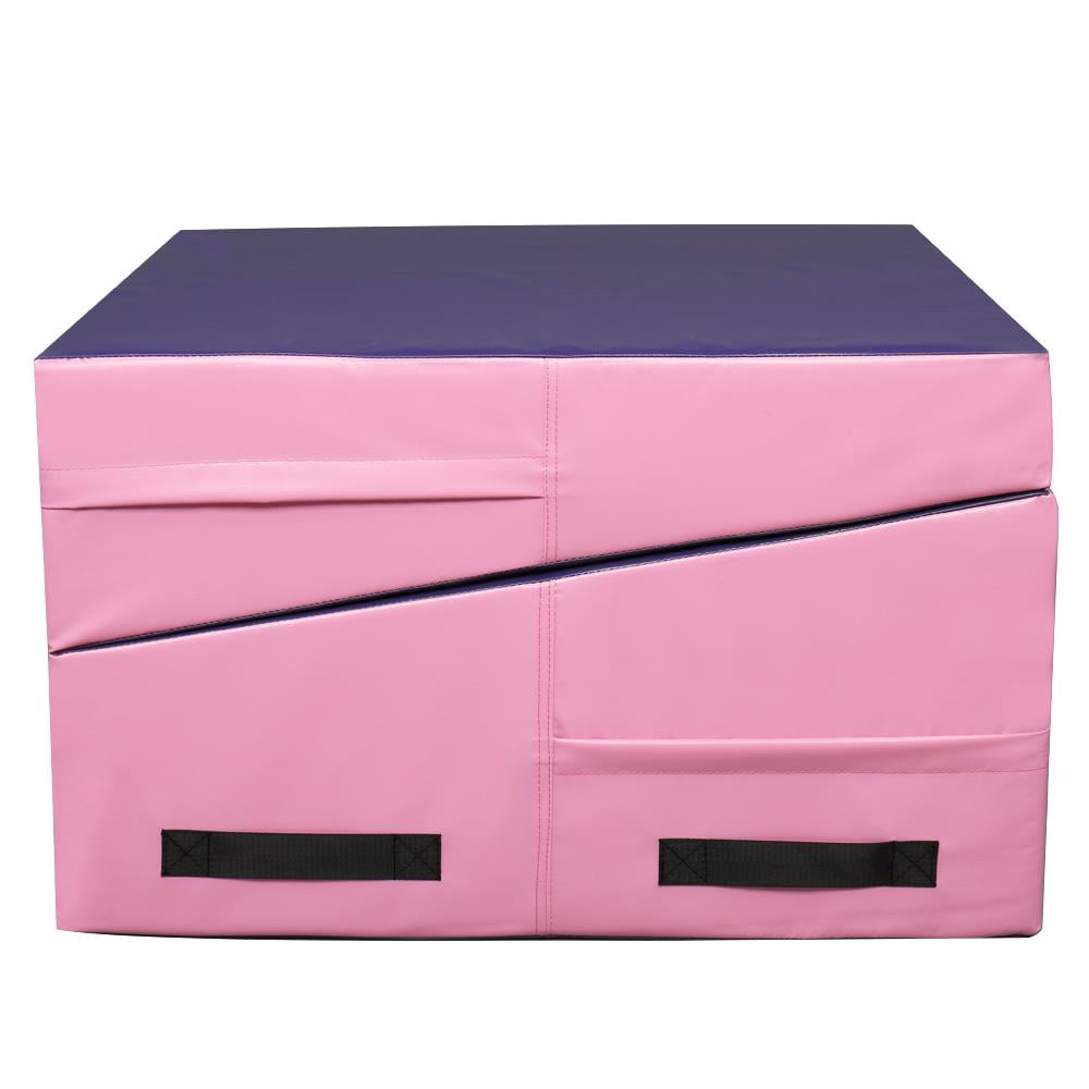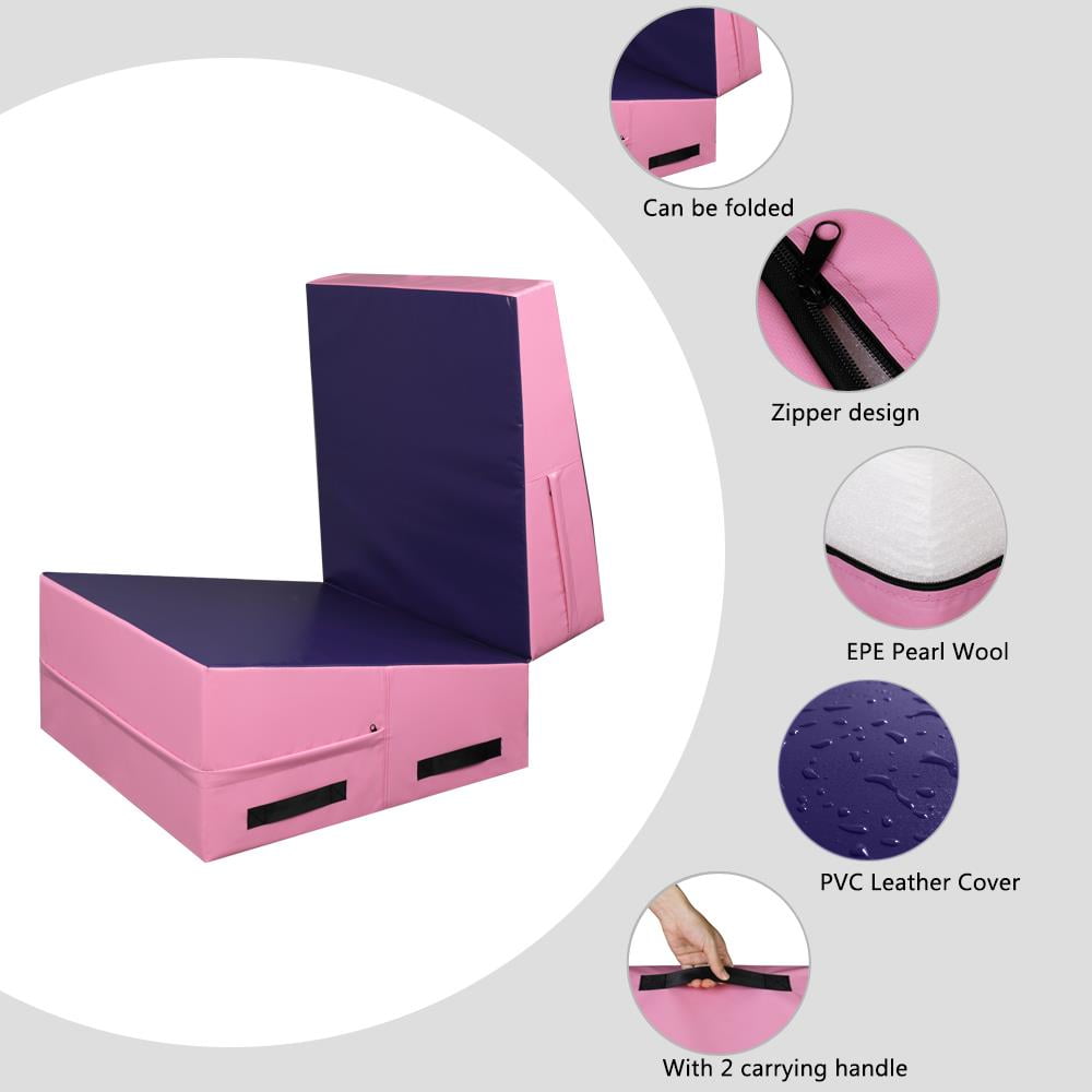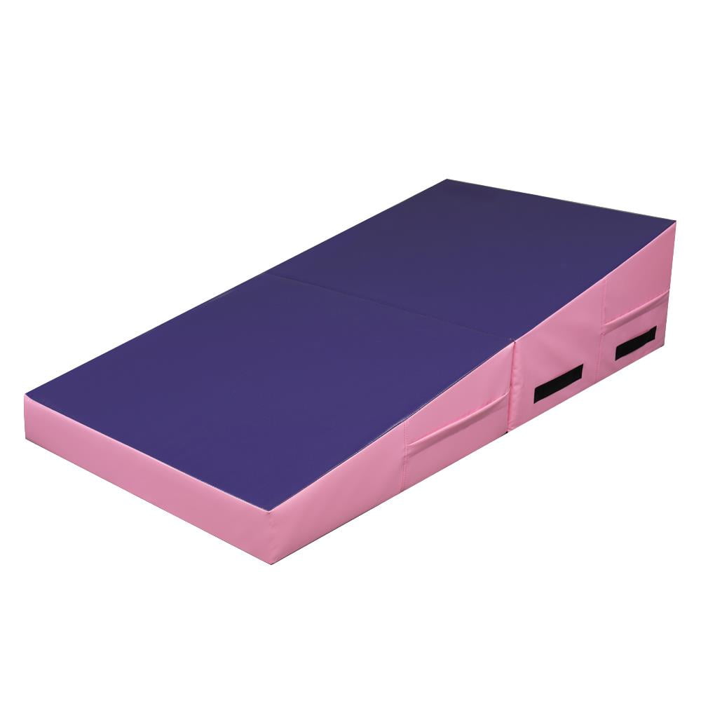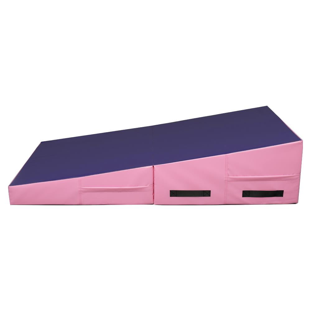Zimtown 22 Density EPE Foam 48” x 24” Purple & Pink Exercise Mat with 1 x Gymnastic Mat Wear-resistant, waterproof PU leather cover Constructed of firm EPE foam for durability Zip-closed design for easy cleanup Strategic incline designed for gymnastics or cheer training Suitable incline angle for comfortable exercise