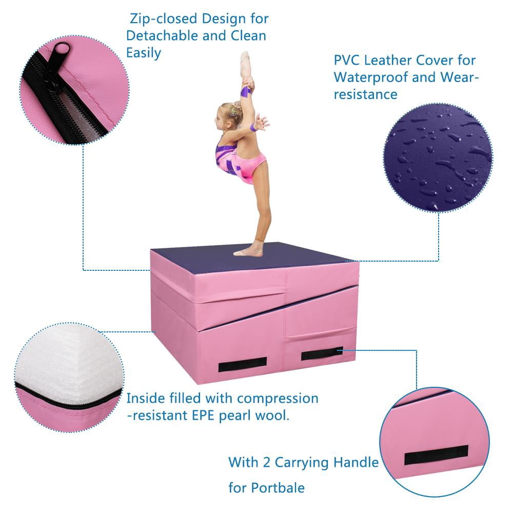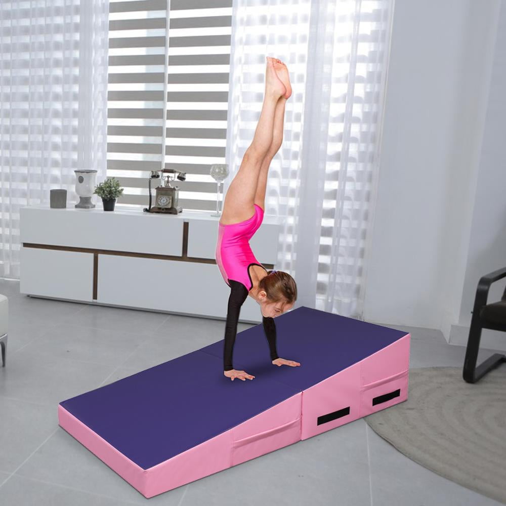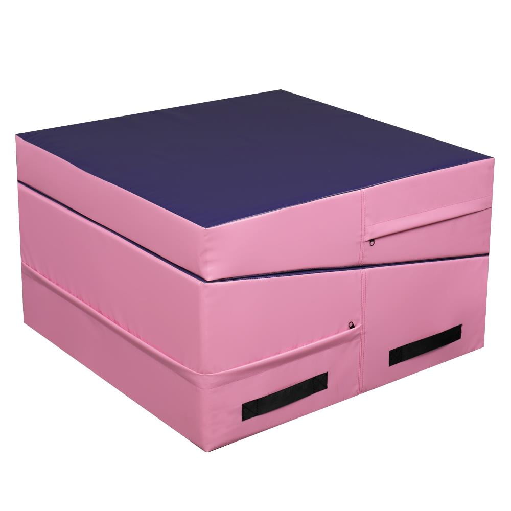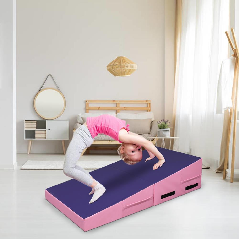 Zimtown 22 Density EPE Foam 48” x 24” Purple & Pink Exercise Mat with 1 x Gymnastic Mat Wear-resistant, waterproof PU leather cover Constructed of firm EPE foam for durability Zip-closed design for easy cleanup Strategic incline designed for gymnastics or cheer training Suitable incline angle for comfortable exercise