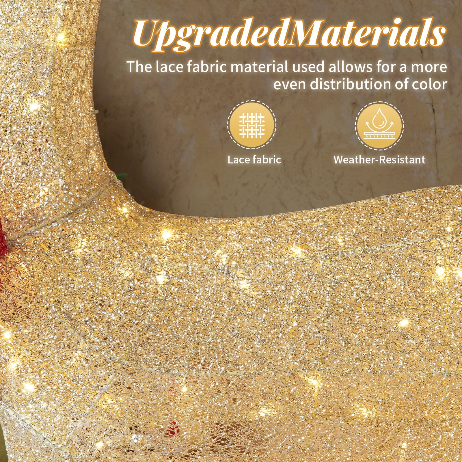 Zimtown 5FT Christmas Reindeer Set Lighted Outdoor Yard Decoration LED Lights – Gold